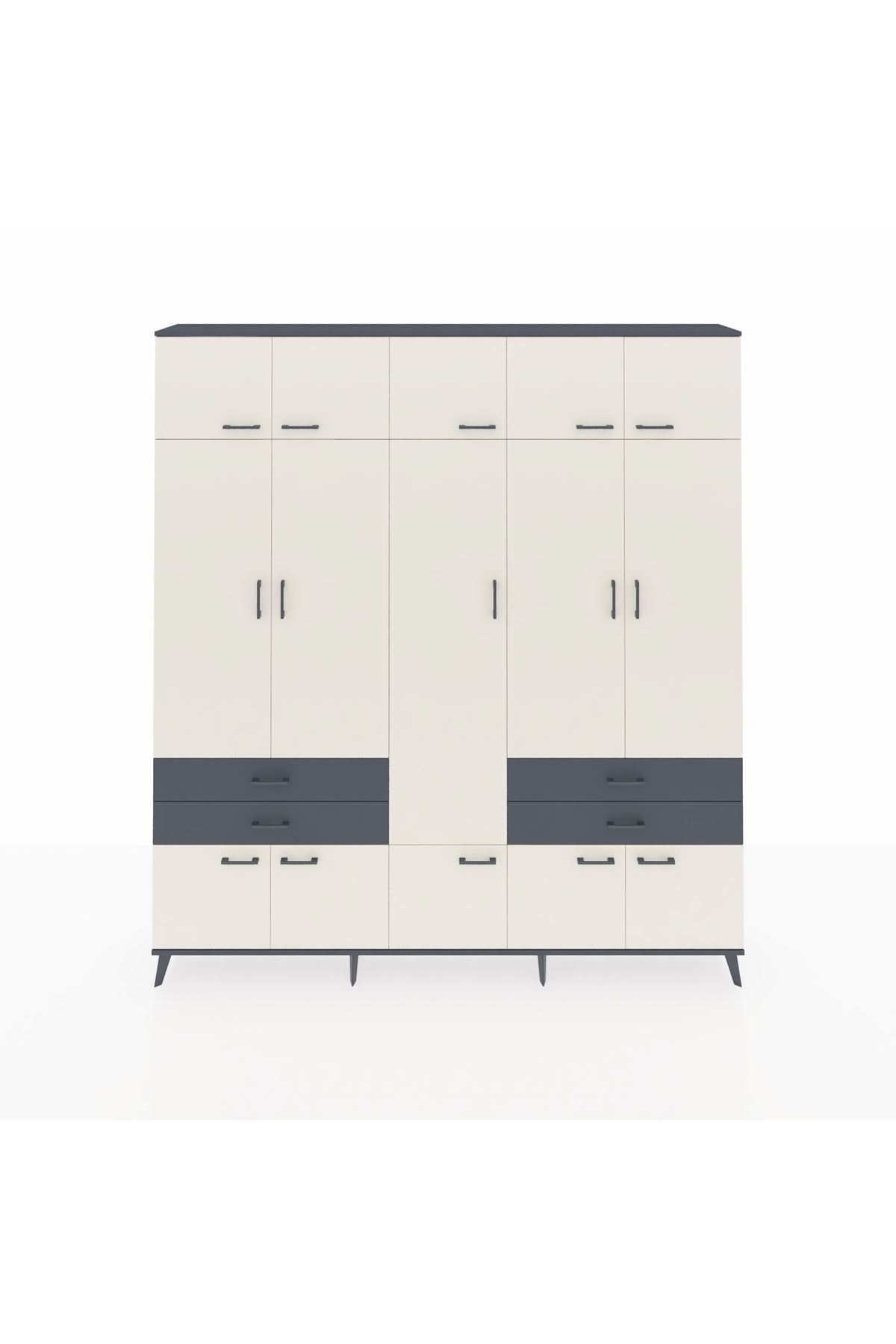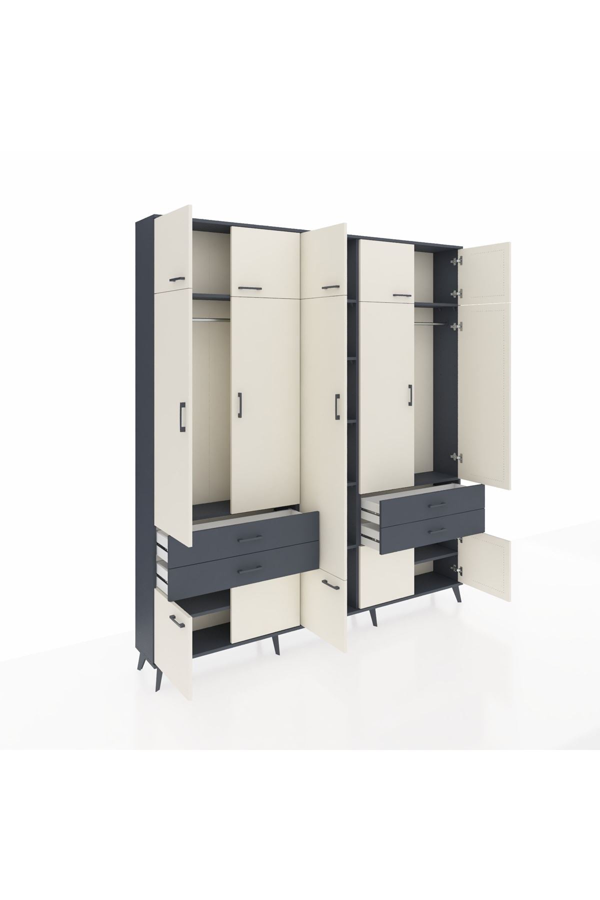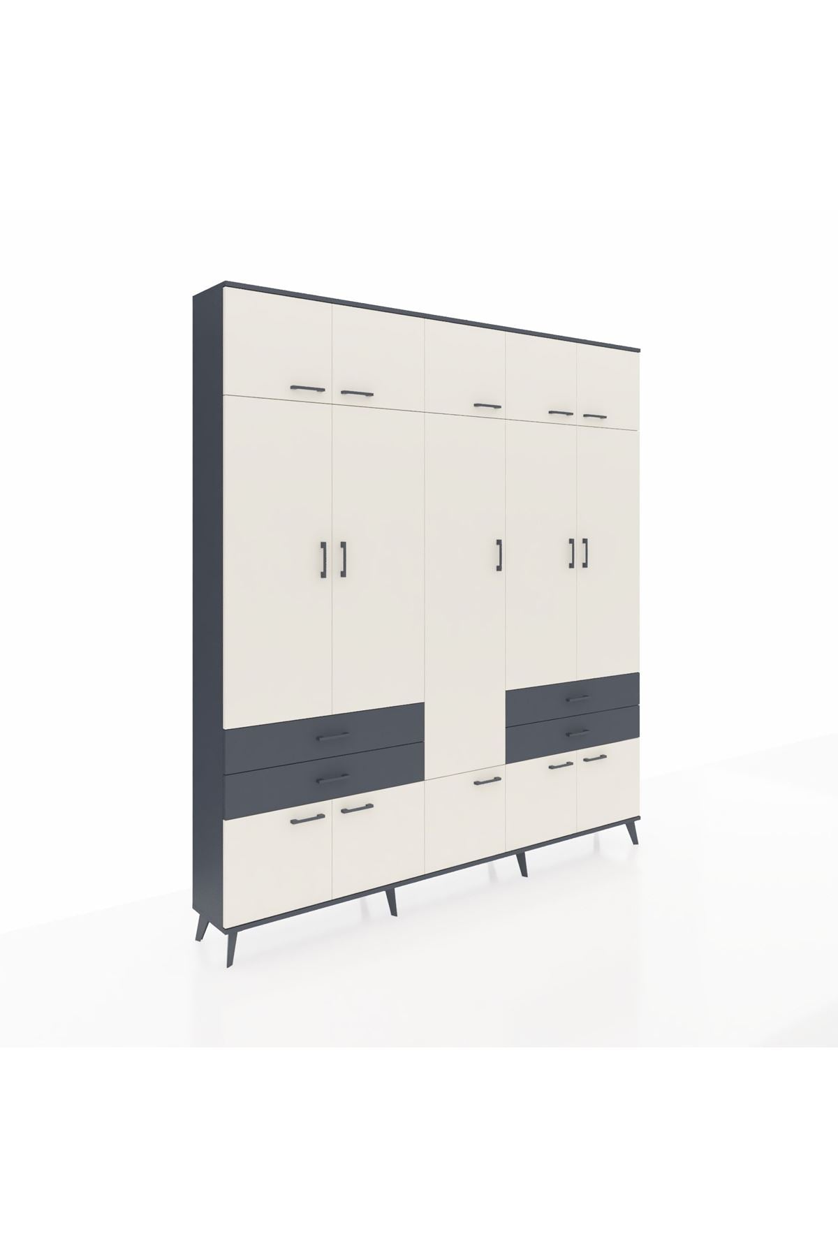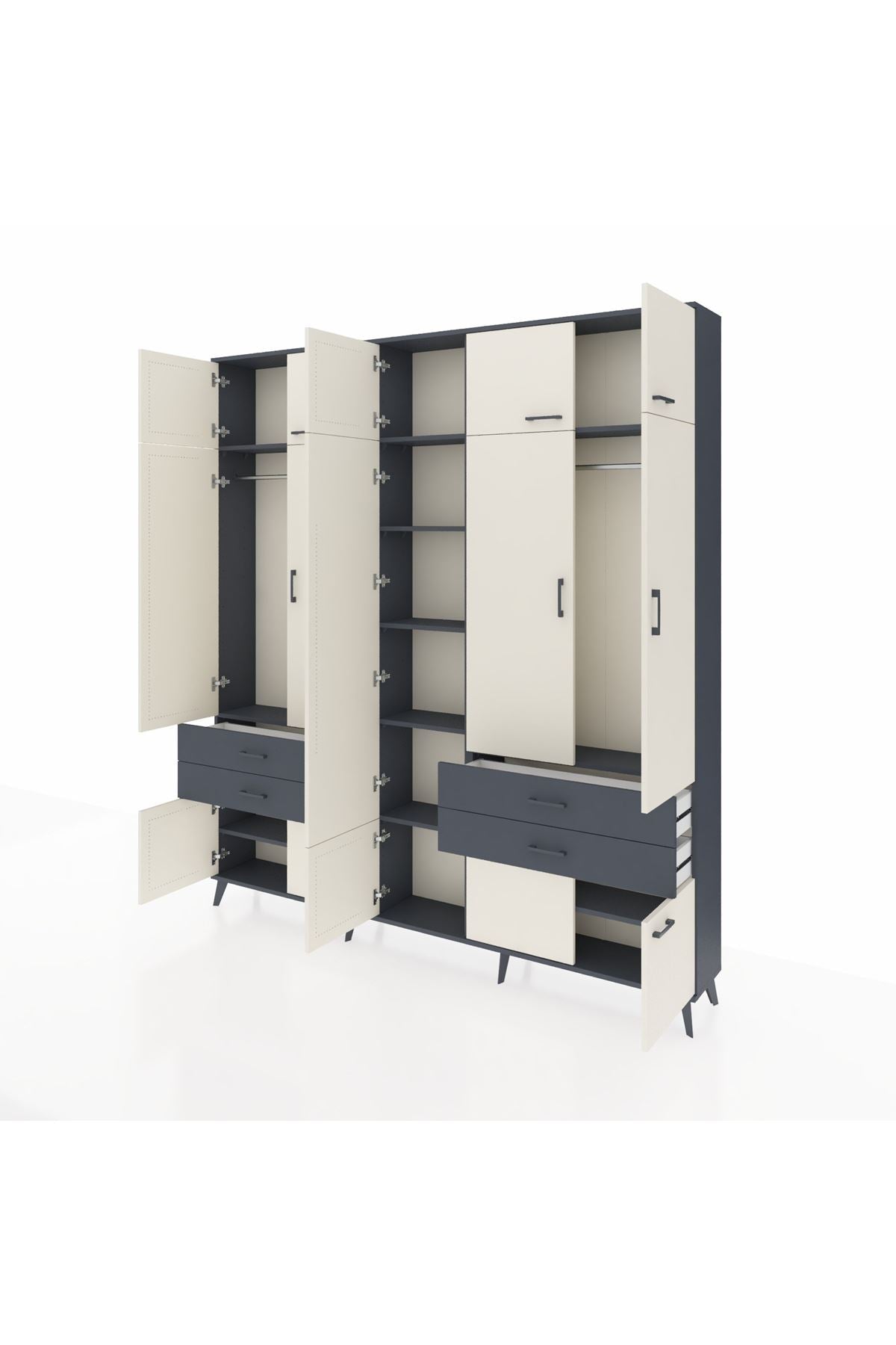 Arges Dolap 11 Raflı 4 Çekmeceli 2 Askılı 220x30x243 Antrasit-Aytaşı/Antrasit