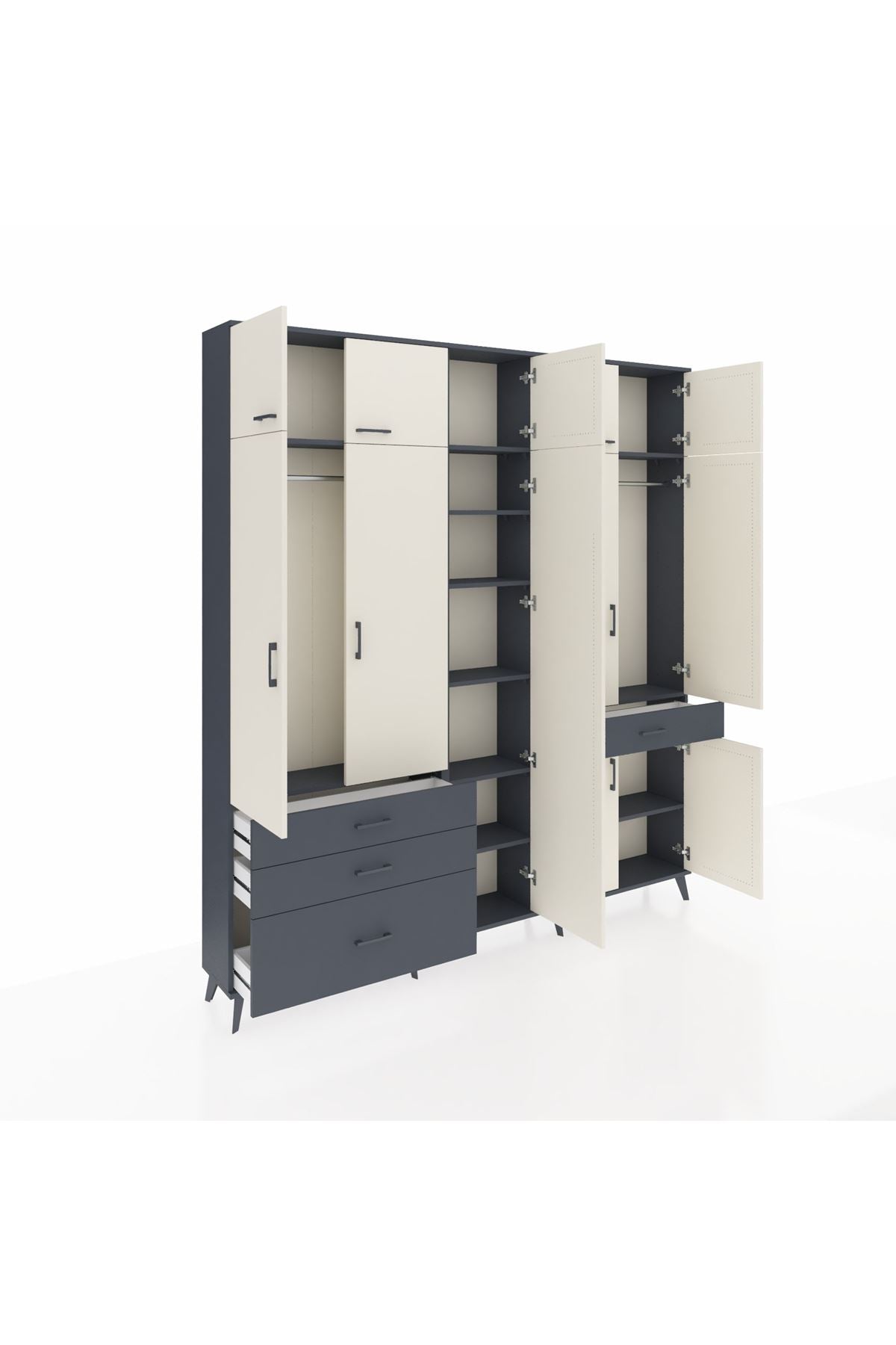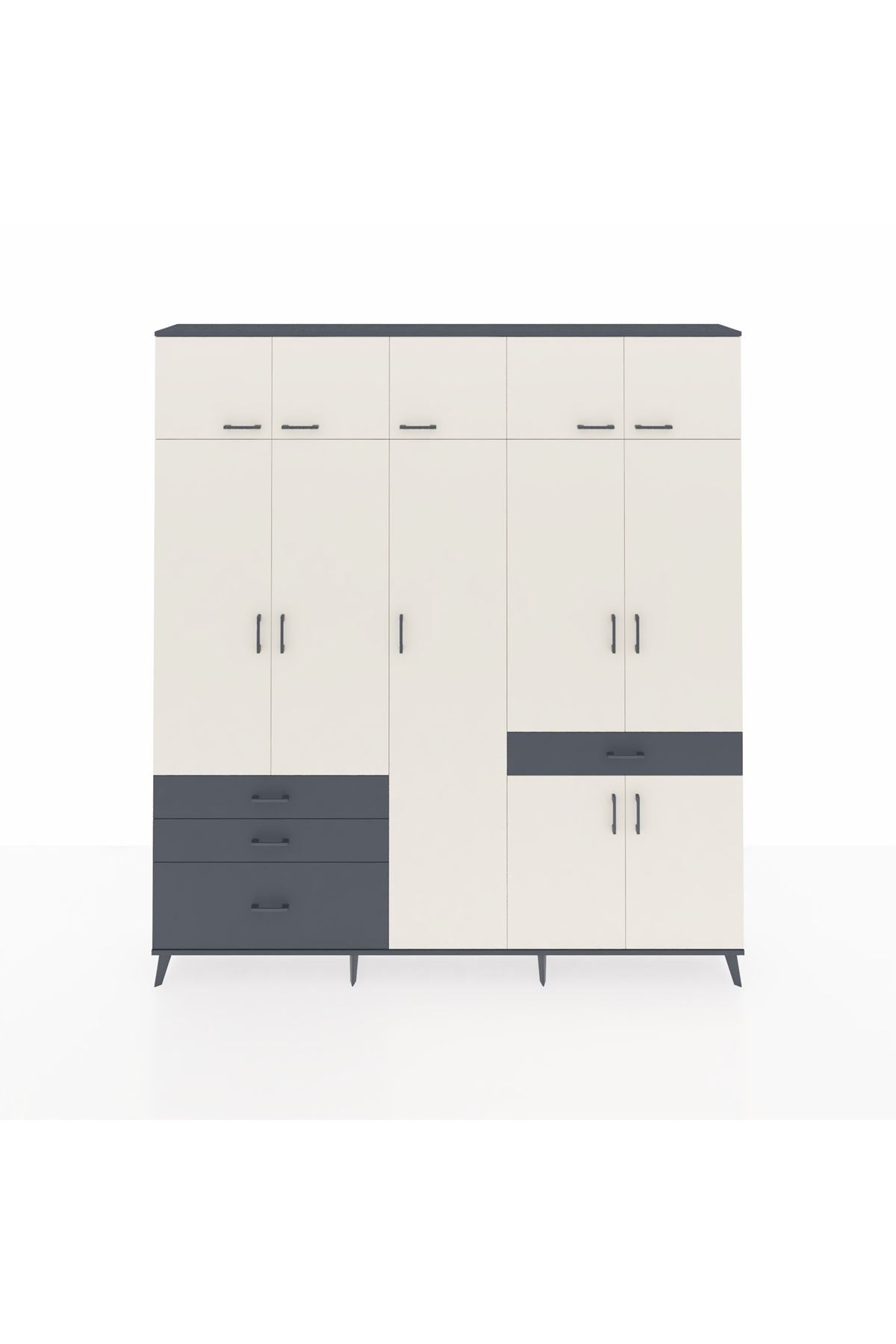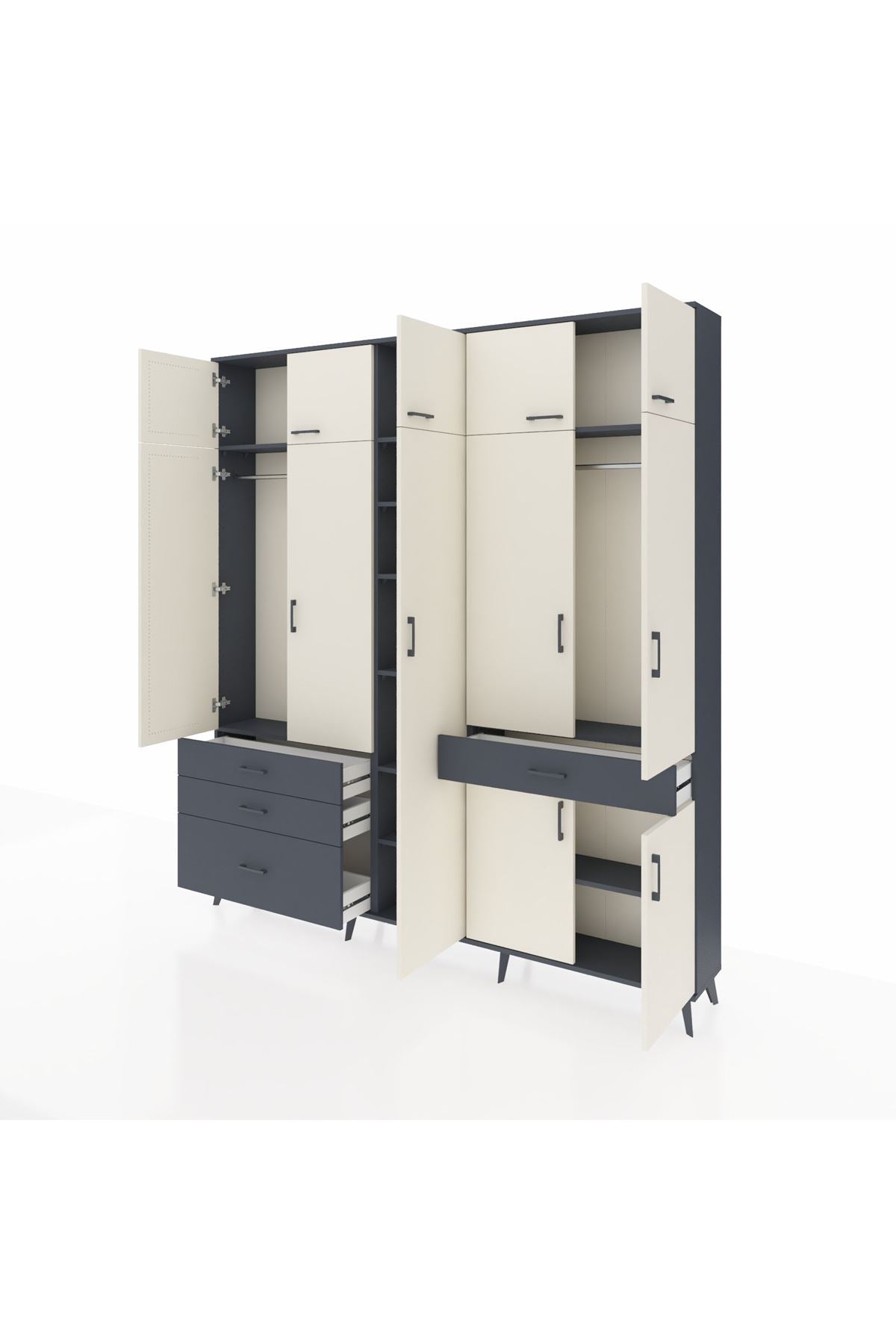 Arges Dolap 11 Raflı 4 Çekmeceli 2 Askılı 220x30x243 Antrasit-Aytaşı/Antrasit