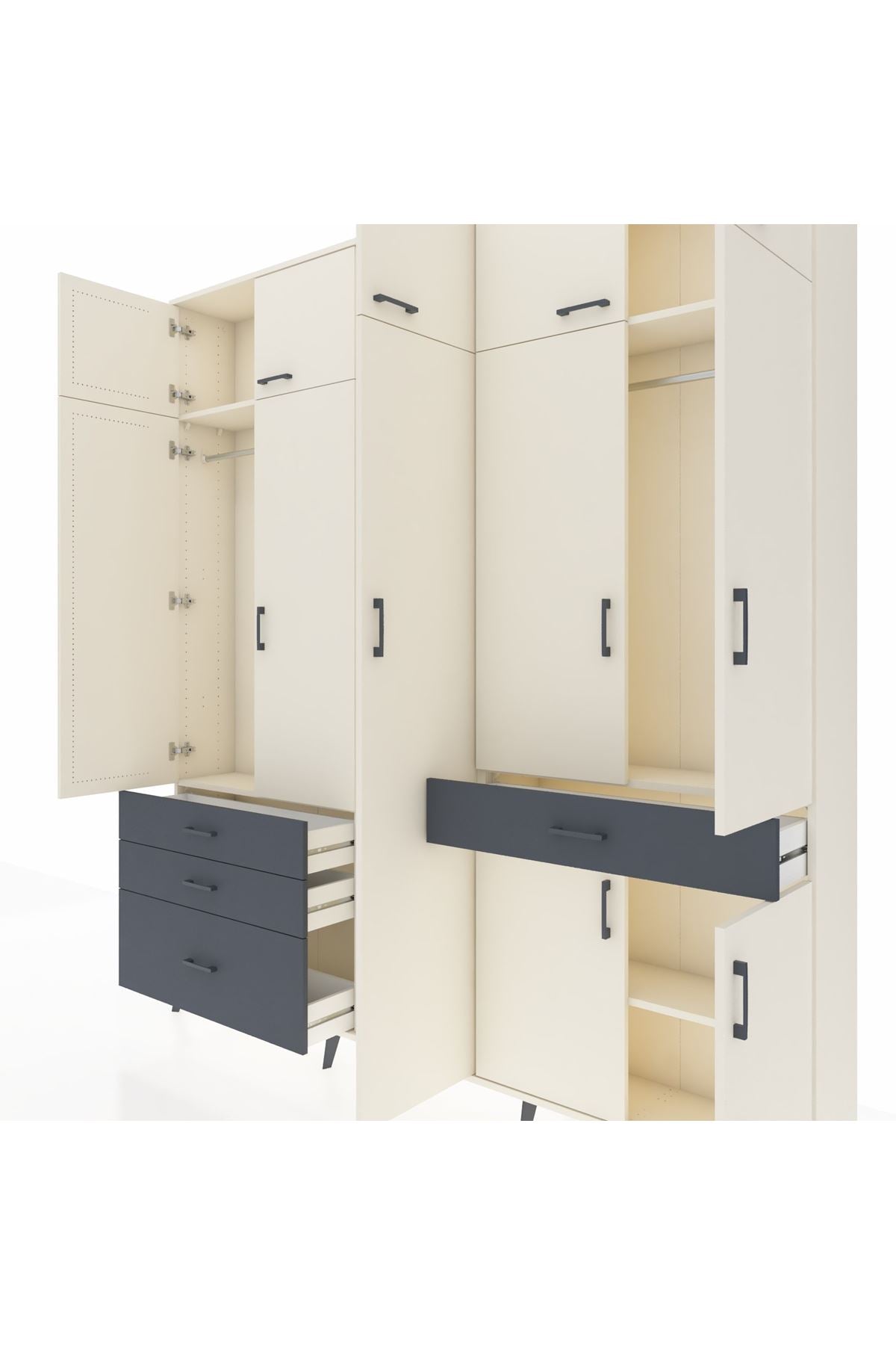 Arges Dolap 11 Raflı 4 Çekmeceli 2 Askılı 220x30x243 Aytaşı-Aytaşı/Antrasit