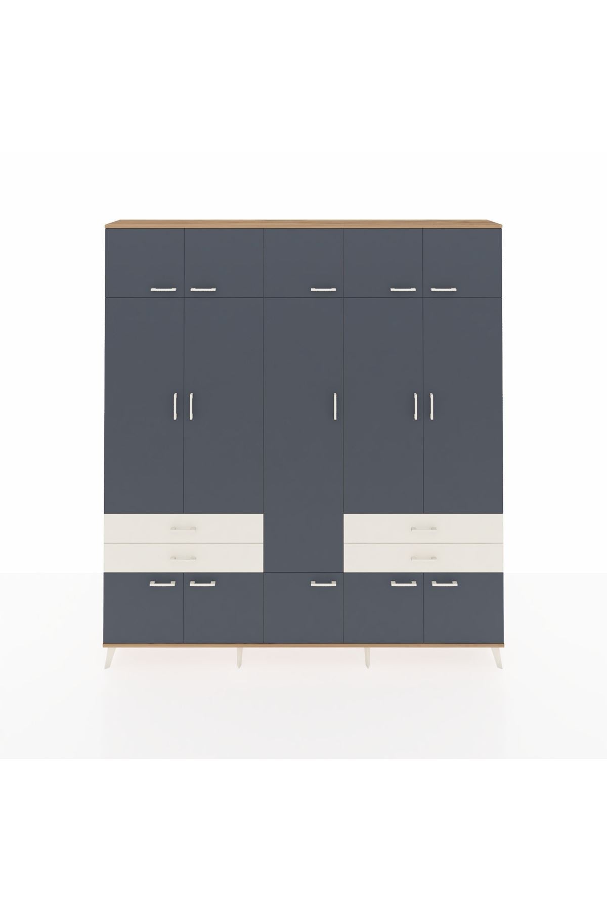 Arges Dolap 11 Raflı 4 Çekmeceli 2 Askılı 220x30x243 Çam-Antrasit/Aytaşı
