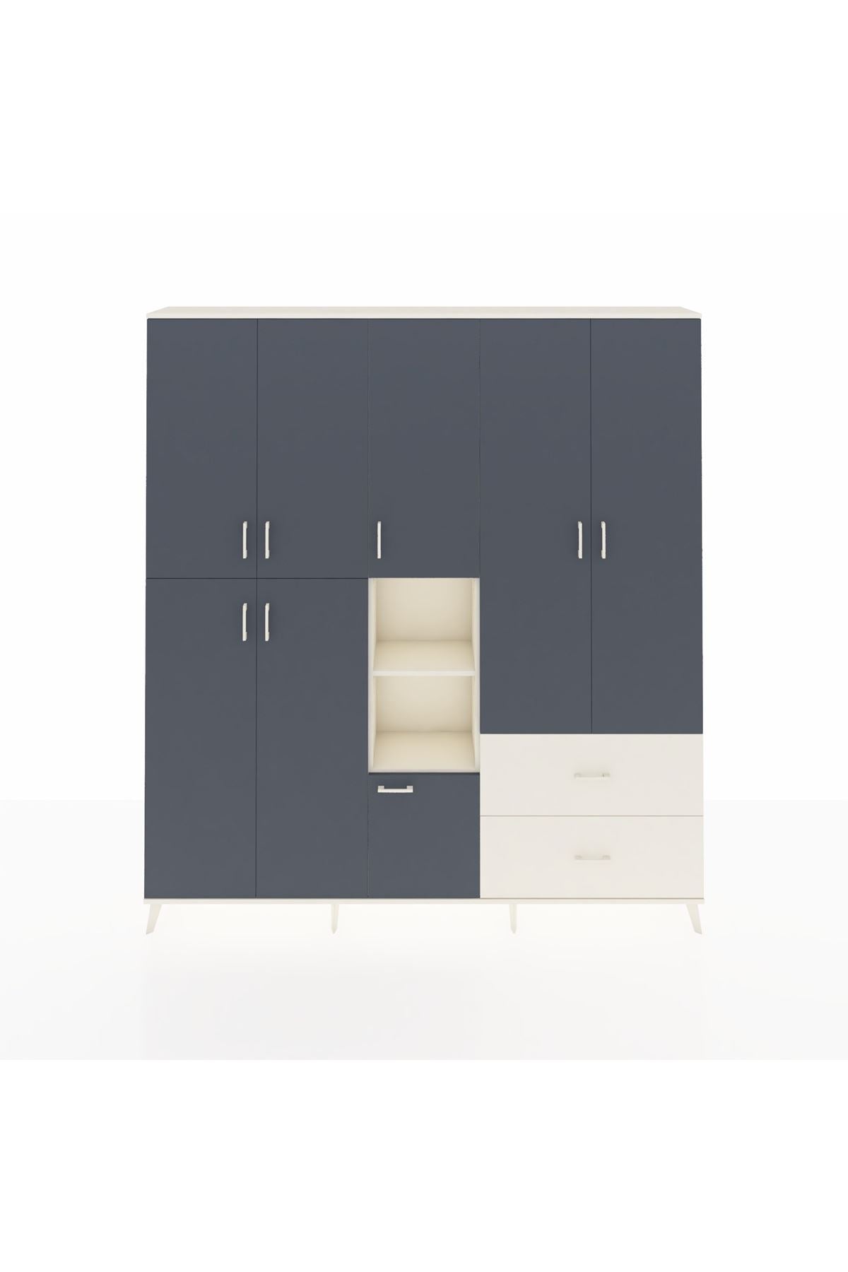Arges Dolap 12 Raflı 2 Çekmeceli Tek Askılı 220x30x243 Aytaşı-Antrasit/Aytaşı