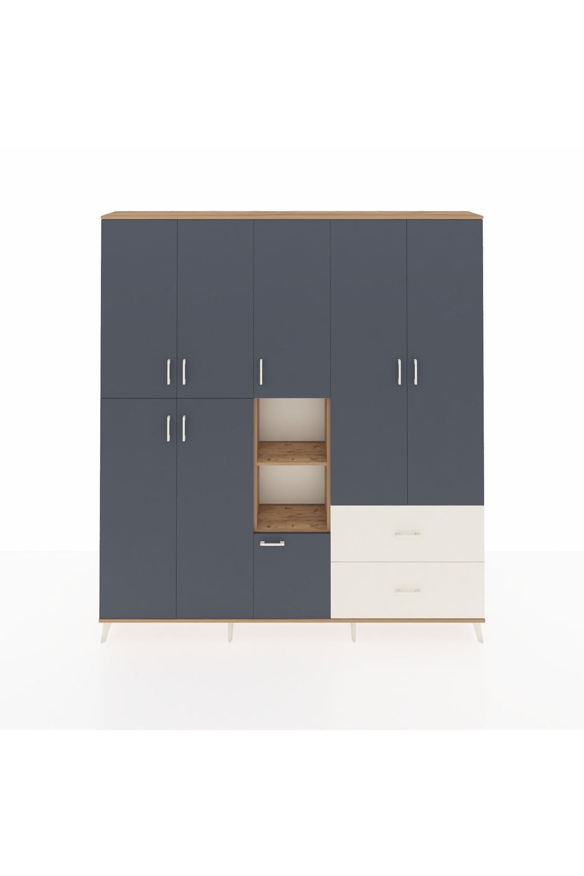 Arges Dolap 12 Raflı 2 Çekmeceli Tek Askılı 220x30x243 Çam-Antrasit/Aytaşı