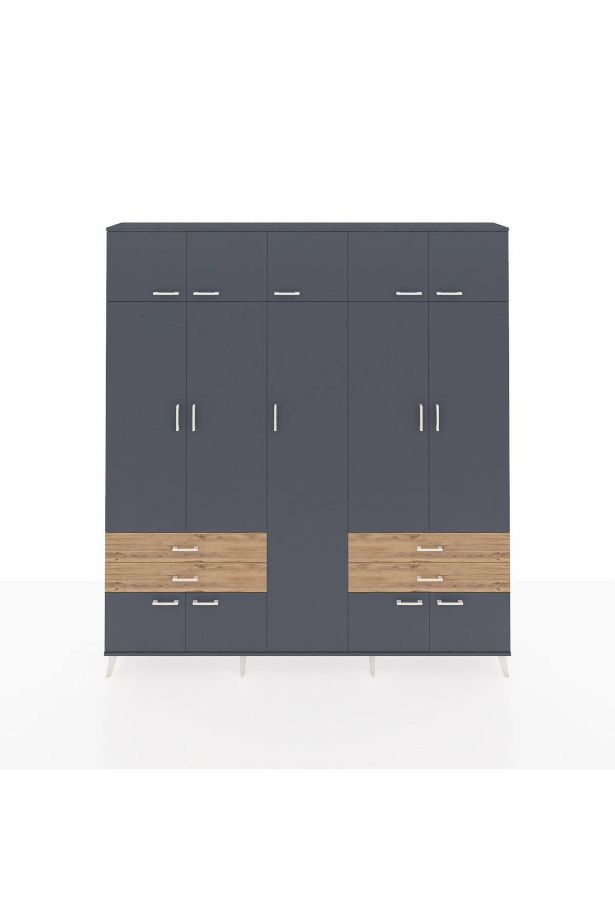 Arges Dolap 12 Raflı 4 Çekmeceli 2 Askılı 220x30x243 Antrasit-Antrasit/Çam