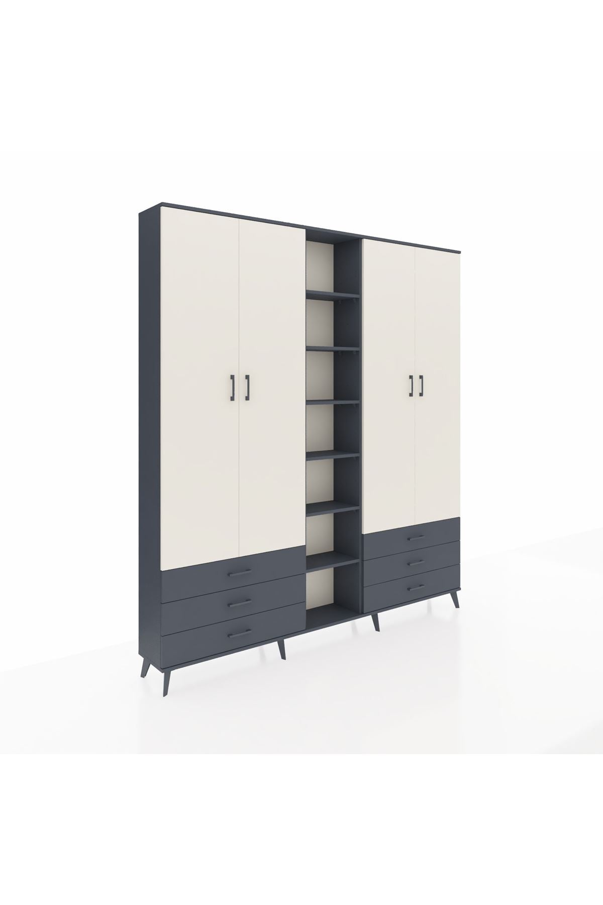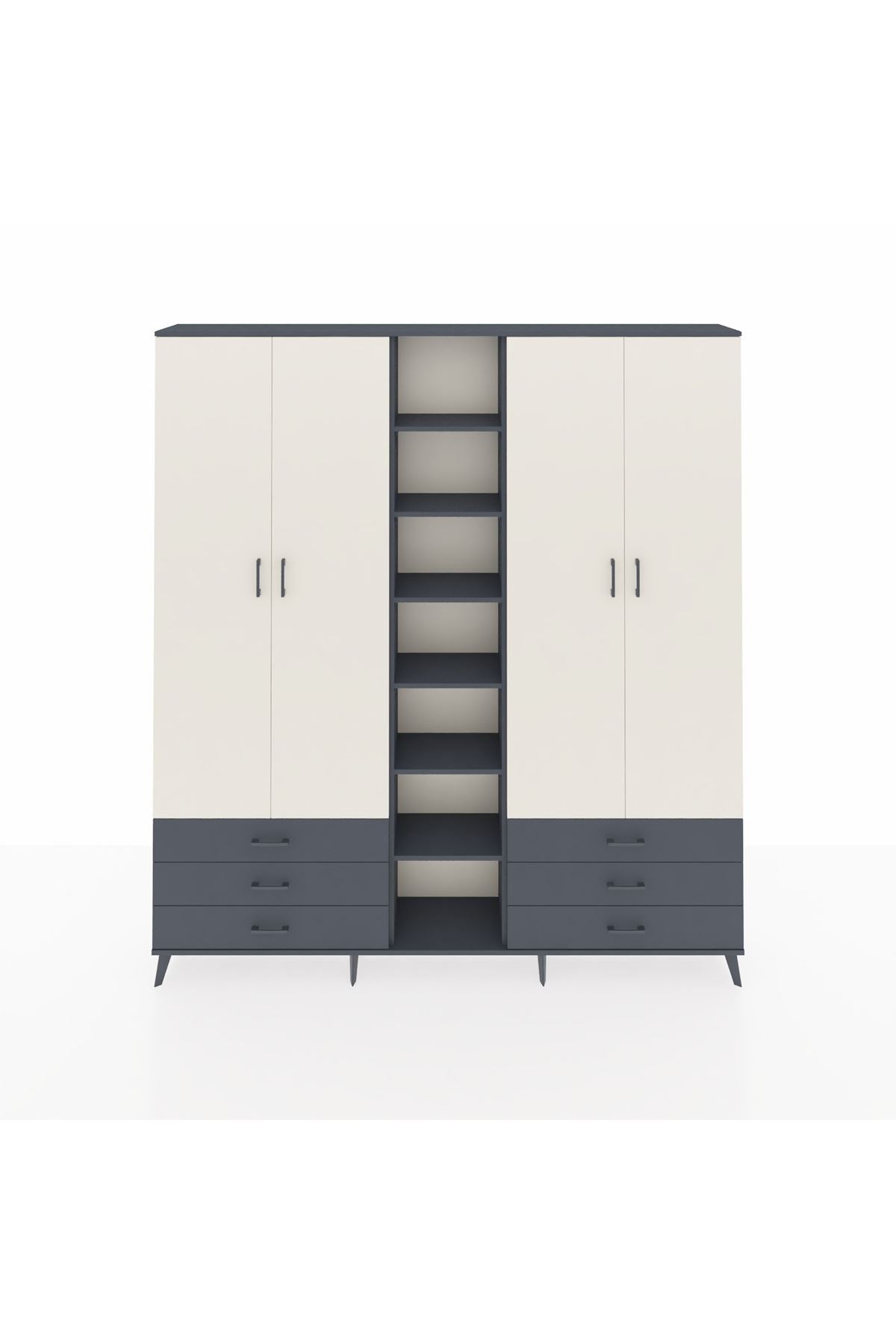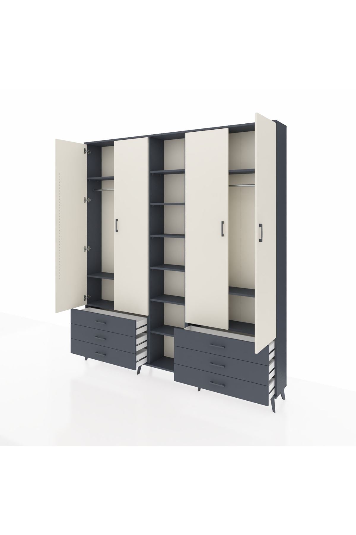 Arges Dolap 13 Raflı 6 Çekmeceli 2 Askılı 220x30x243 Antrasit-Aytaşı/Antrasit