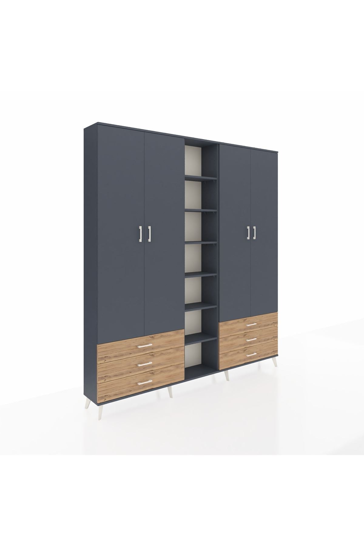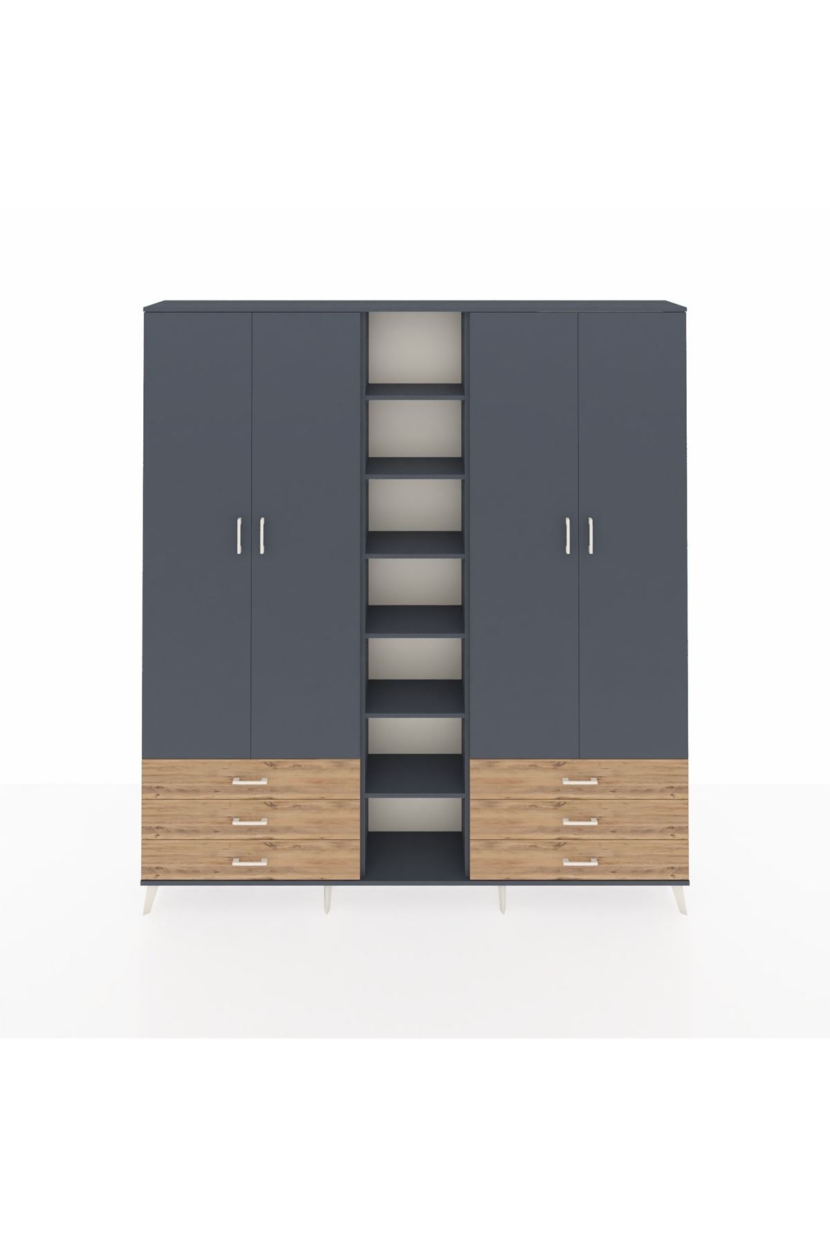Arges Dolap 13 Raflı 6 Çekmeceli 2 Askılı 220x30x243 Antrasit-Antrasit/Çam