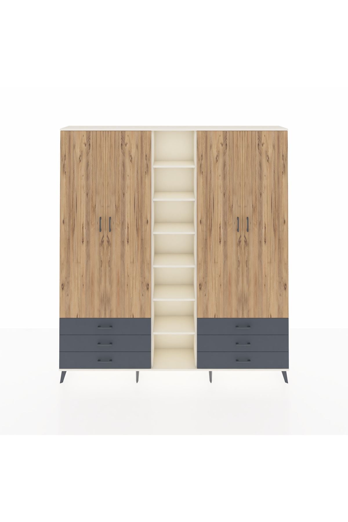 Arges Dolap 13 Raflı 6 Çekmeceli 2 Askılı 220x30x243 Aytaşı-Çam/Antrasit