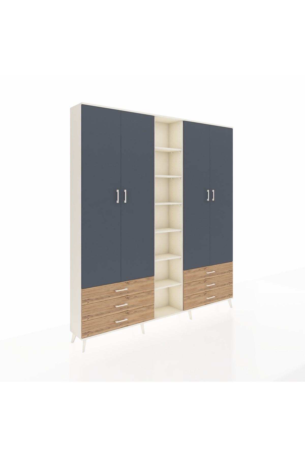 Arges Dolap 13 Raflı 6 Çekmeceli 2 Askılı 220x30x243 Aytaşı-Antrasit/Çam