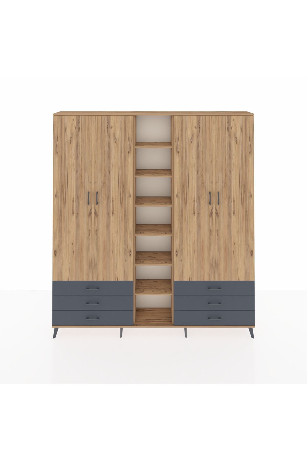 Arges Dolap 13 Raflı 6 Çekmeceli 2 Askılı 220x30x243 Çam-Çam/Antrasit