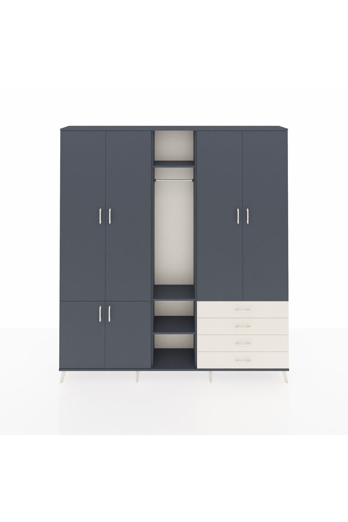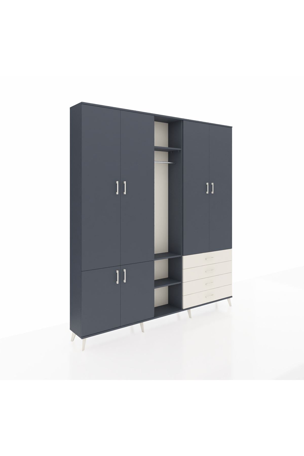 Arges Dolap 14 Raflı 4 Çekmeceli Tek Askılı 220x30x243 Aytaşı-Antrasit/Aytaşı