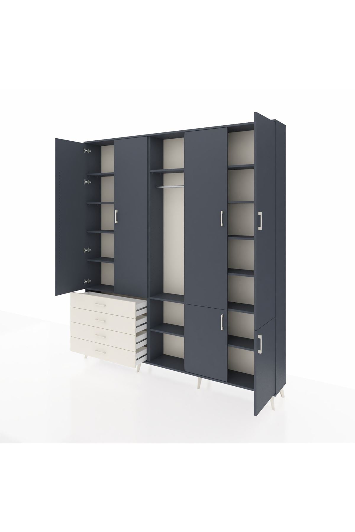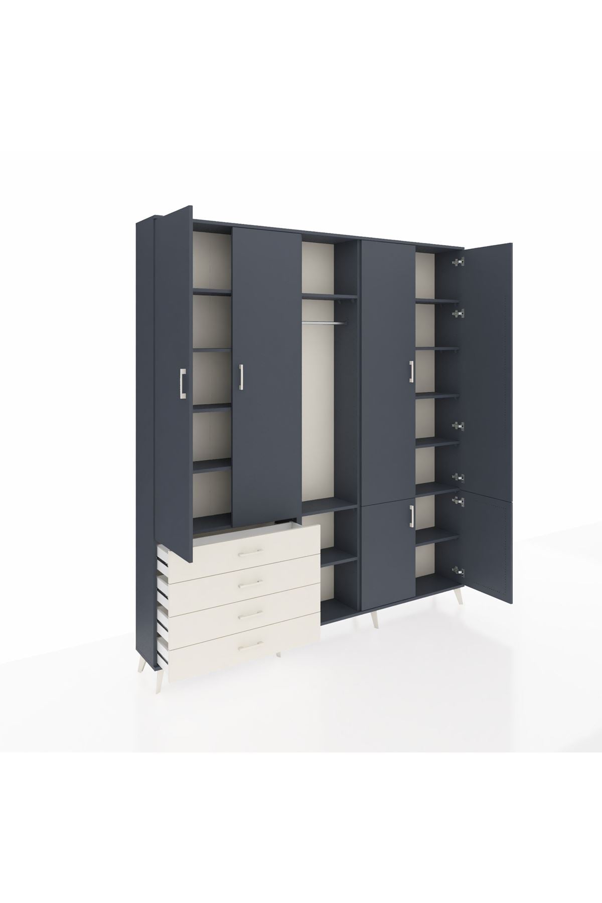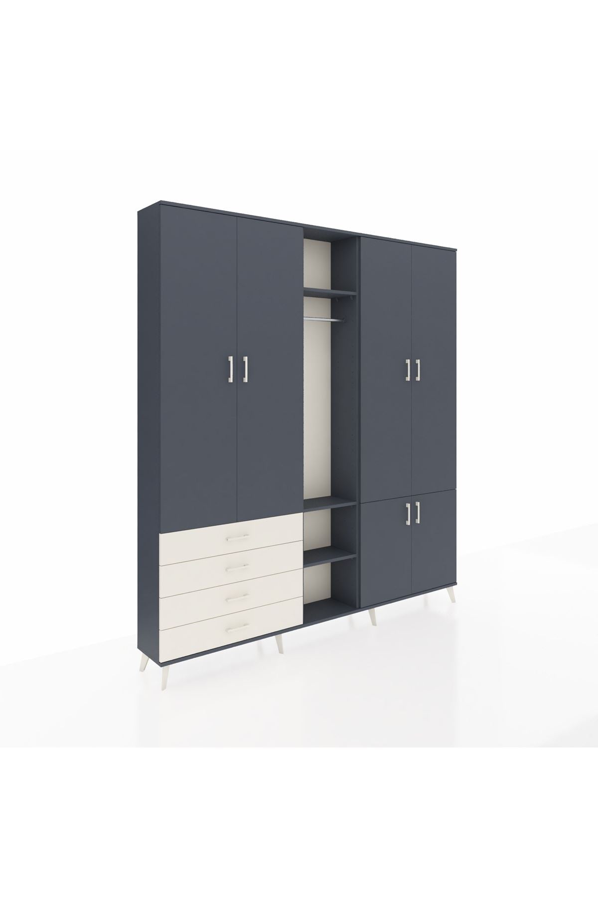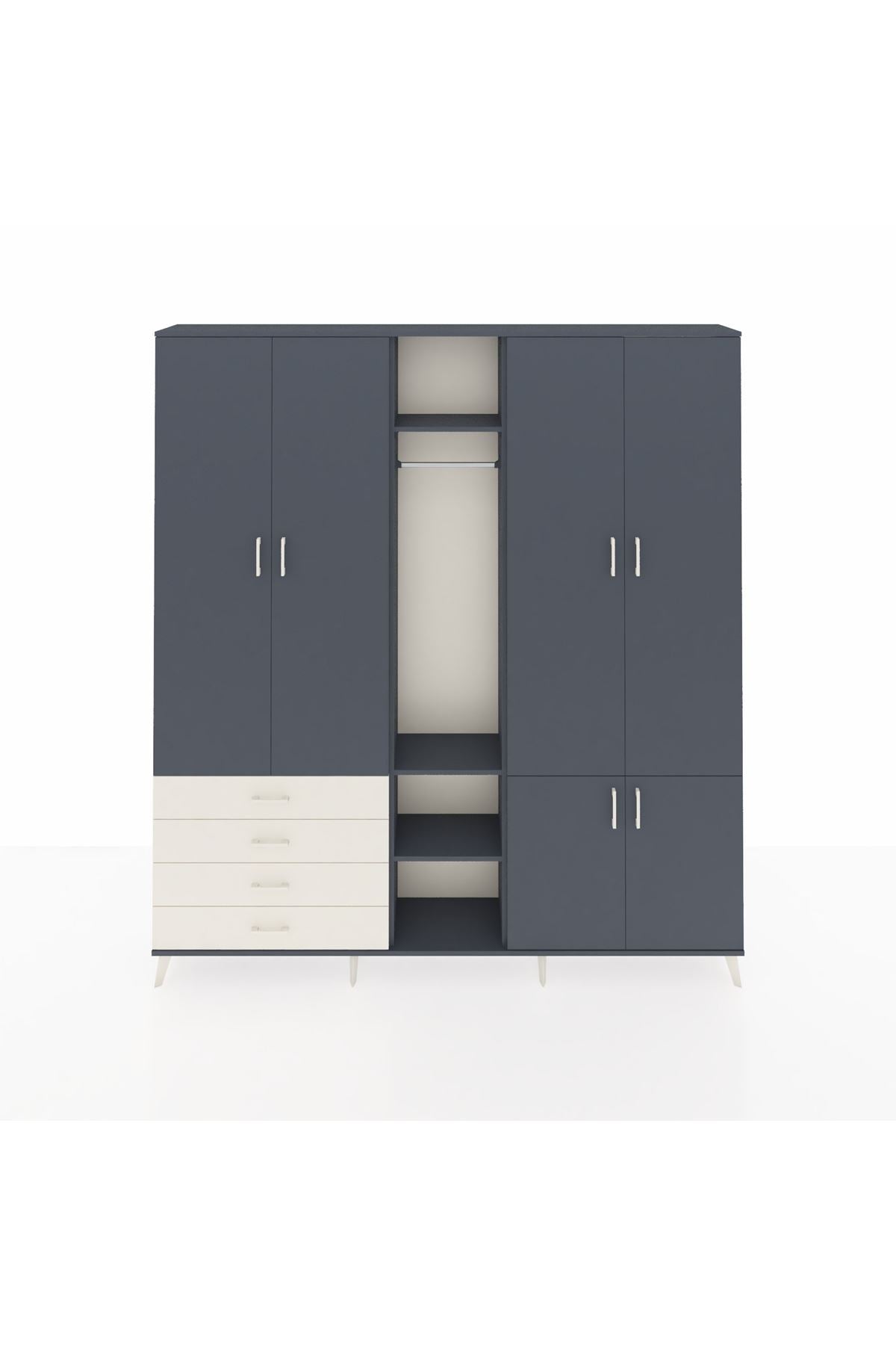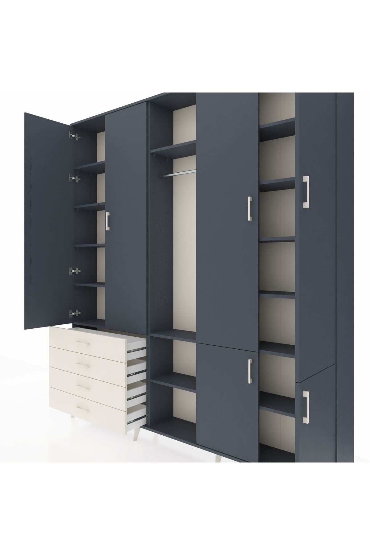 Arges Dolap 14 Raflı 4 Çekmeceli Tek Askılı 220x30x243 Antrasit-Antrasit/Aytaşı