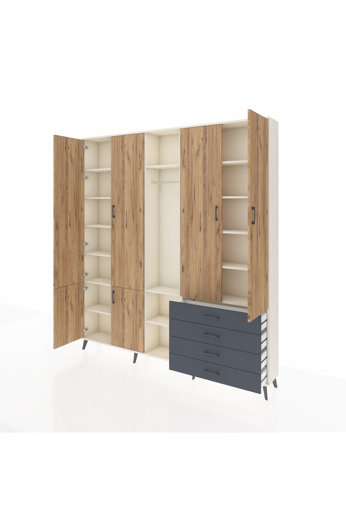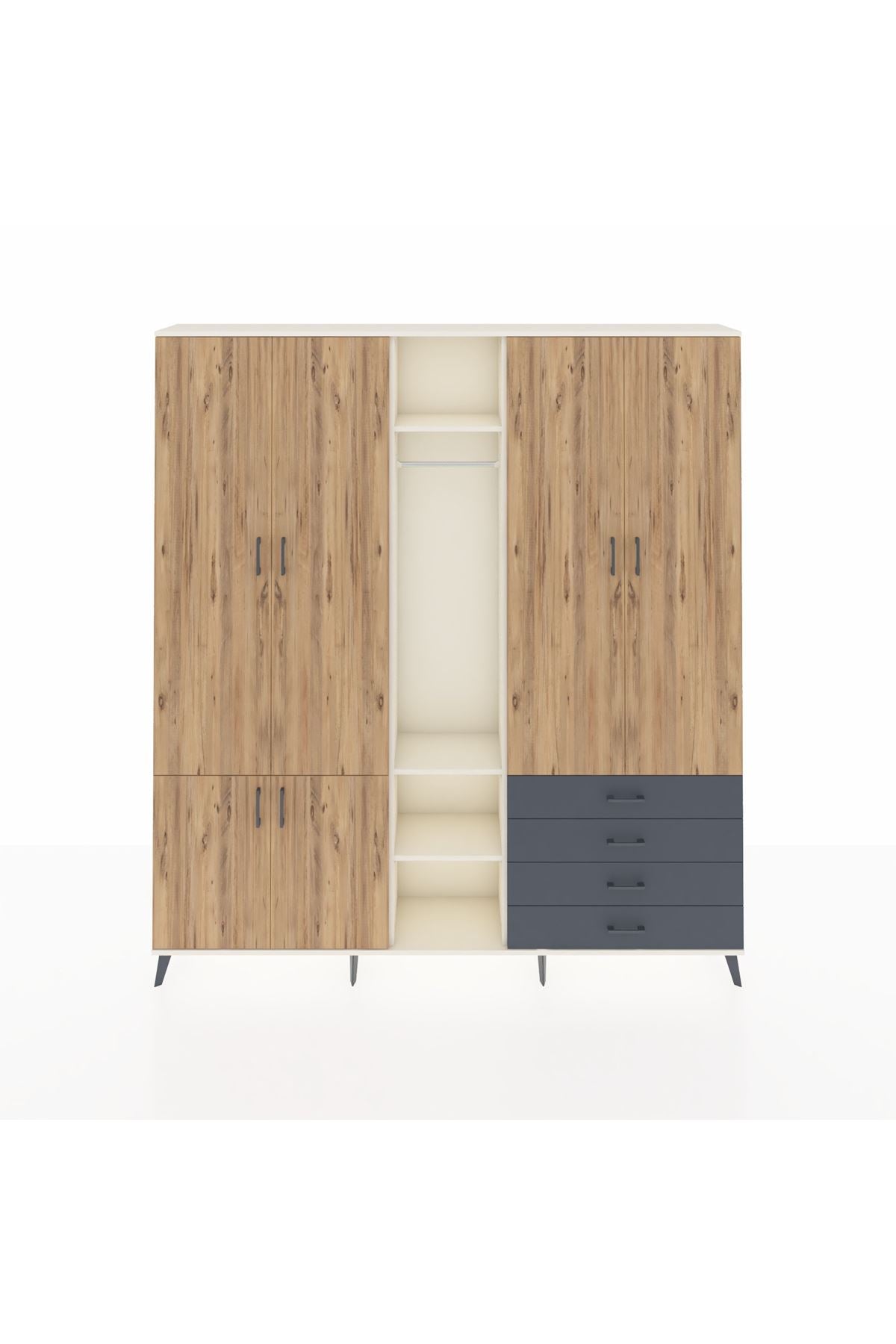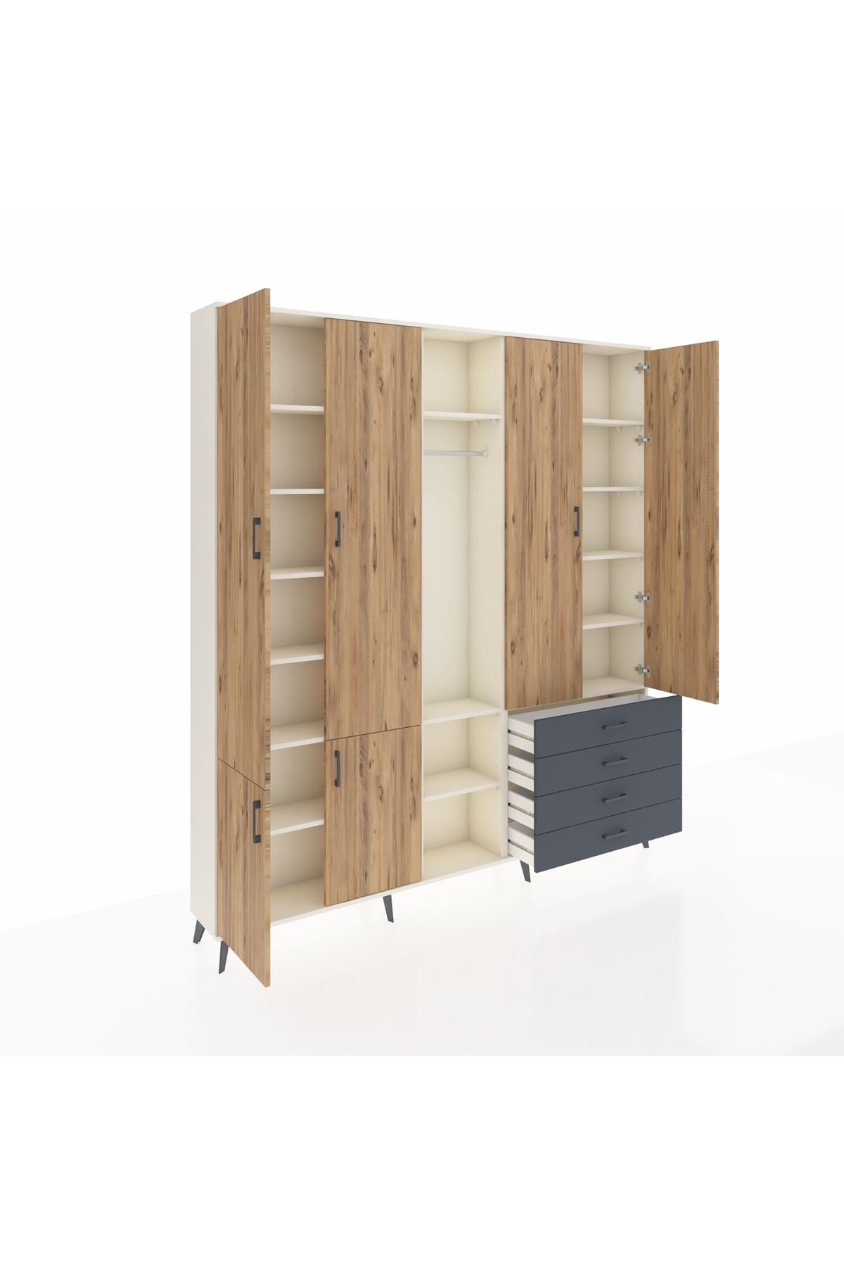 Arges Dolap 14 Raflı 4 Çekmeceli Tek Askılı 220x30x243 Aytaşı-Çam/Antrasit