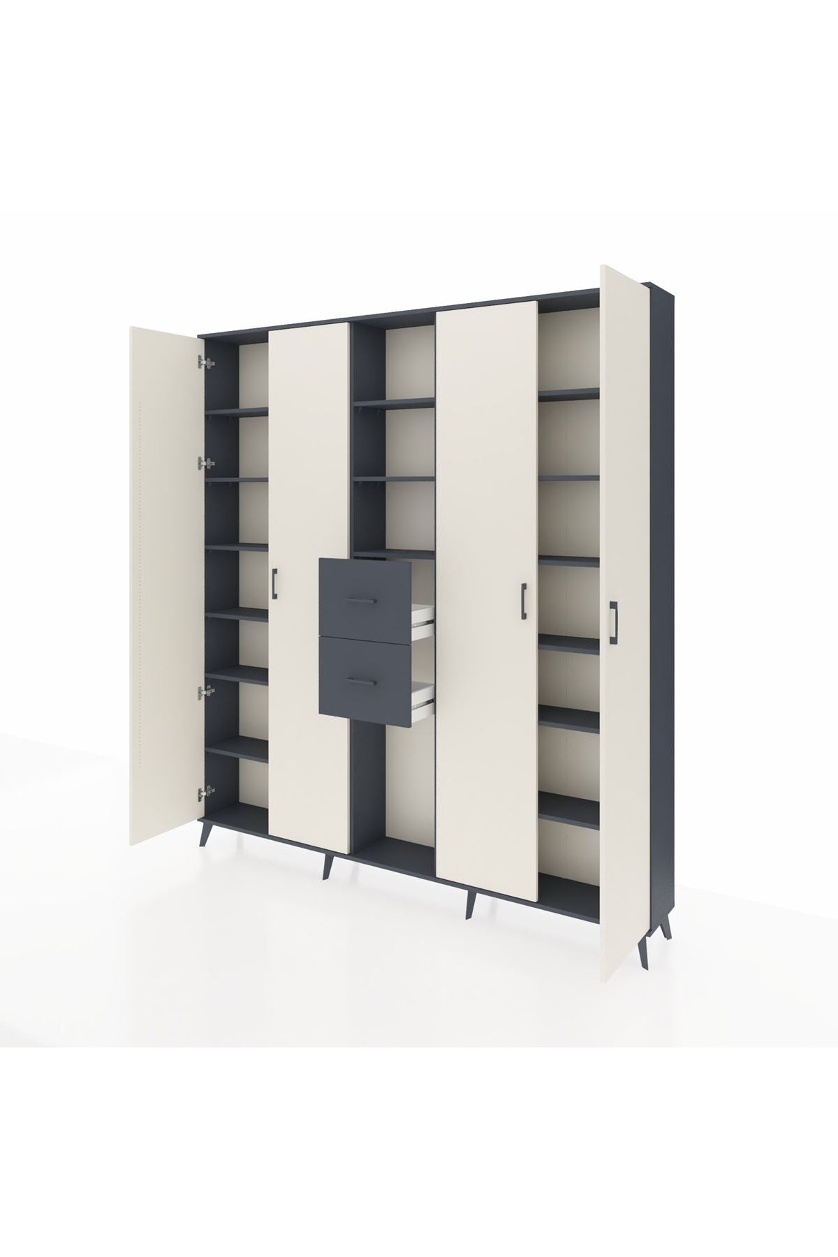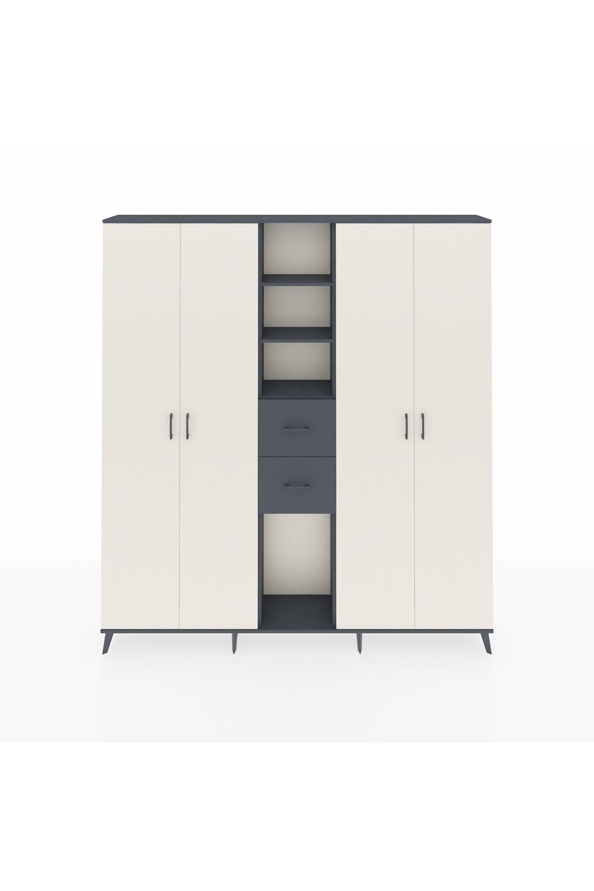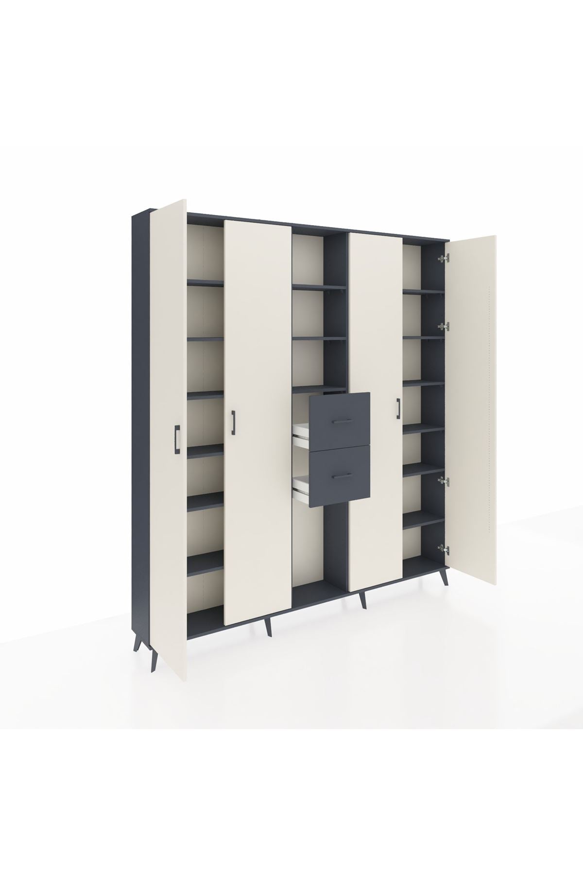 Arges Dolap 15 Raflı 2 Çekmeceli 4 Kapaklı 220x30x243 Antrasit-Aytaşı/Antrasit