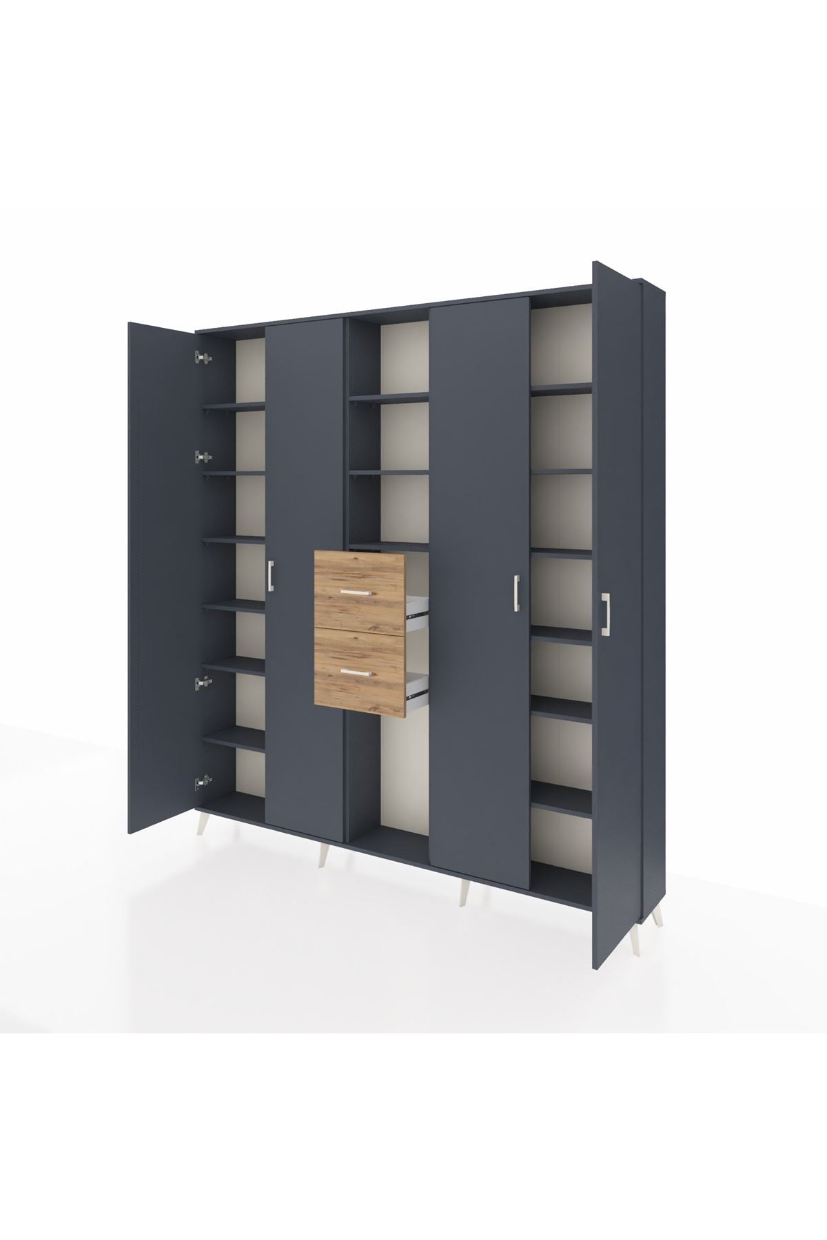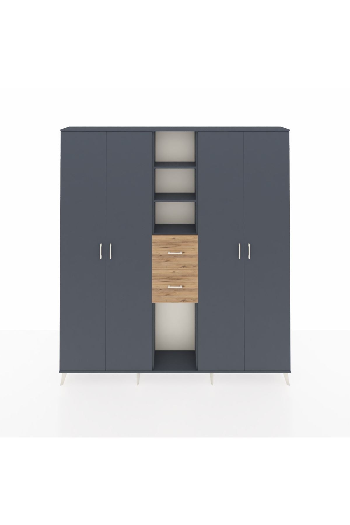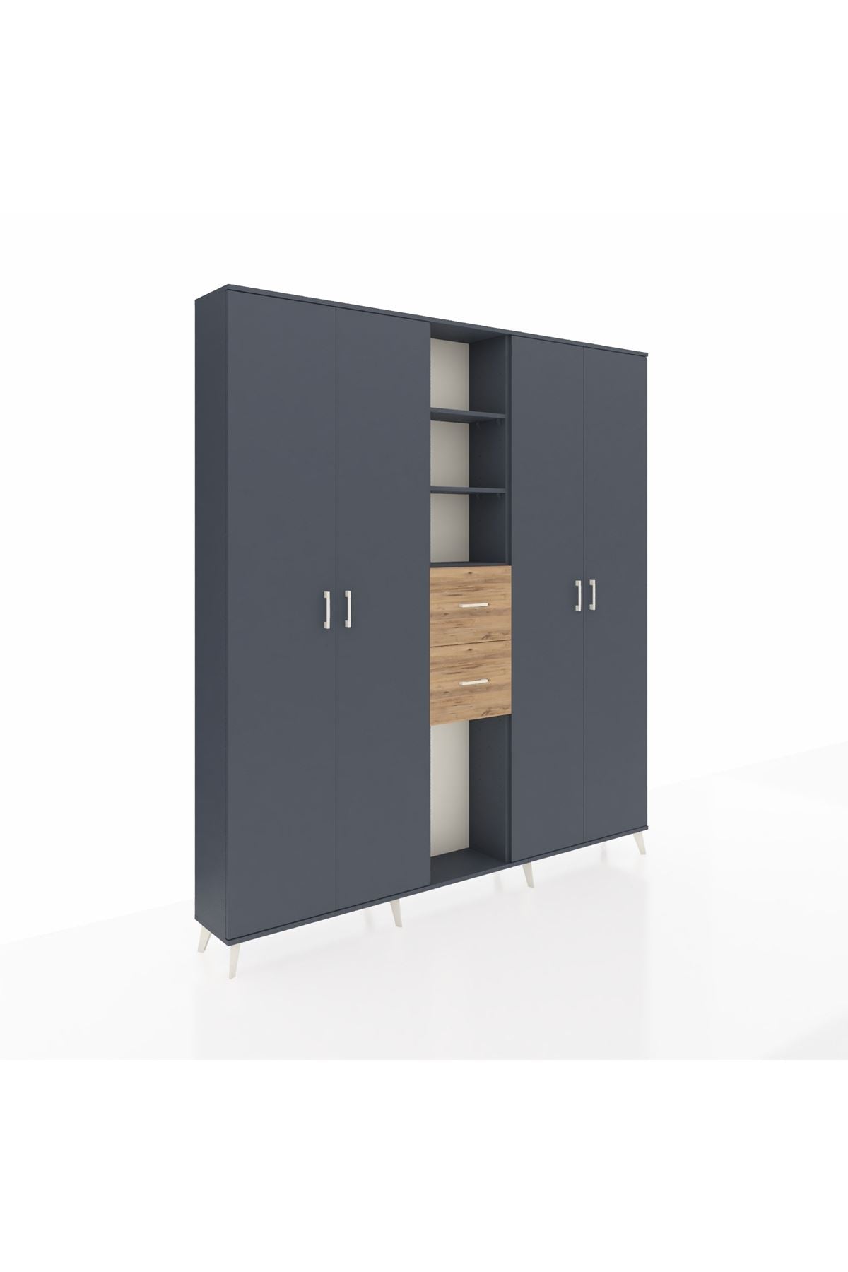 Arges Dolap 15 Raflı 2 Çekmeceli 4 Kapaklı 220x30x243 Antrasit-Antrasit/Çam