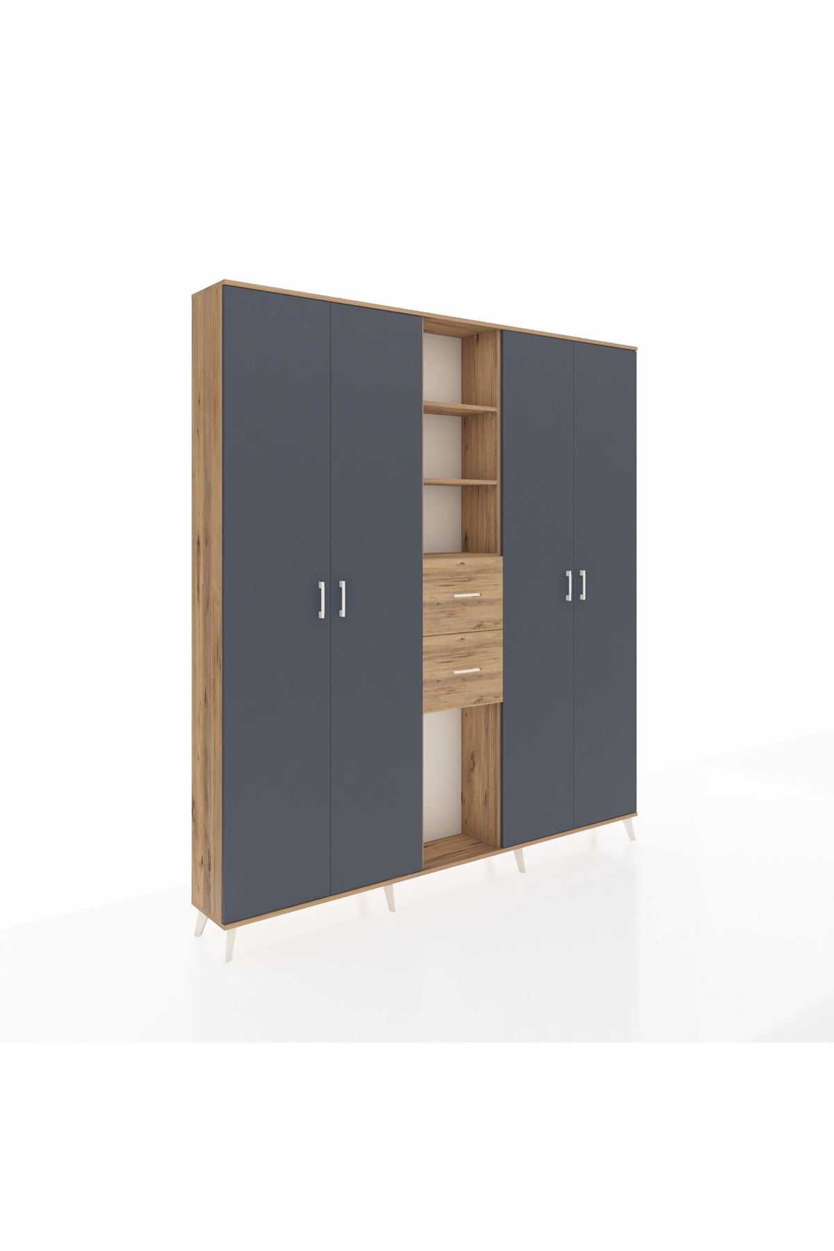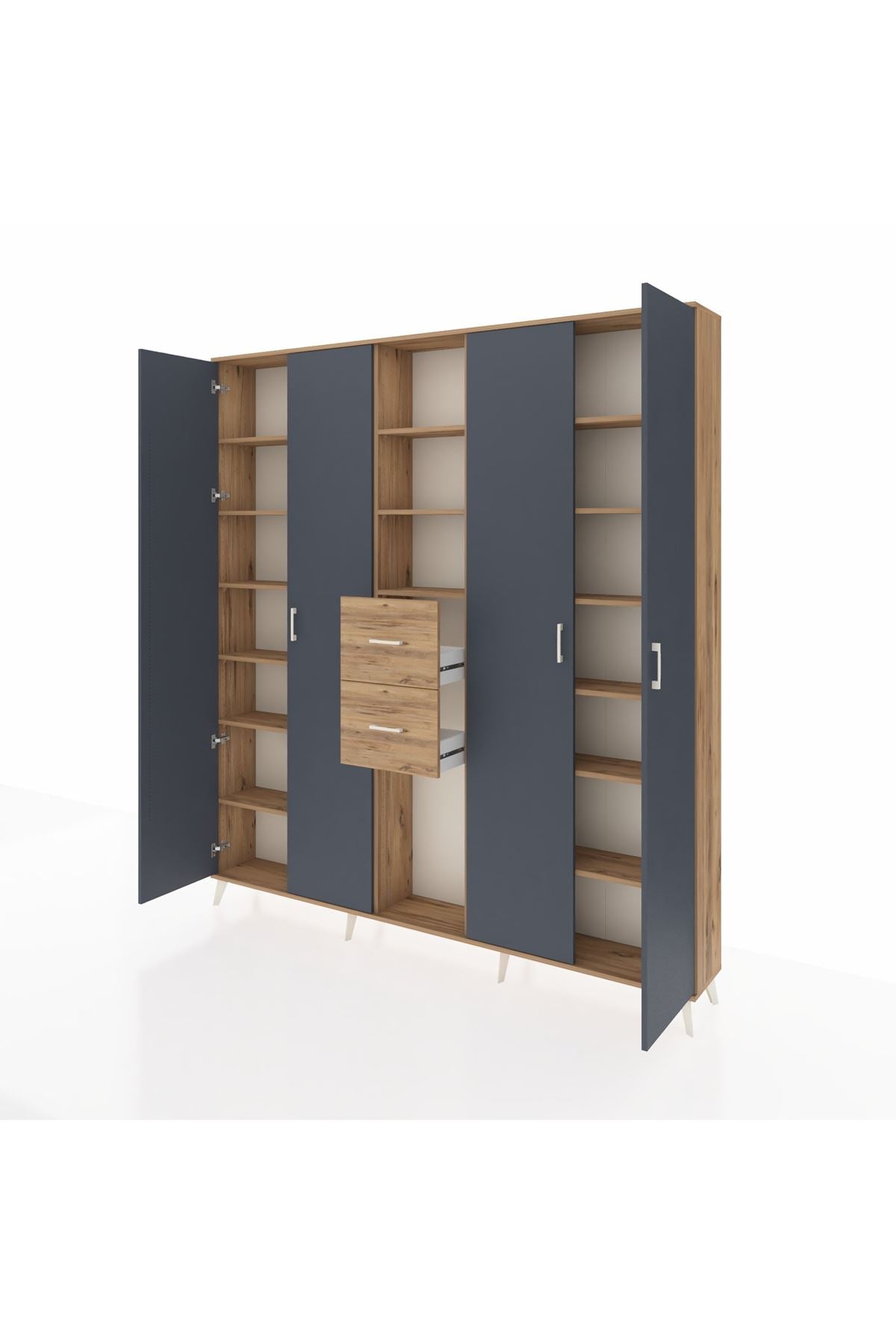 Arges Dolap 15 Raflı 2 Çekmeceli 4 Kapaklı 220x30x243 Çam-Antrasit/Çam