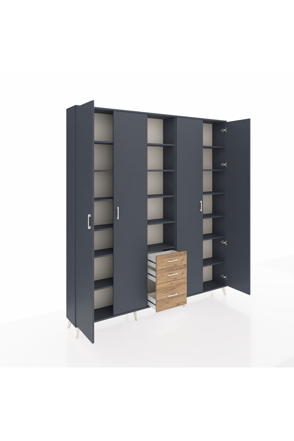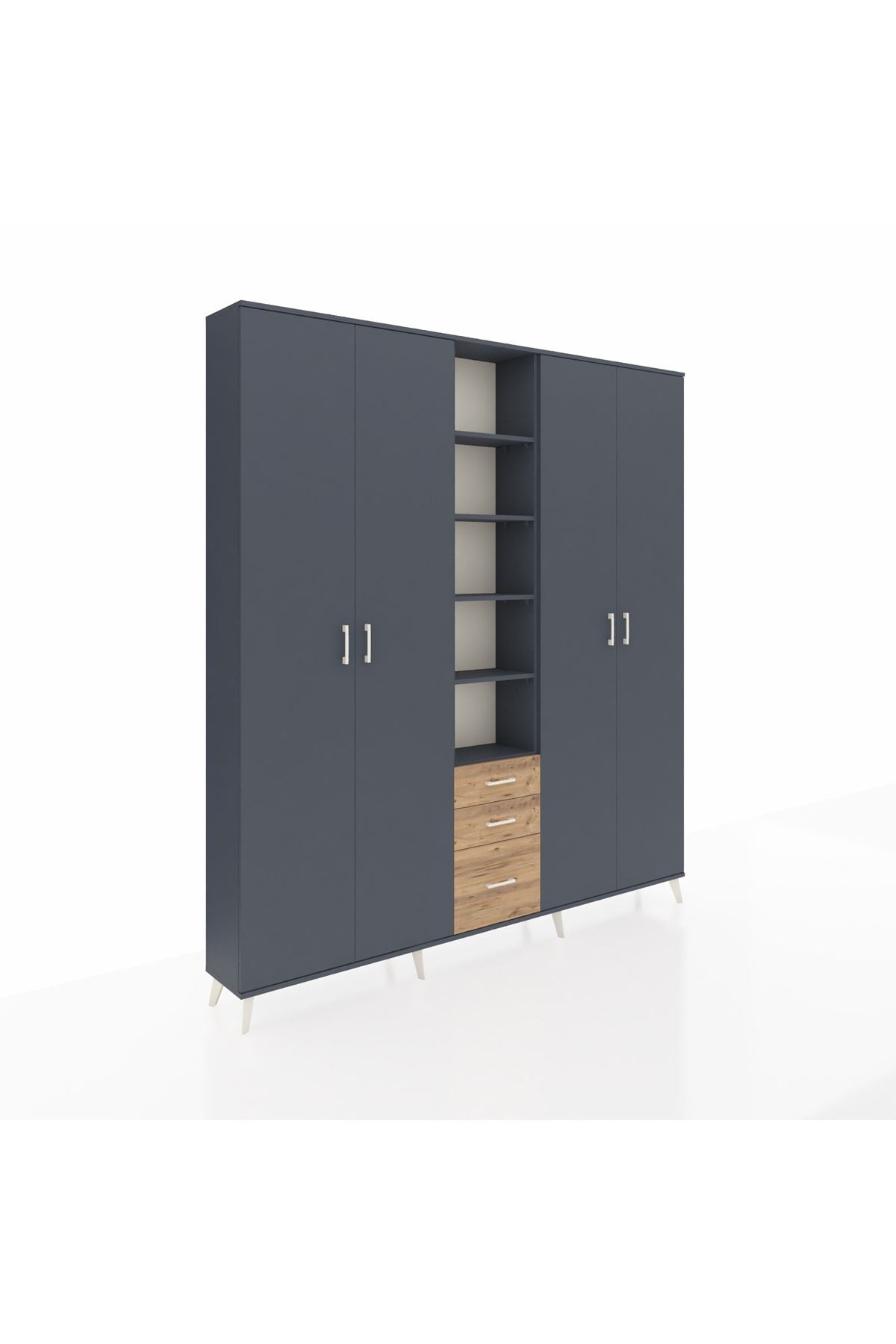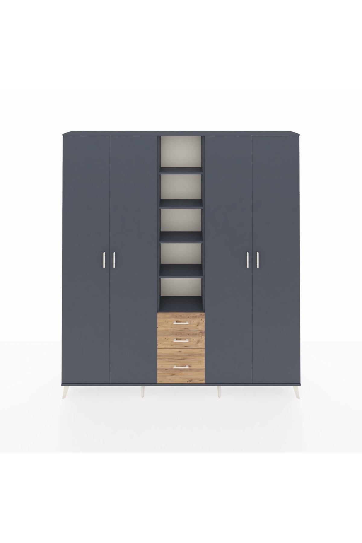 Arges Dolap 17 Raflı 3 Çekmeceli 4 Kapaklı 220x30x243 Antrasit-Antrasit/Çam
