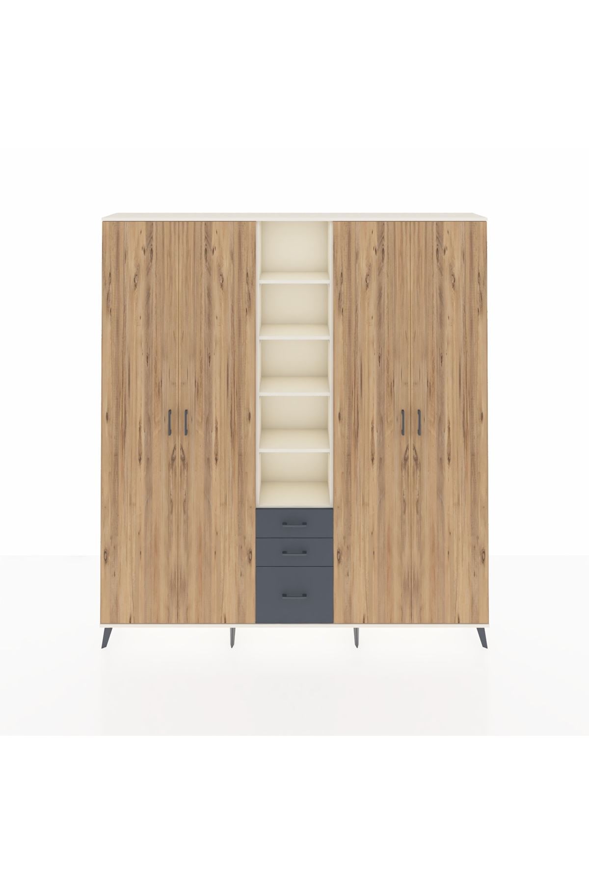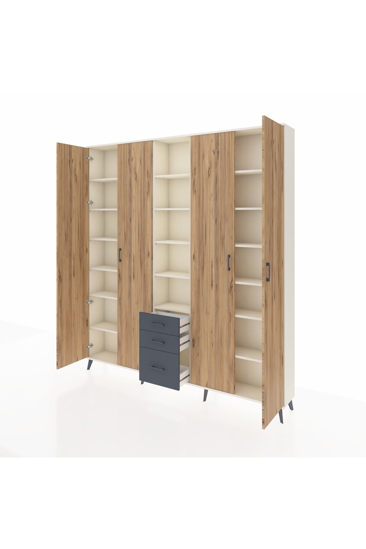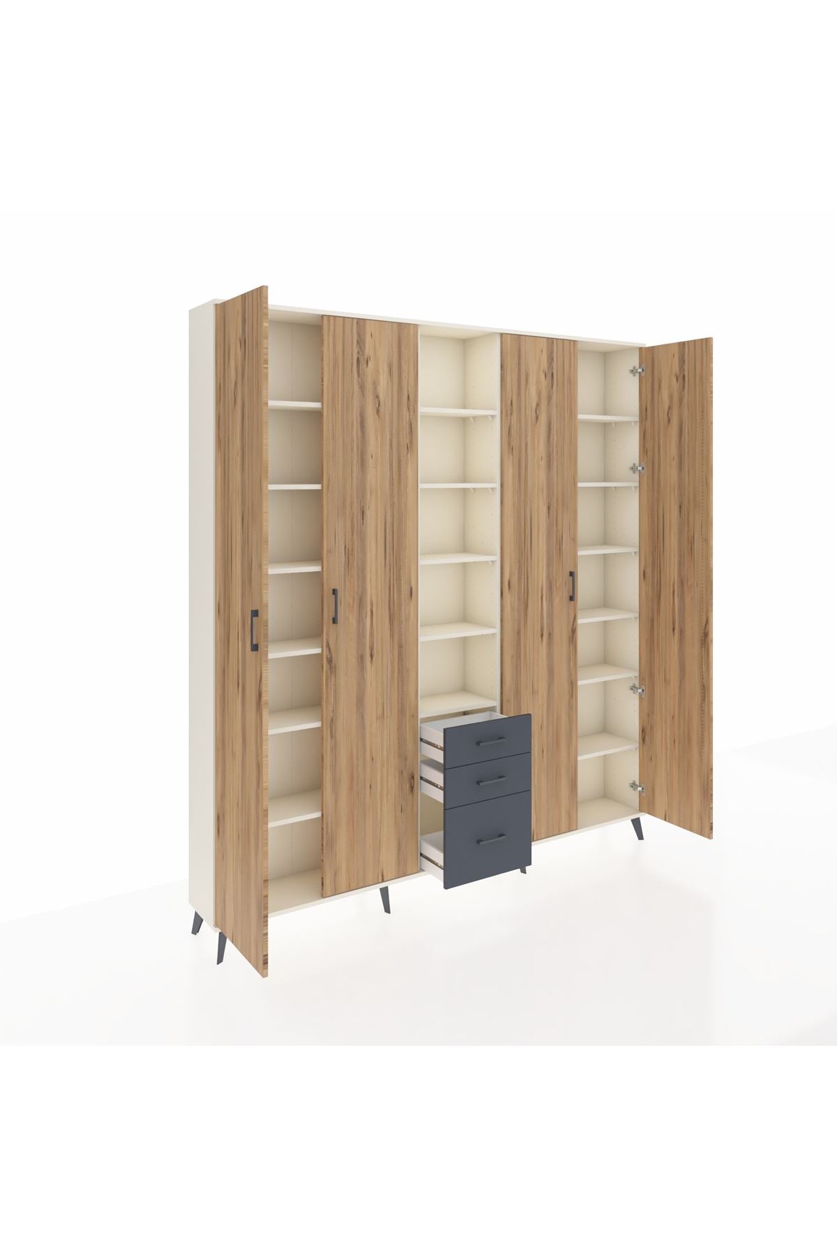 Arges Dolap 17 Raflı 3 Çekmeceli 4 Kapaklı 220x30x243 Aytaşı-Çam/Antrasit