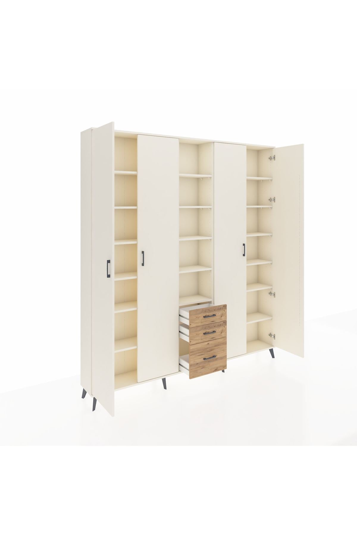 Arges Dolap 17 Raflı 3 Çekmeceli 4 Kapaklı 220x30x243 Aytaşı-Aytaşı/Çam