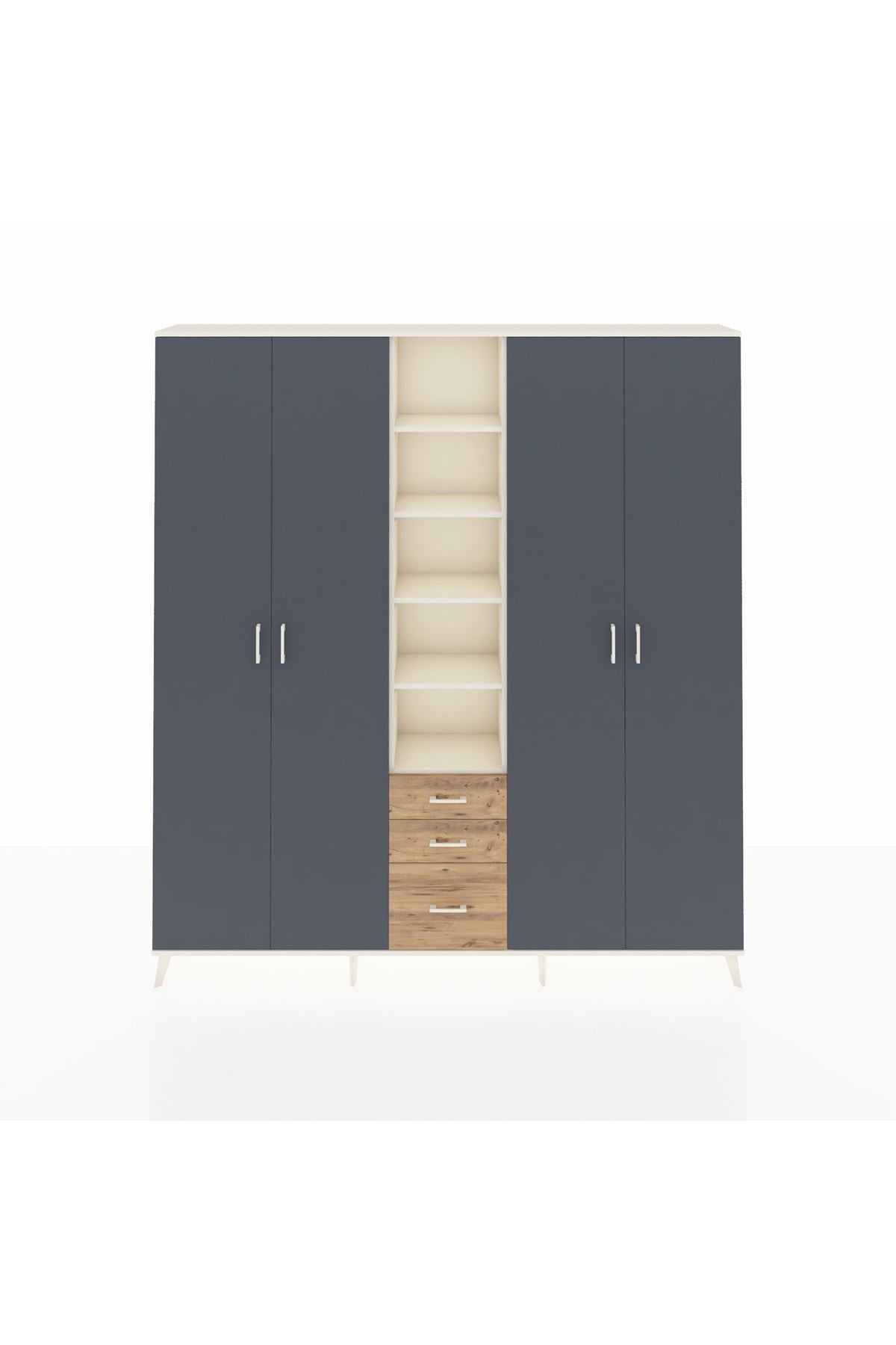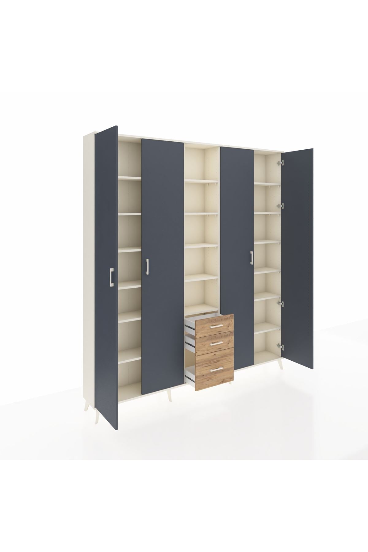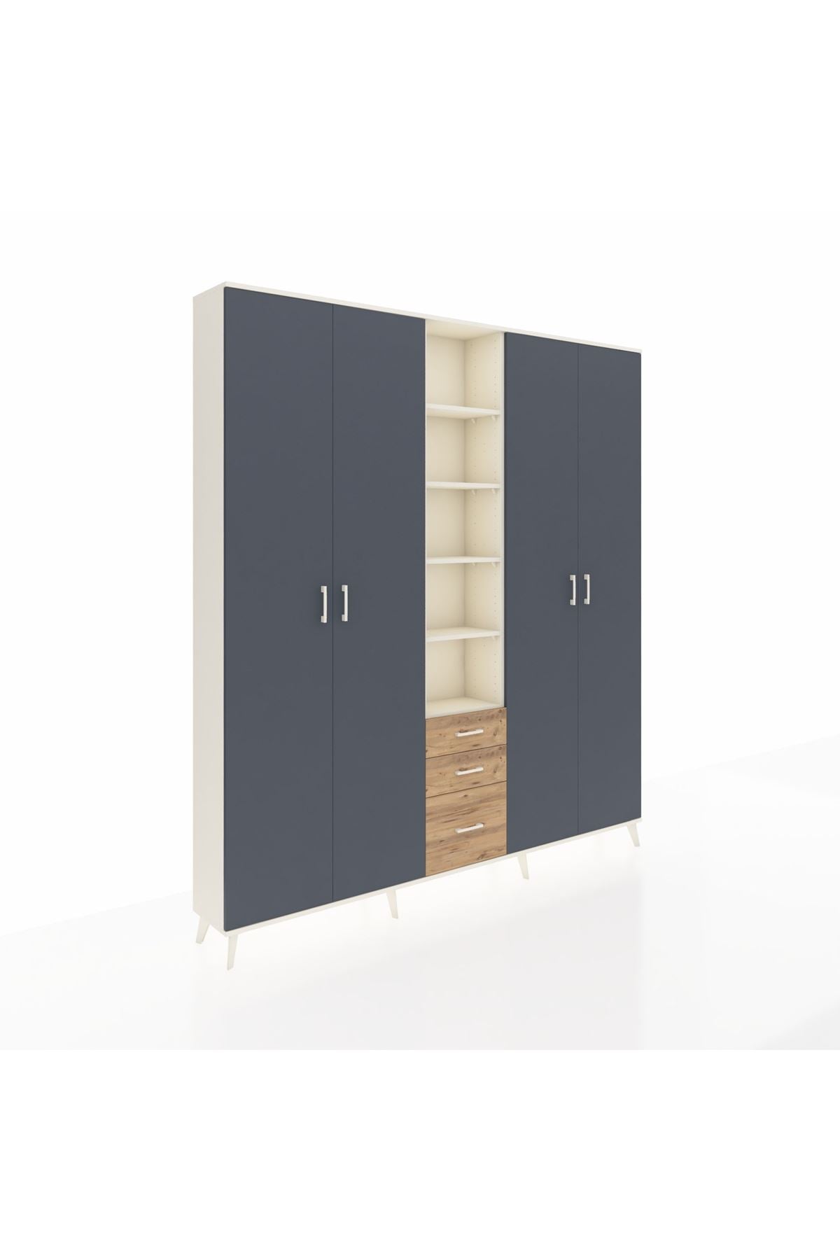 Arges Dolap 17 Raflı 3 Çekmeceli 4 Kapaklı 220x30x243 Aytaşı-Antrasit/Çam