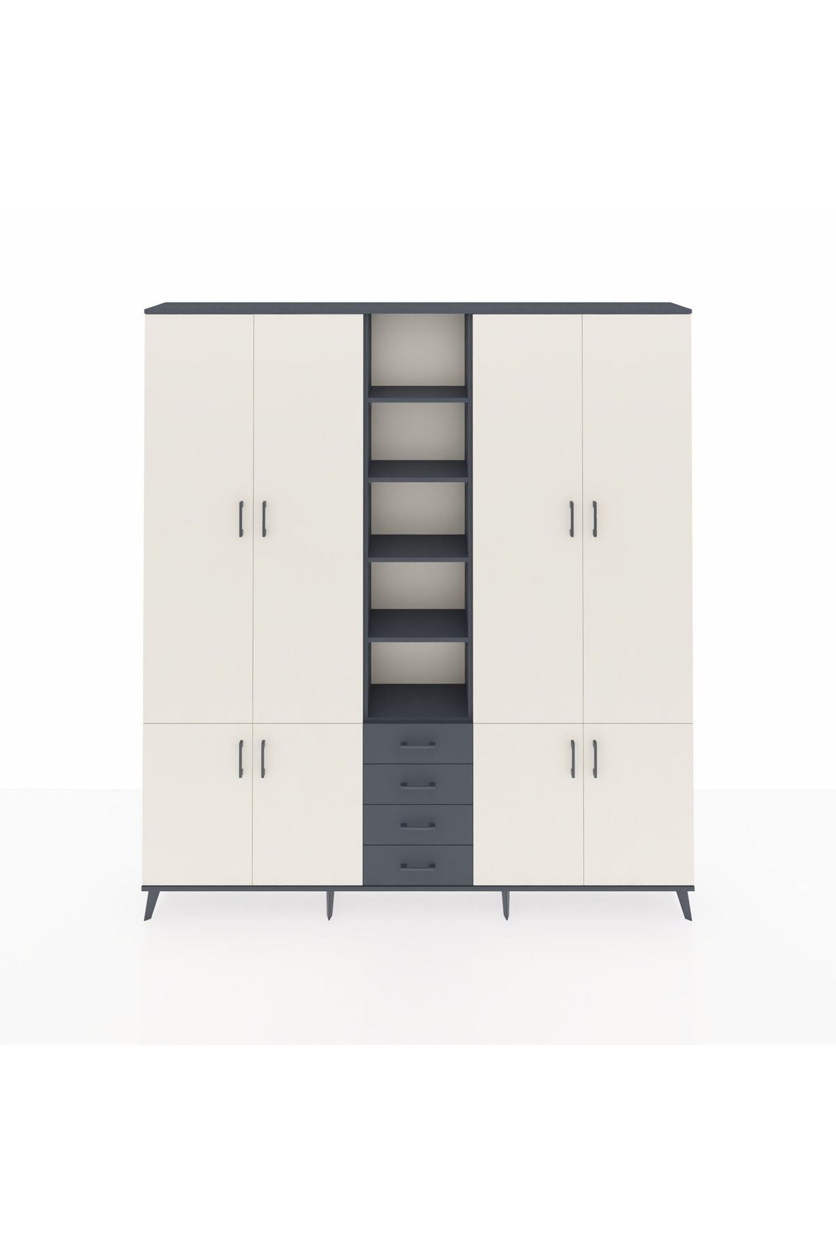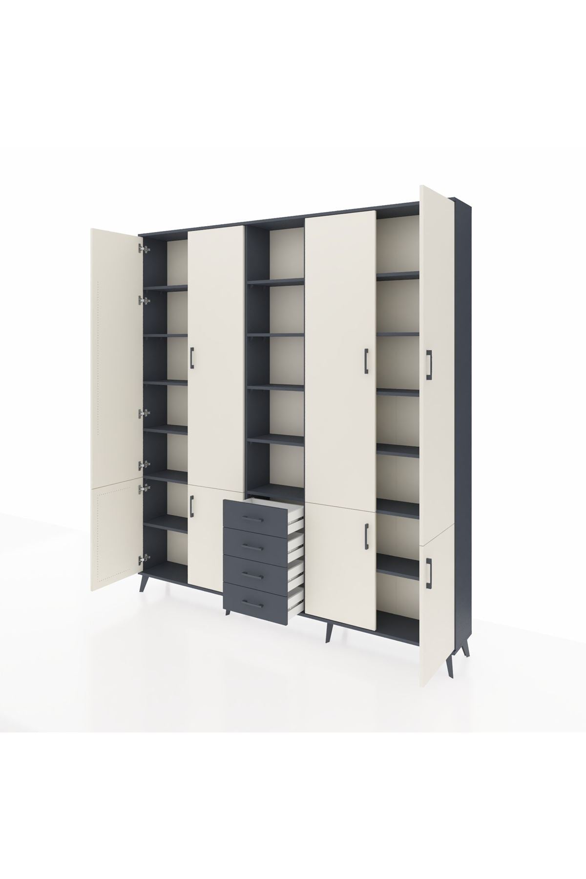 Arges Dolap 17 Raflı 4 Çekmeceli 8 Kapaklı 220x30x243 Antrasit-Aytaşı/Antrasit