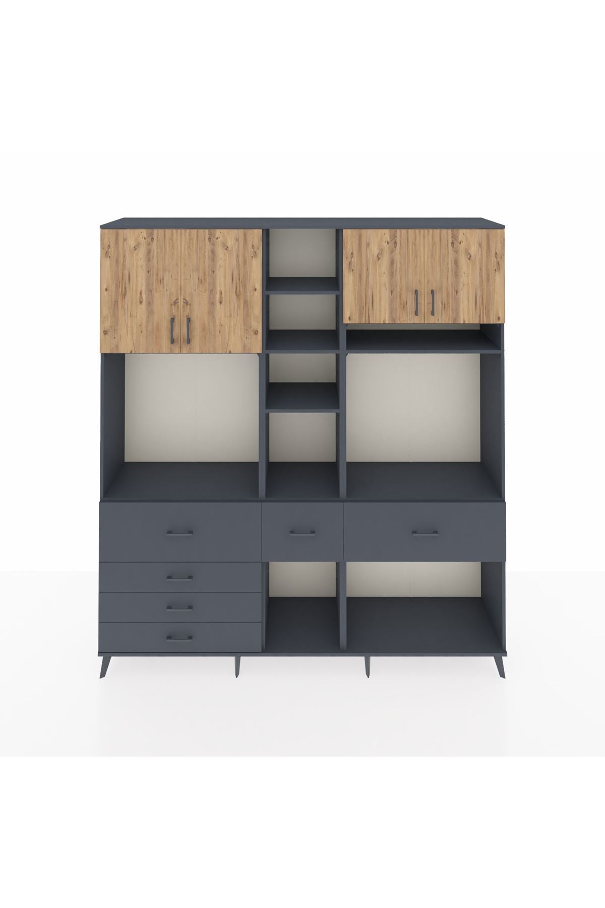Hyperion Dolap 11 Raflı 6 Çekmeceli 4 Kapaklı 220x44x243 Antrasit-Çam/Antrasit