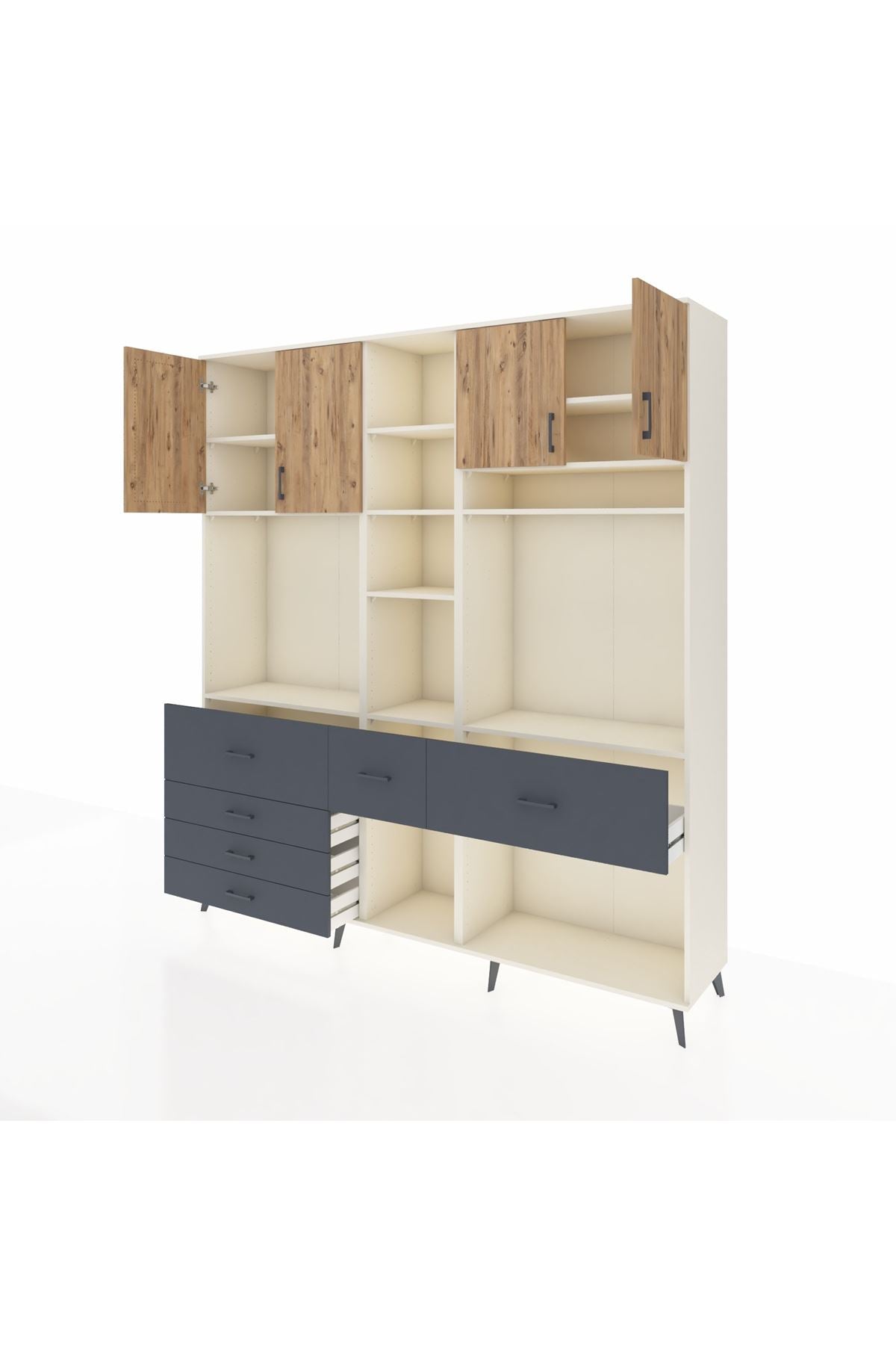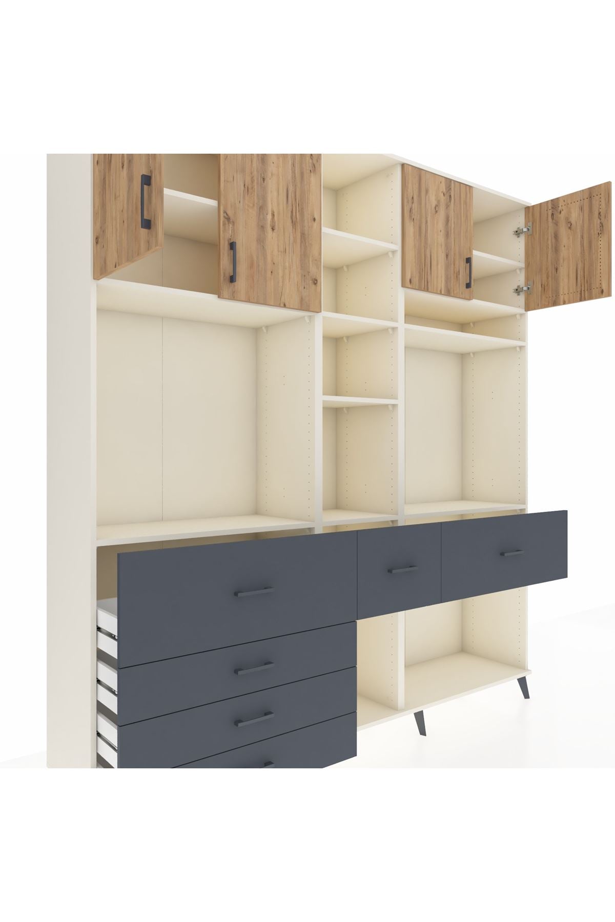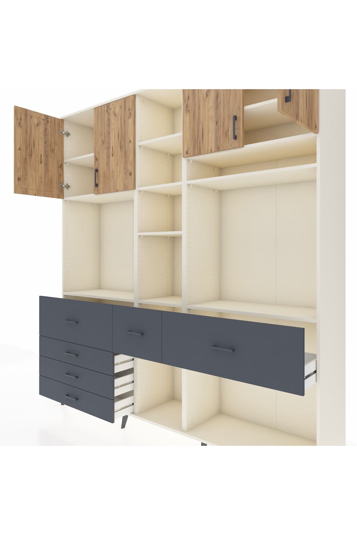 Hyperion Dolap 11 Raflı 6 Çekmeceli 4 Kapaklı 220x44x243 Aytaşı-Çam/Antrasit