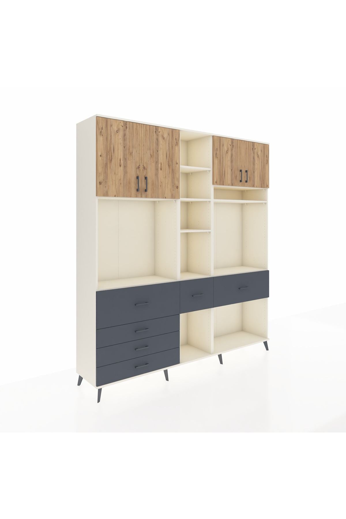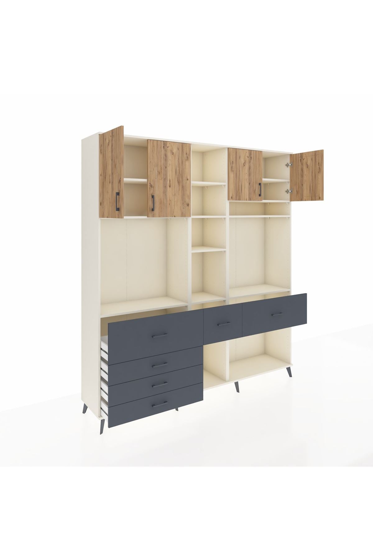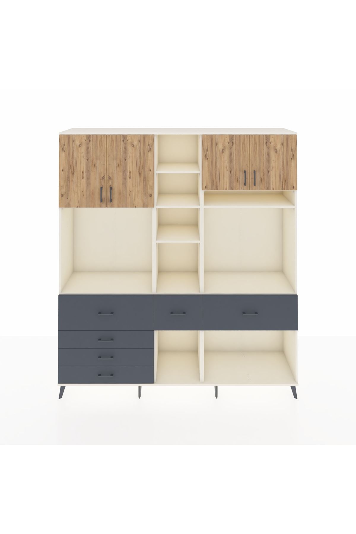 Hyperion Dolap 11 Raflı 6 Çekmeceli 4 Kapaklı 220x44x243 Aytaşı-Çam/Antrasit