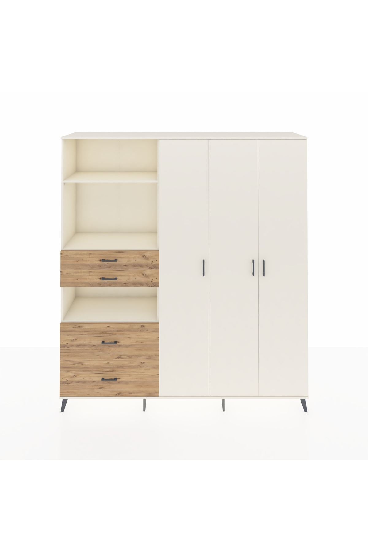 Hyperion Dolap 12 Raflı 4 Çekmeceli Tek Askılı 220x44x243 Aytaşı-Aytaşı/Çam