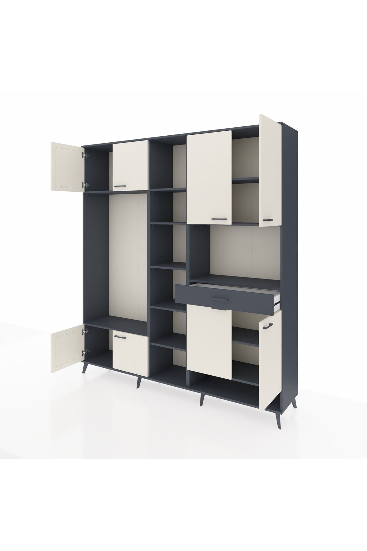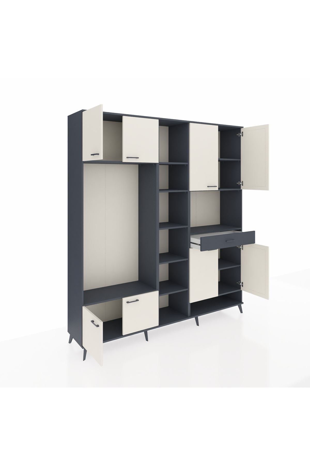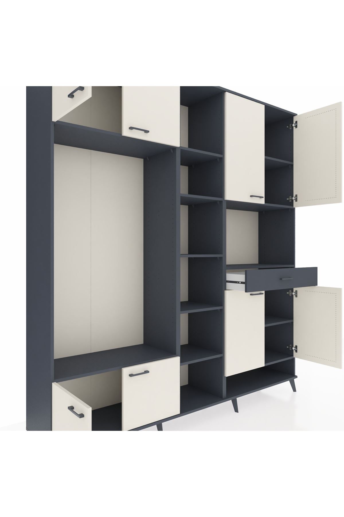 Hyperion Dolap 12 Raflı Tek Çekmeceli 8 Kapaklı 220x44x243 Antrasit-Aytaşı/Antrasit