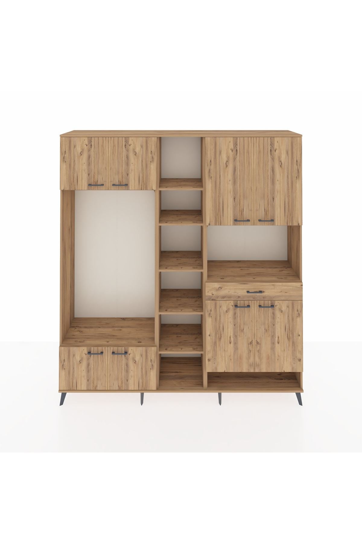 Hyperion Dolap 12 Raflı Tek Çekmeceli 8 Kapaklı 220x44x243 Çam-Çam/Çam