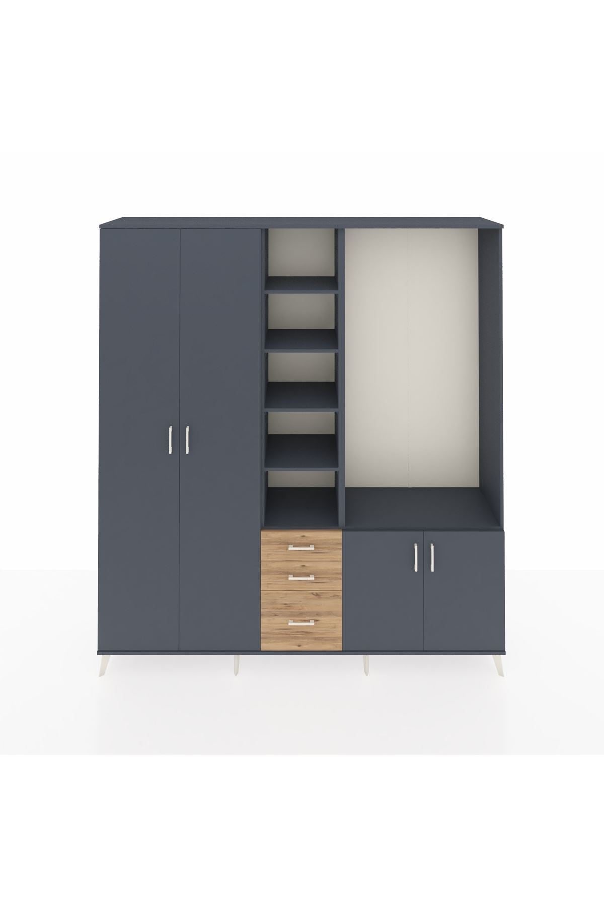 Hyperion Dolap 13 Raflı 3 Çekmeceli 4 Kapaklı 220x44x243 Antrasit-Antrasit/Çam