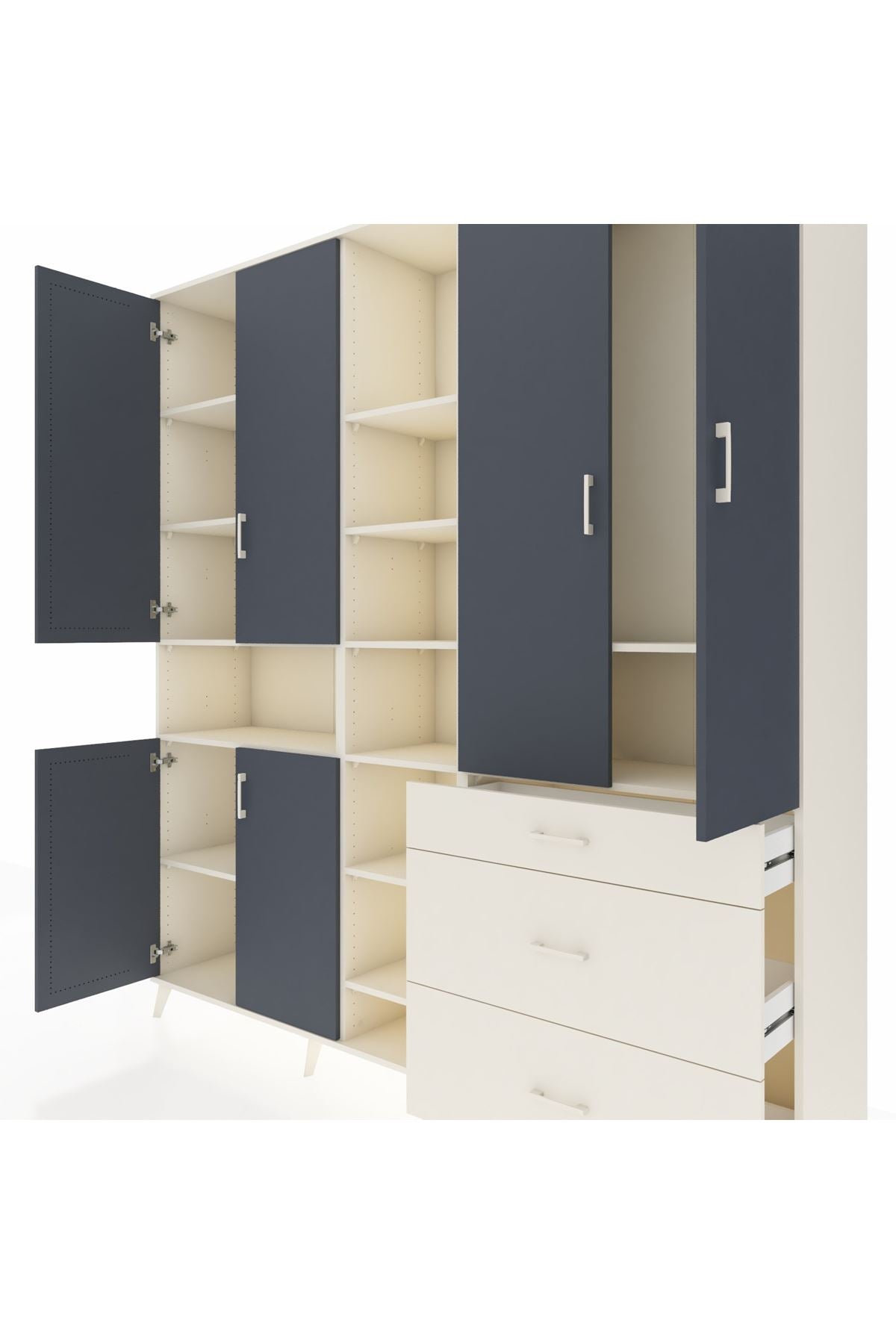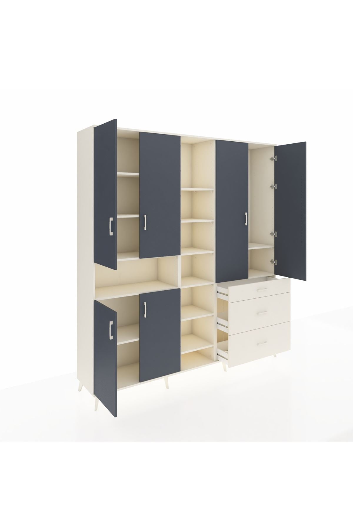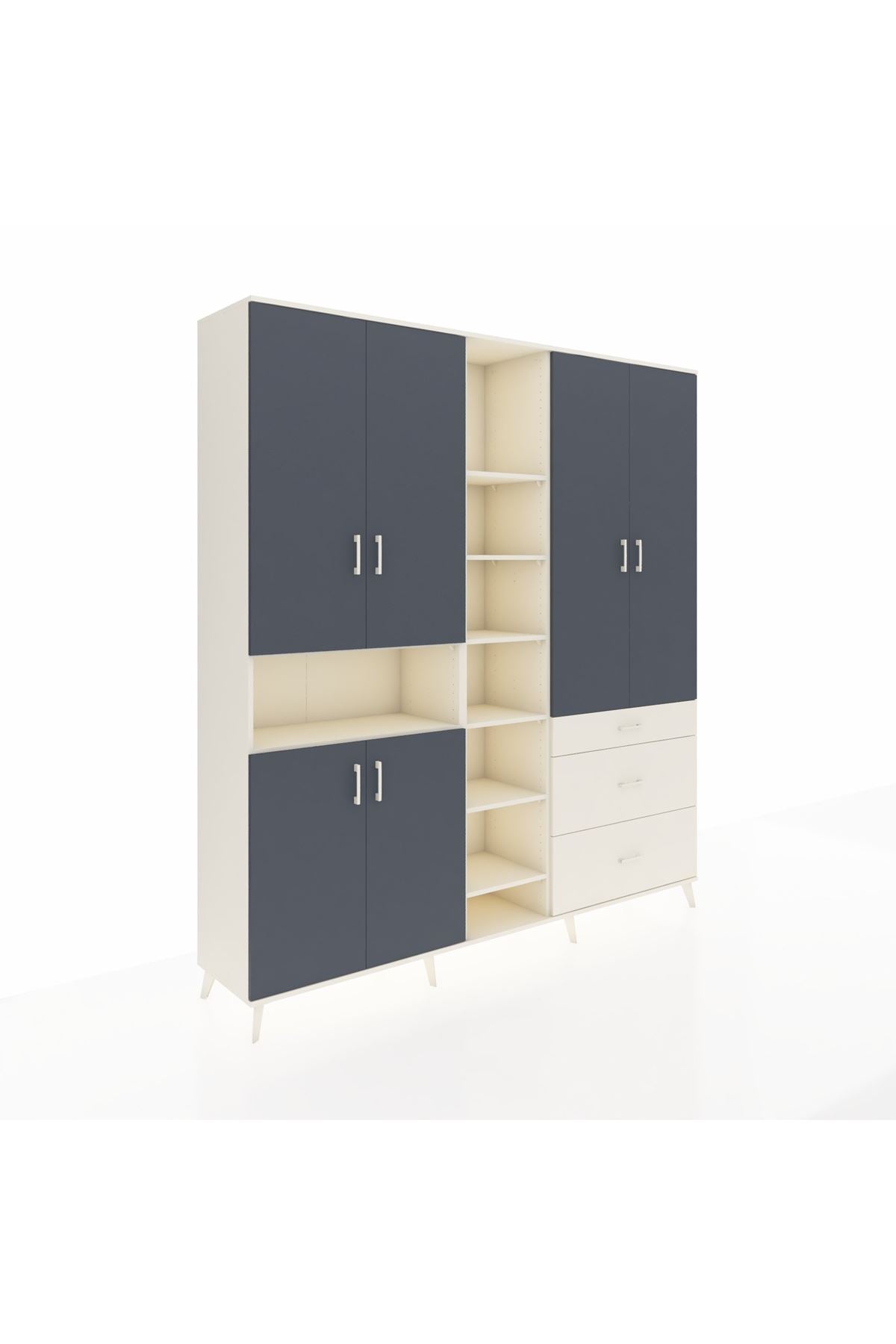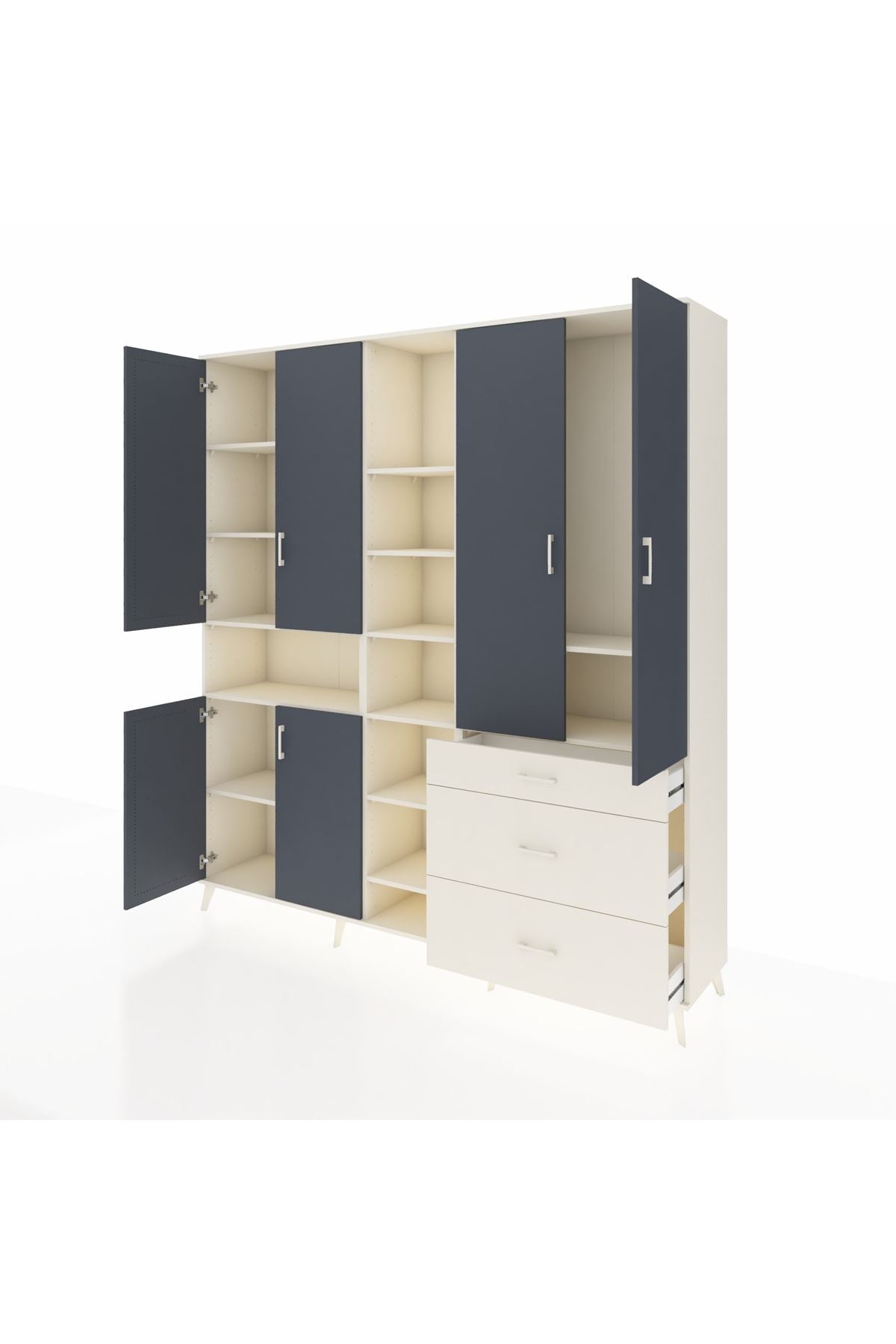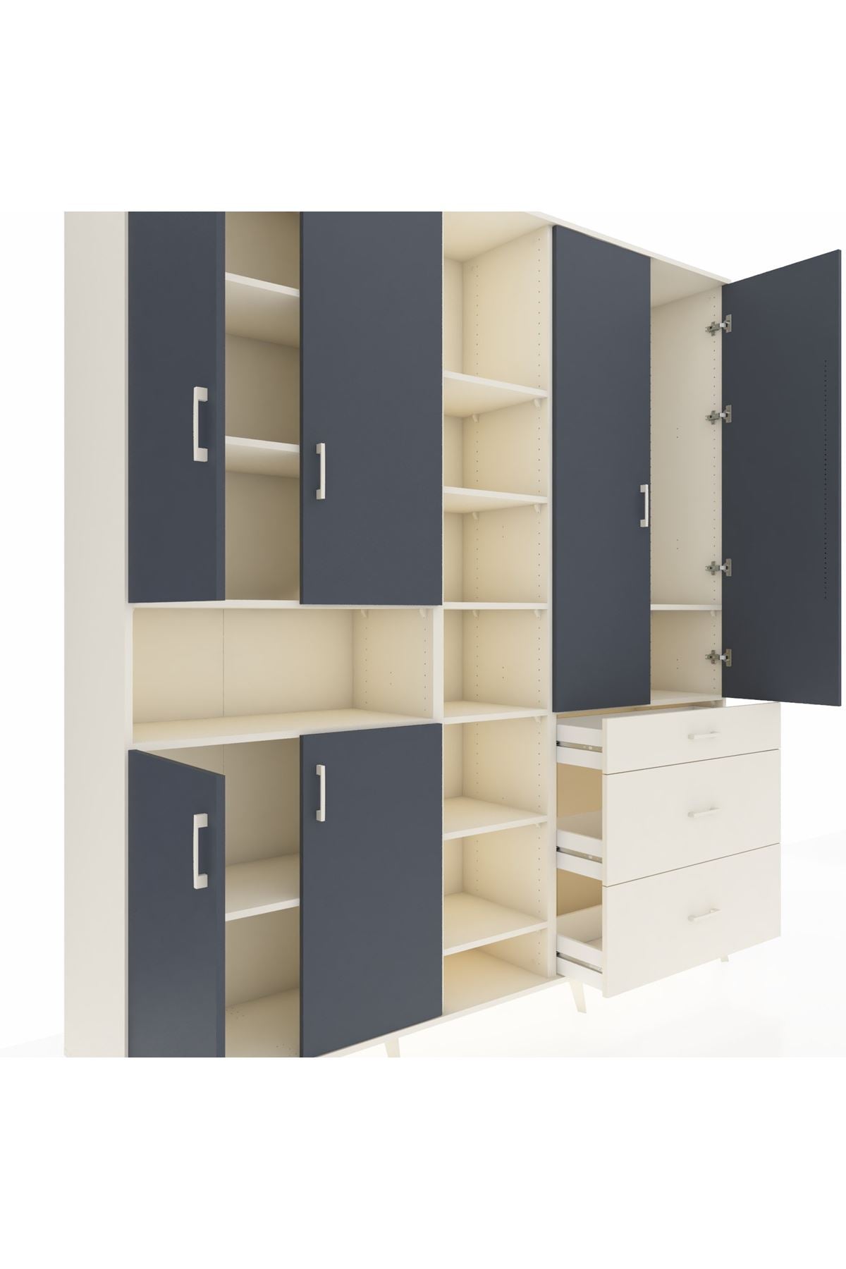 Hyperion Dolap 13 Raflı 3 Çekmeceli 6 Kapaklı 220x44x243 Aytaşı-Antrasit/Aytaşı