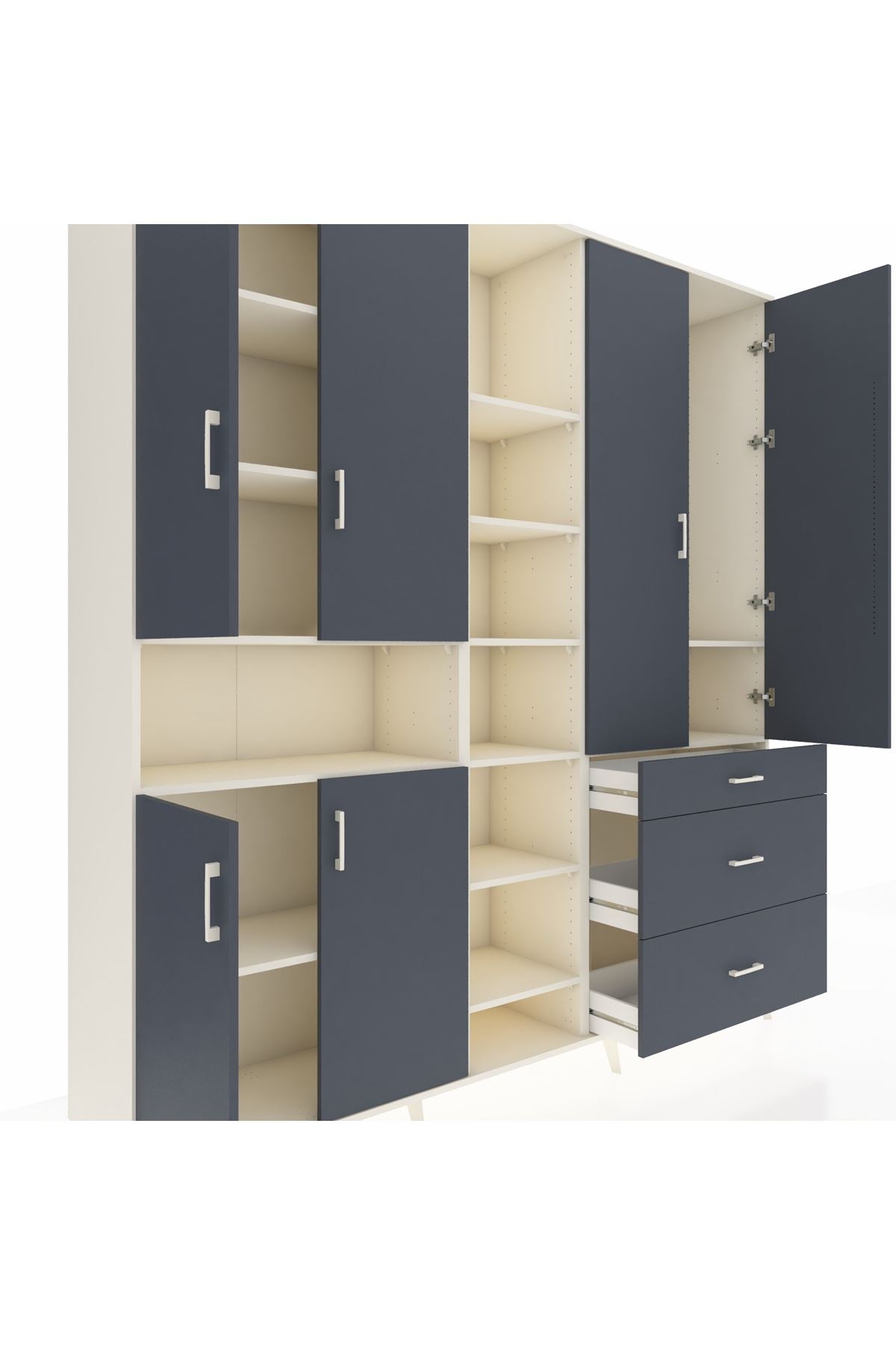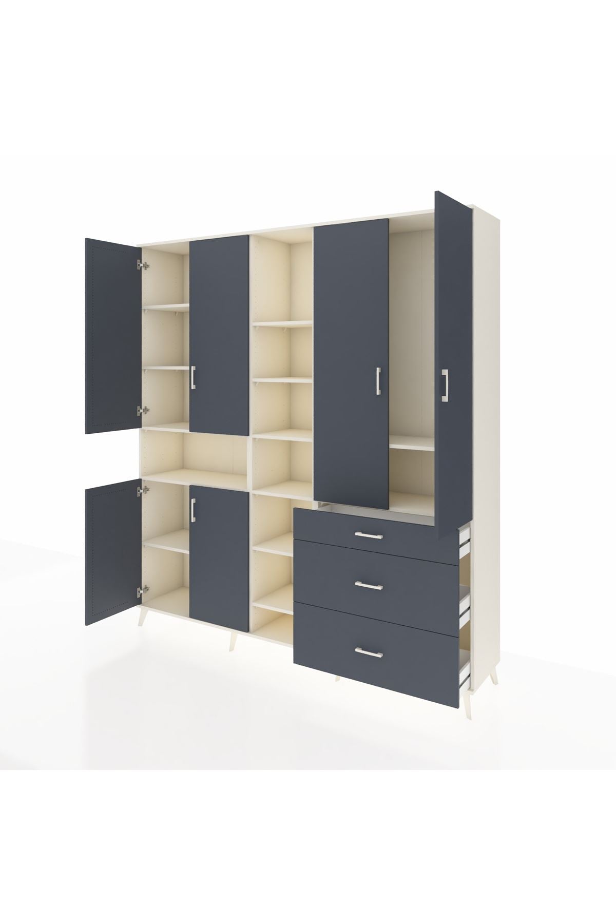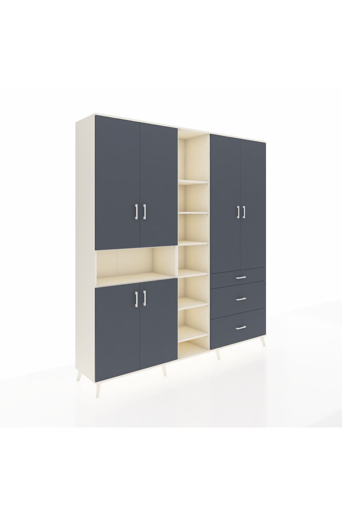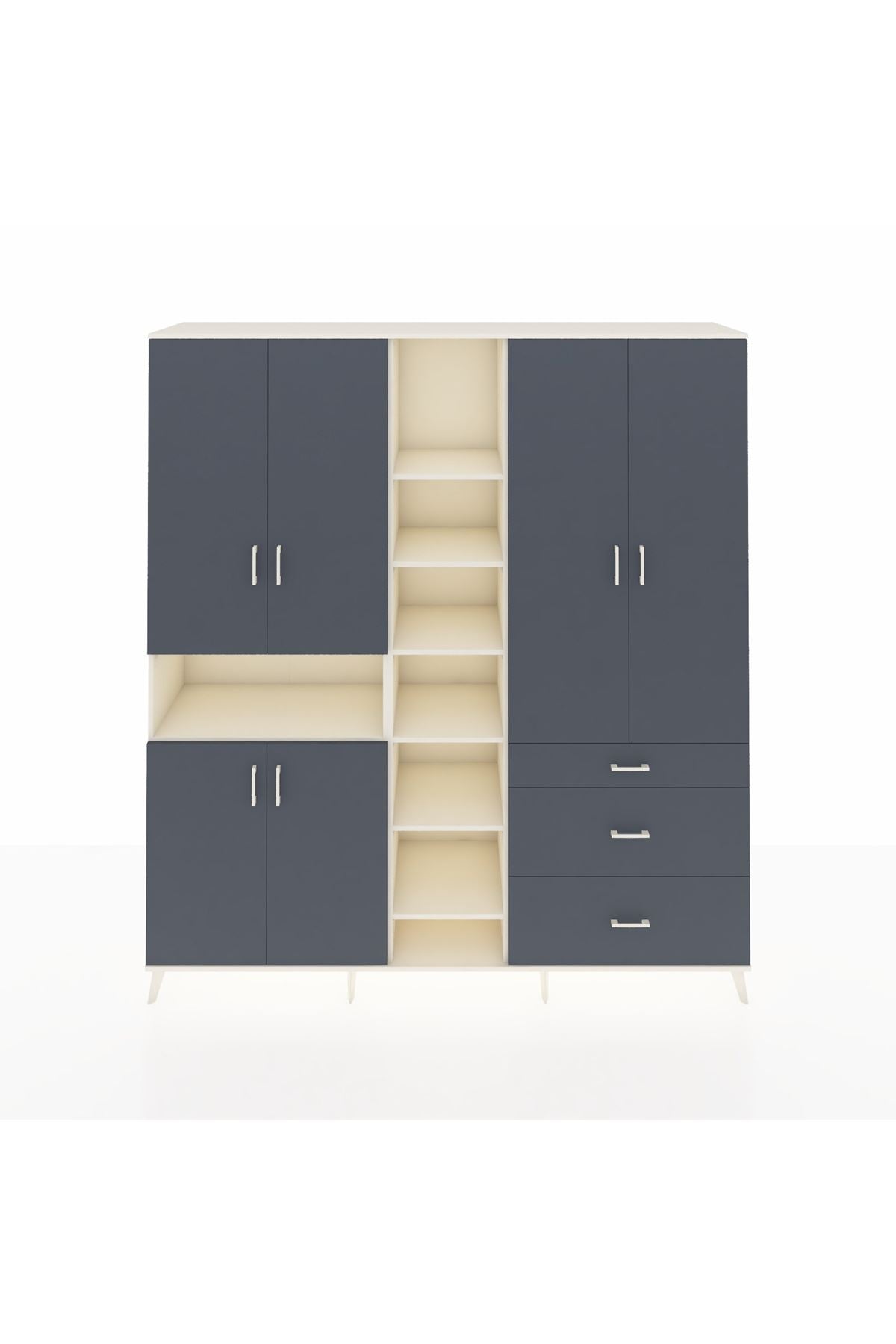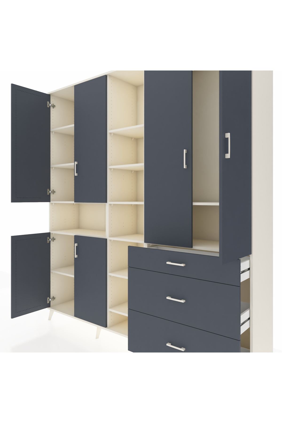 Hyperion Dolap 13 Raflı 3 Çekmeceli 6 Kapaklı 220x44x243 Aytaşı-Antrasit/Antrasit