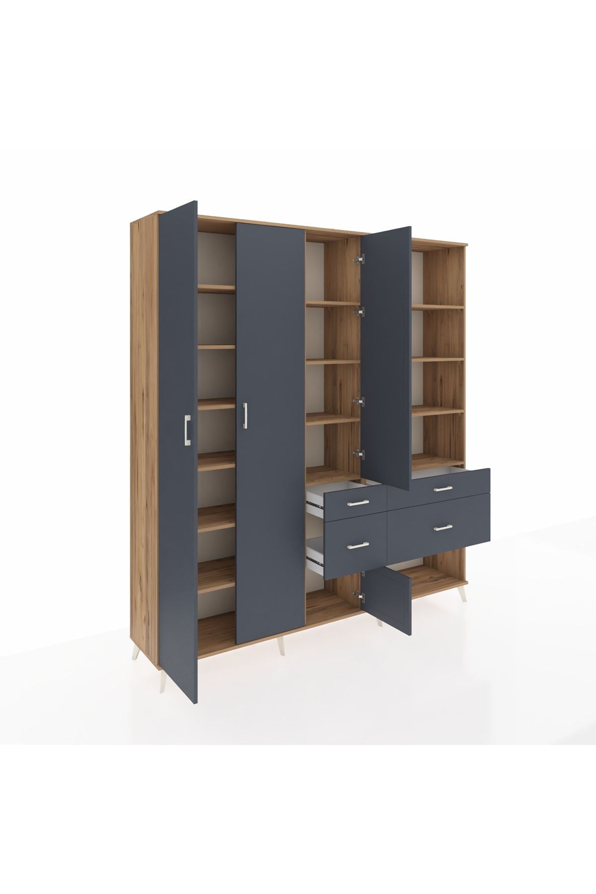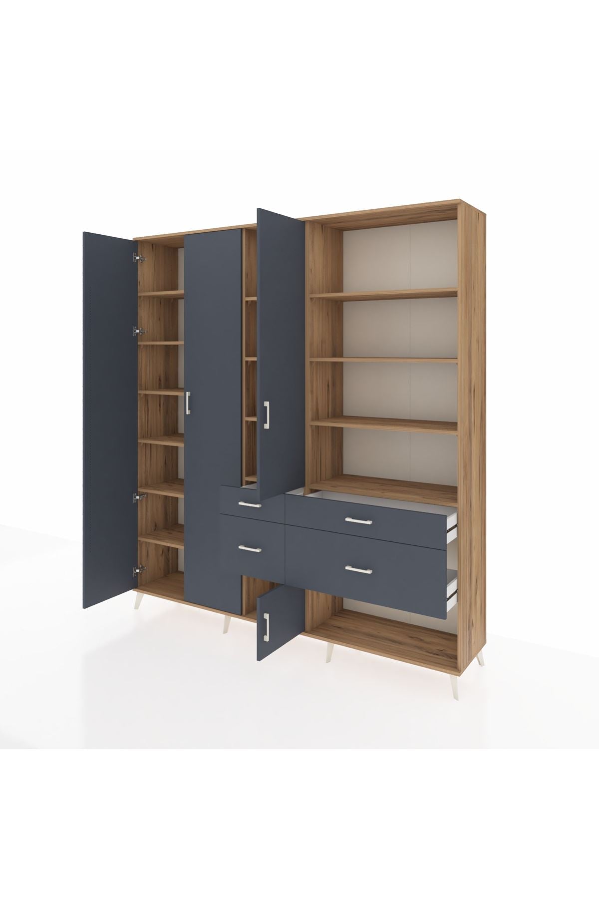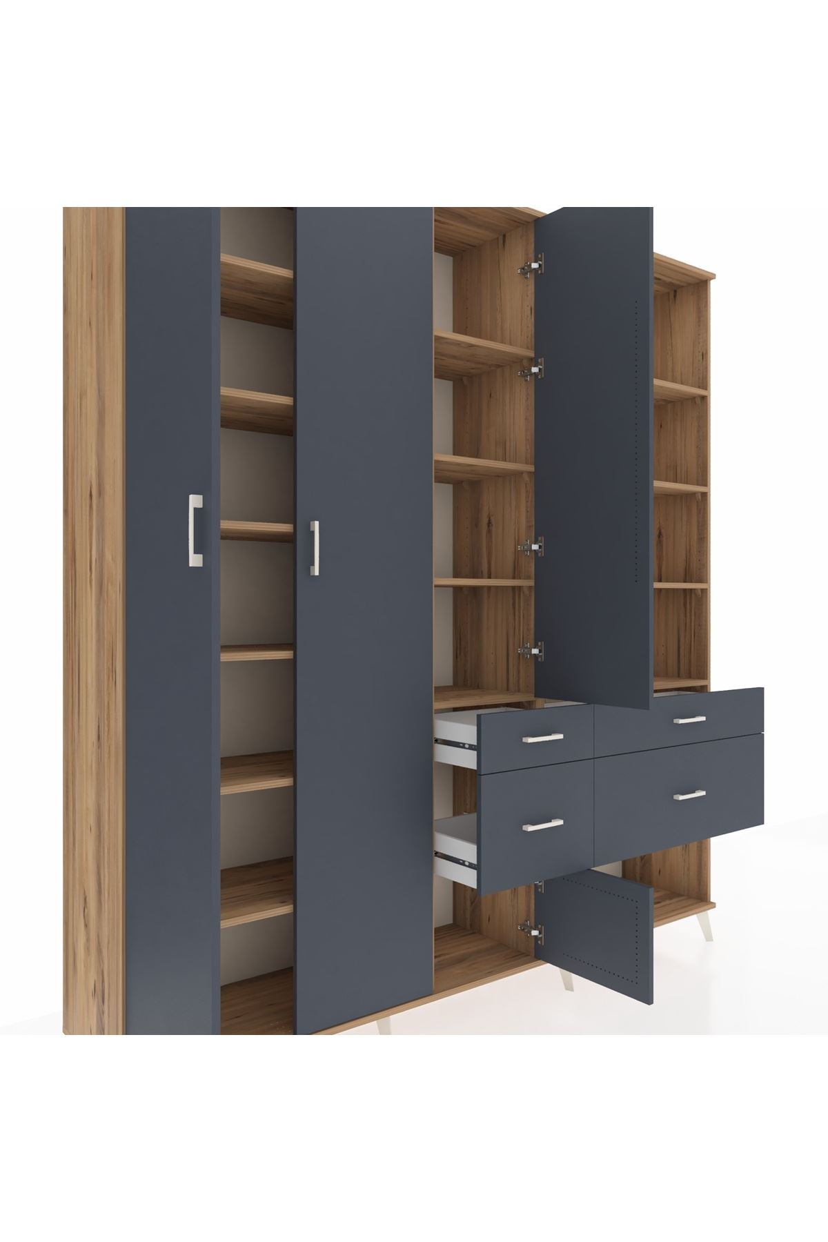 Hyperion Dolap 14 Raflı 4 Çekmeceli 4 Kapaklı 220x44x243 Çam-Antrasit/Antrasit