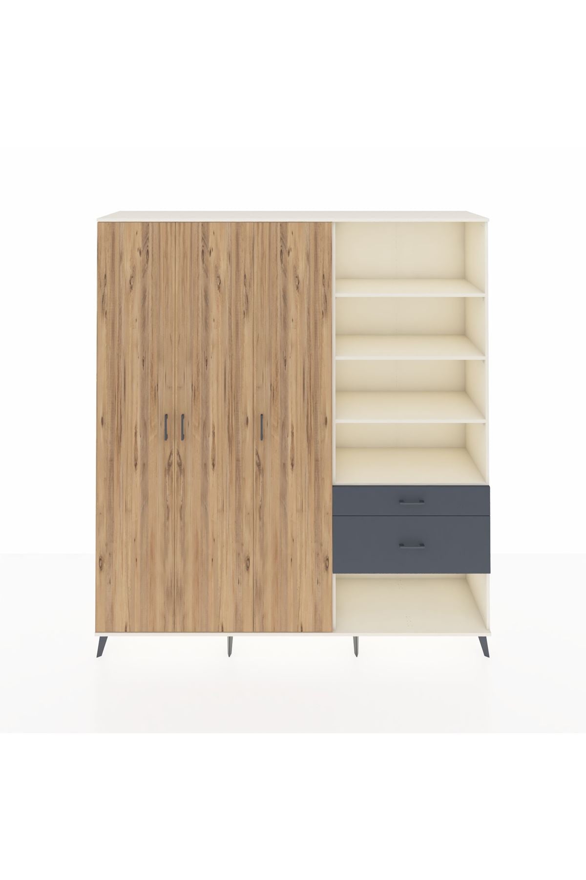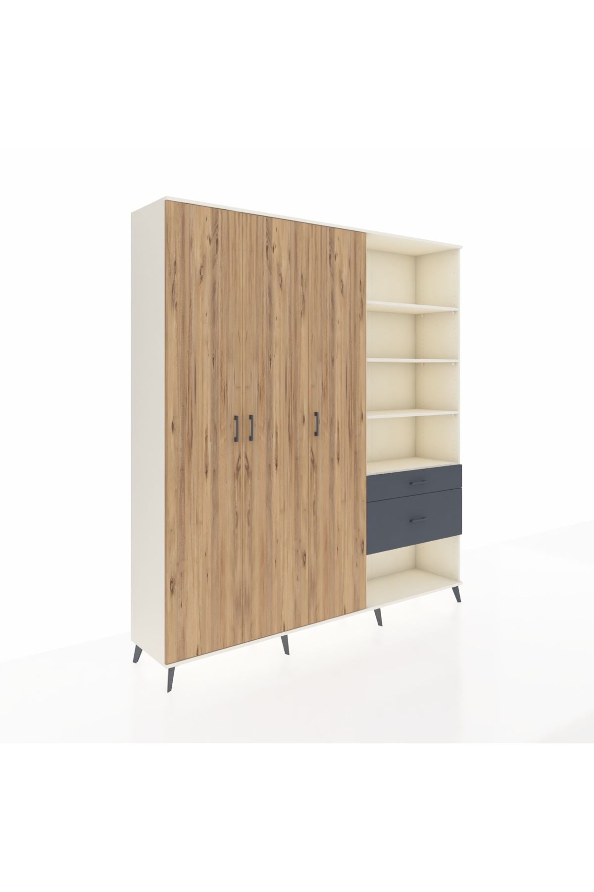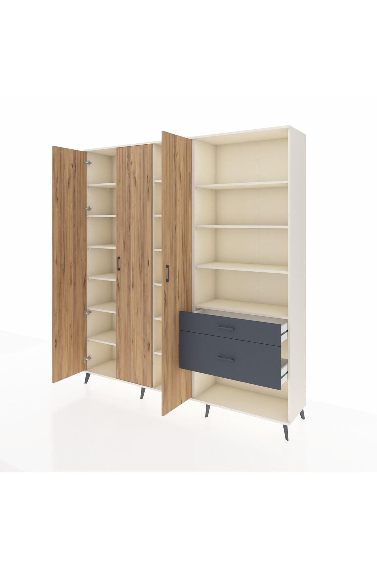 Hyperion Dolap 16 Raflı 2 Çekmeceli 3 Kapaklı 220x44x243 Aytaşı-Çam/Antrasit