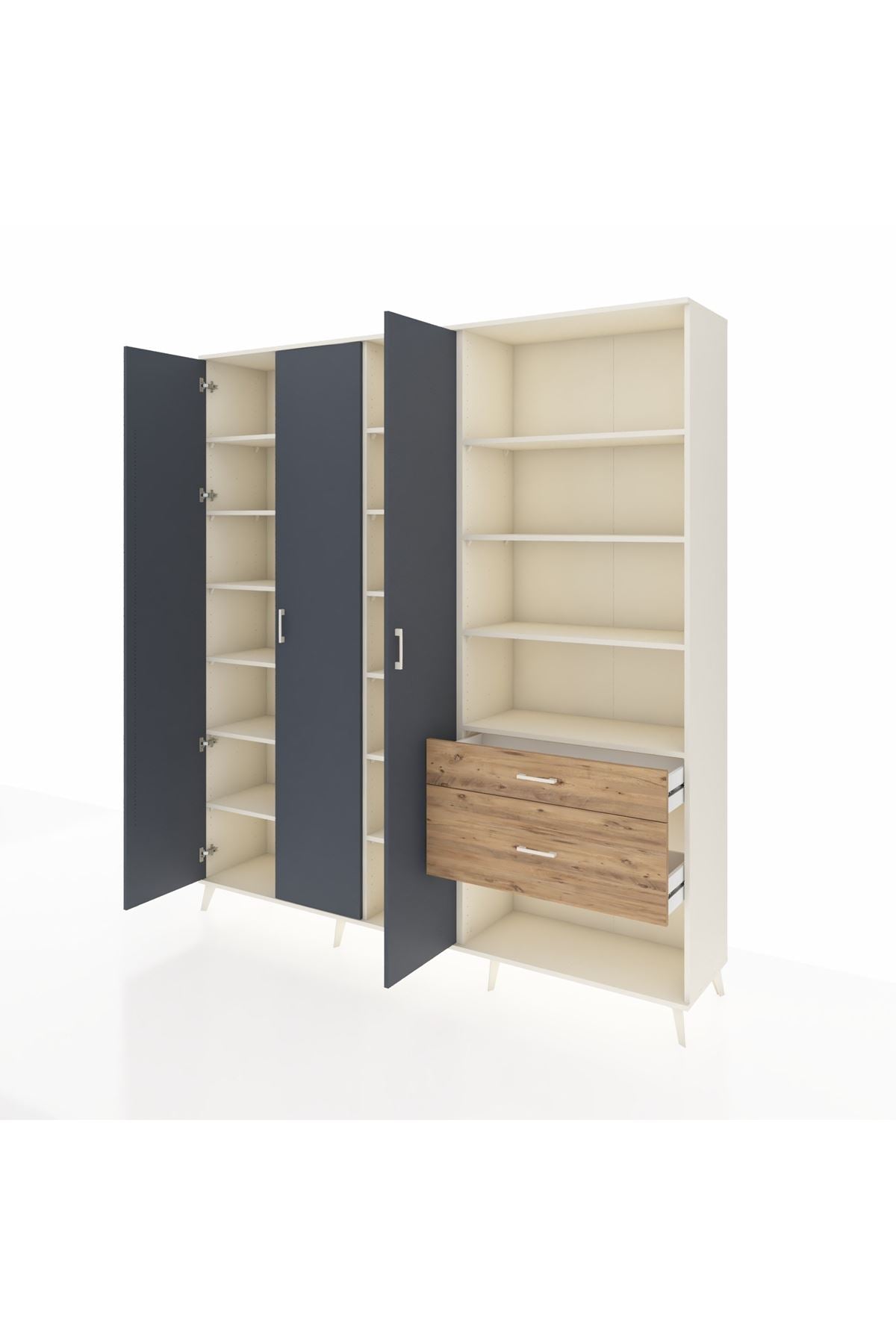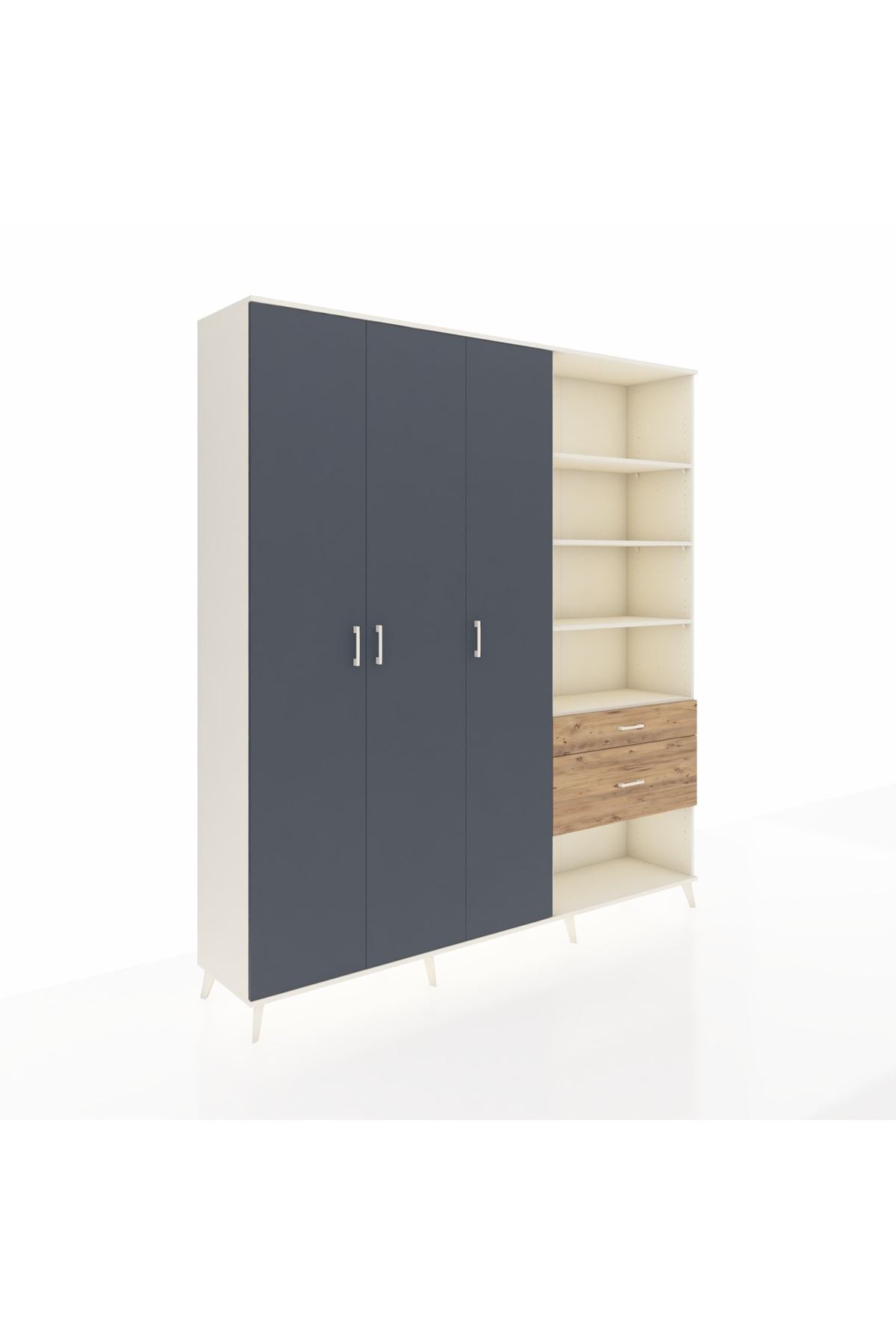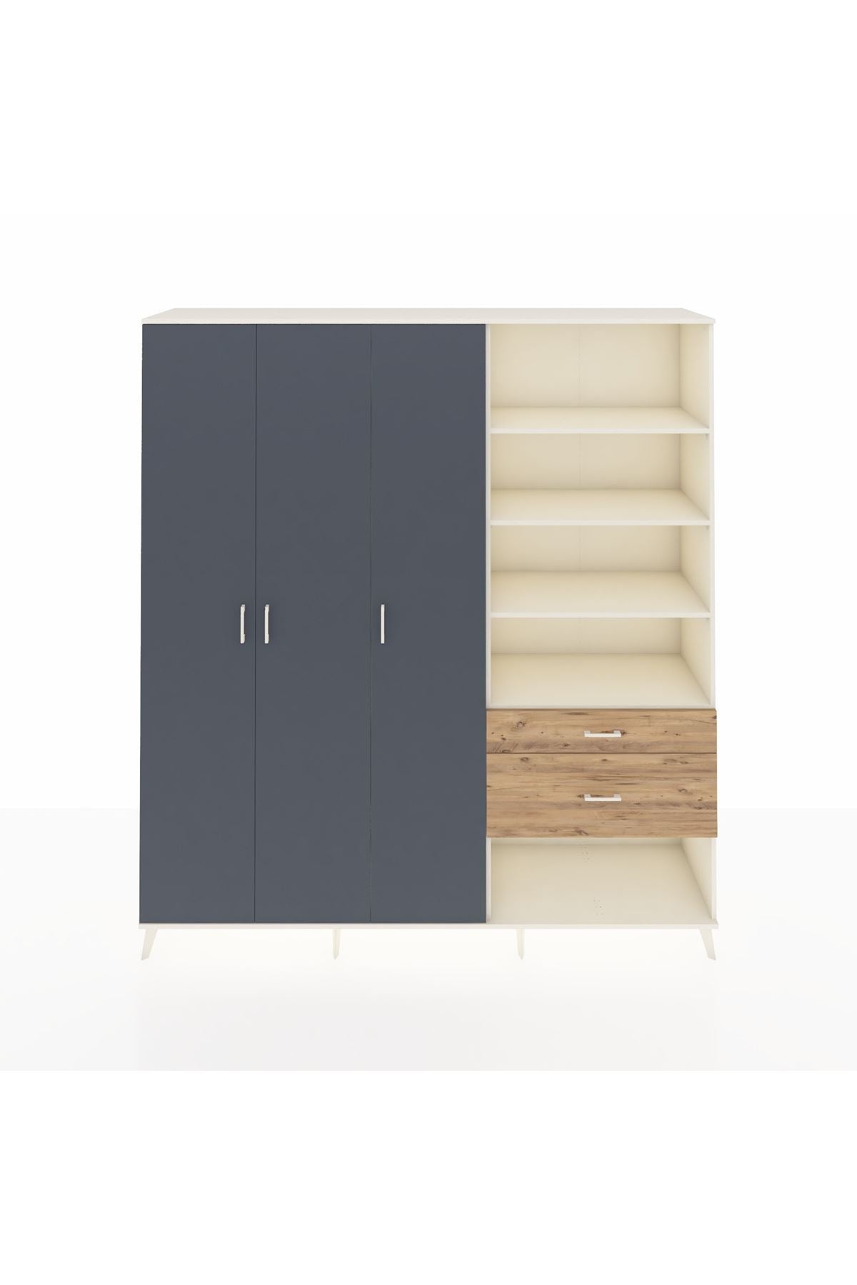 Hyperion Dolap 16 Raflı 2 Çekmeceli 3 Kapaklı 220x44x243 Aytaşı-Antrasit/Çam
