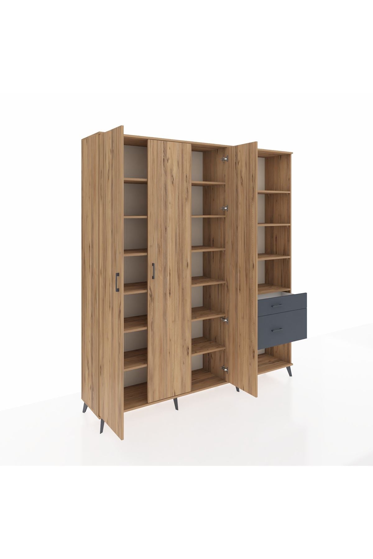 Hyperion Dolap 16 Raflı 2 Çekmeceli 3 Kapaklı 220x44x243 Çam-Çam/Antrasit