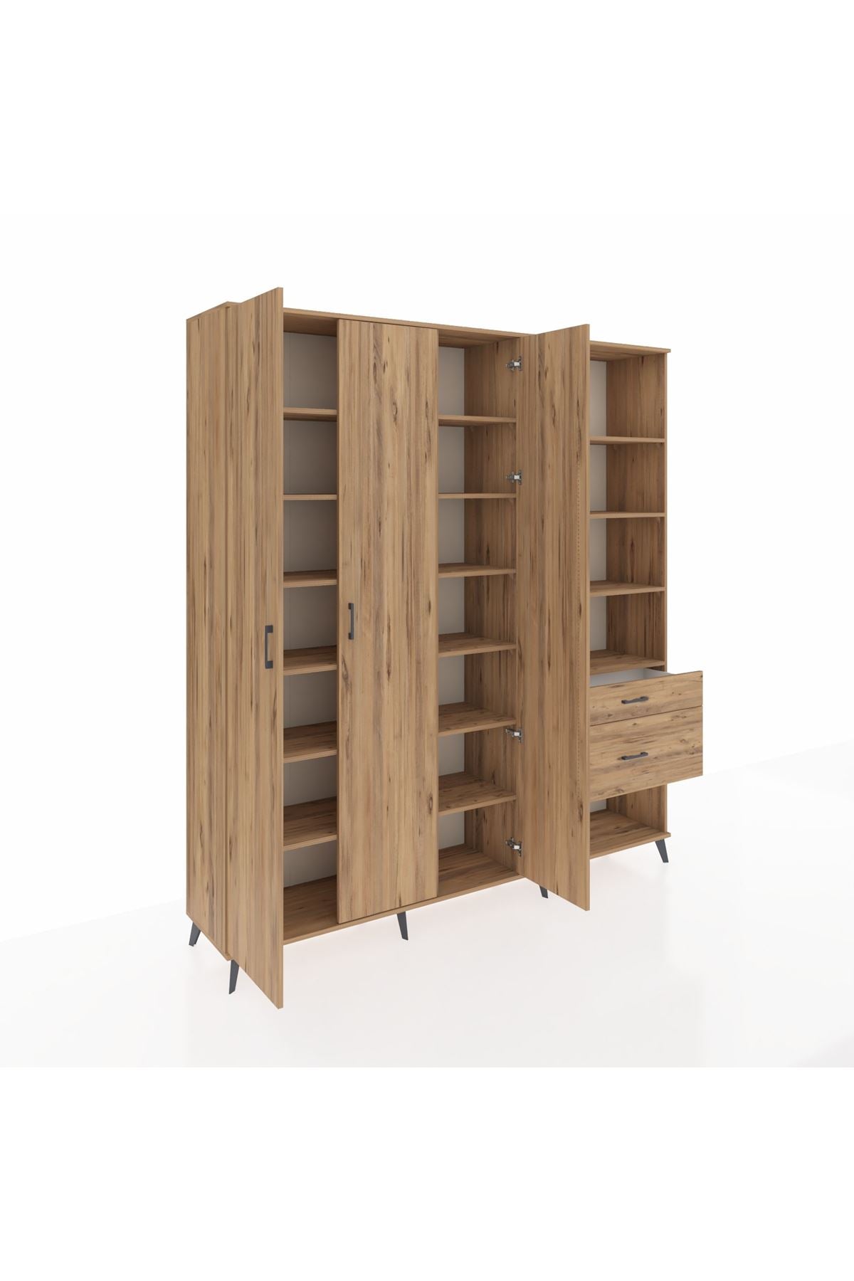 Hyperion Dolap 16 Raflı 2 Çekmeceli 3 Kapaklı 220x44x243 Çam-Çam/Çam