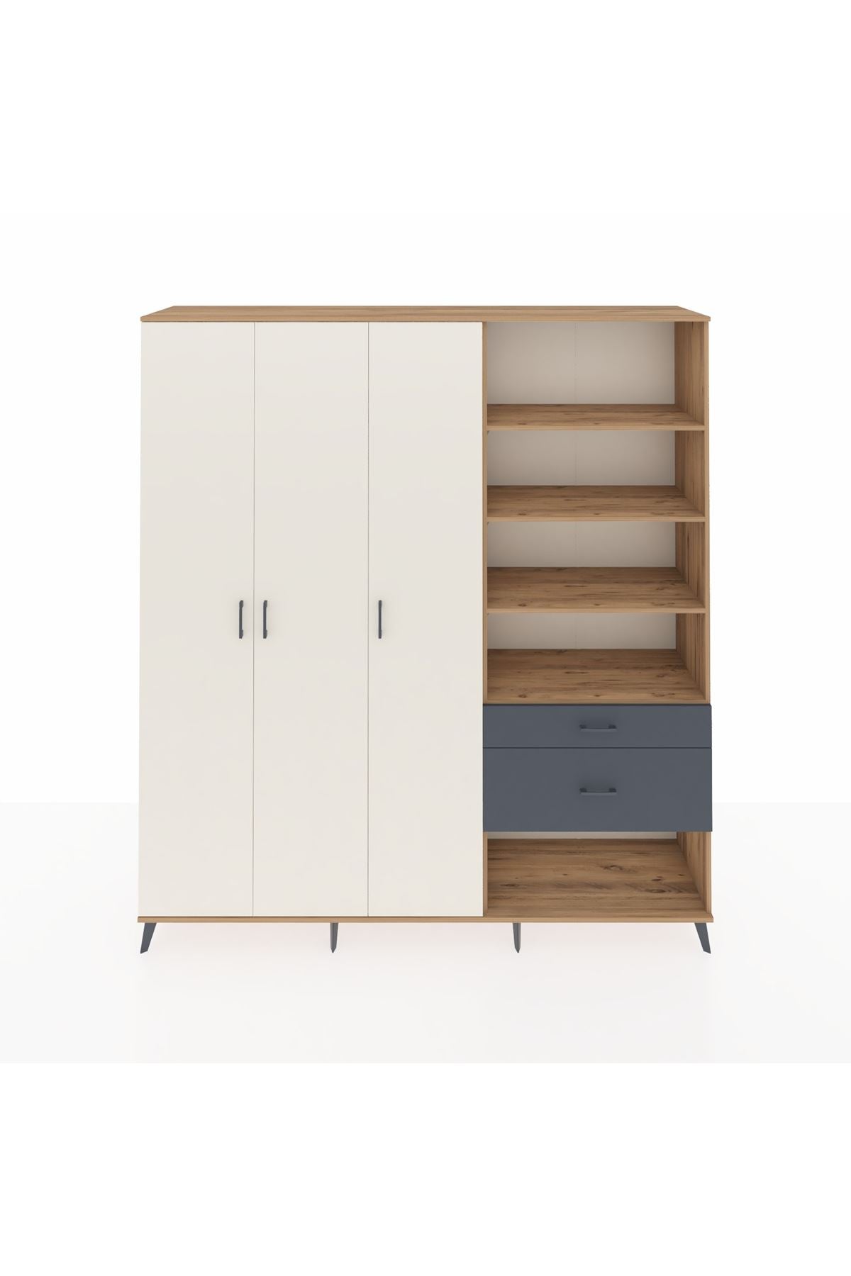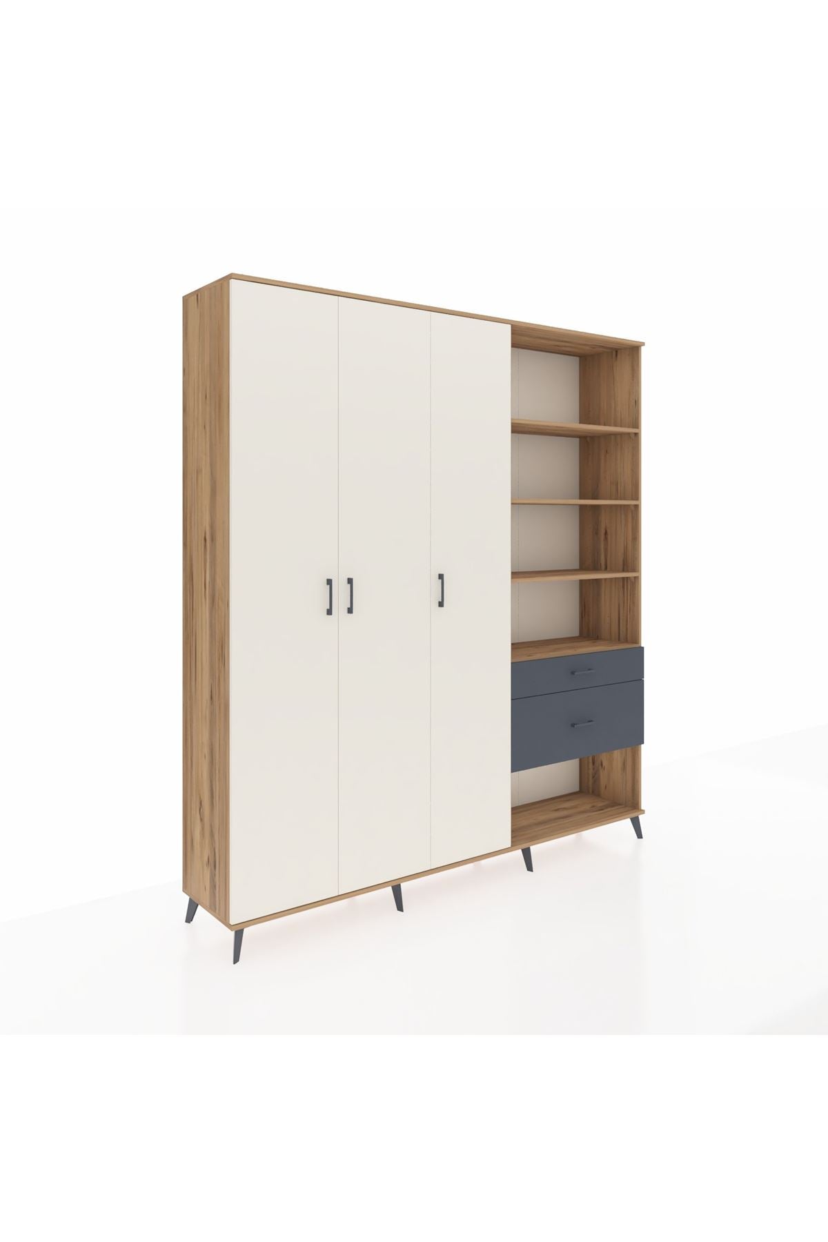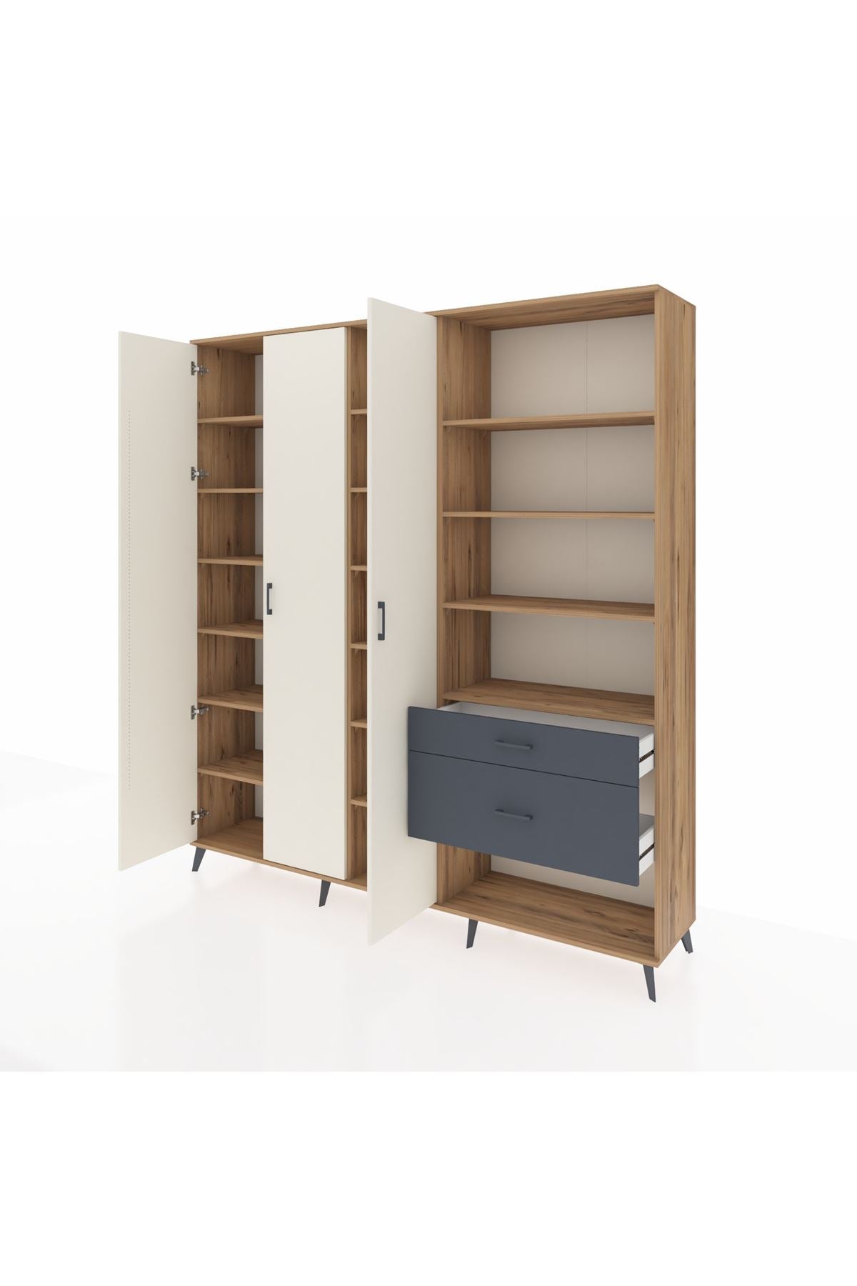 Hyperion Dolap 16 Raflı 2 Çekmeceli 3 Kapaklı 220x44x243 Çam-Aytaşı/Antrasit