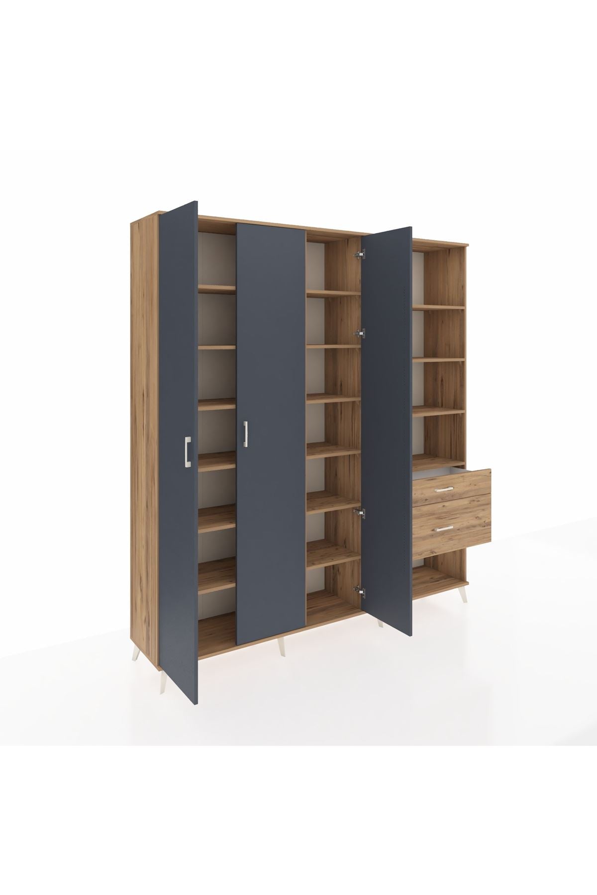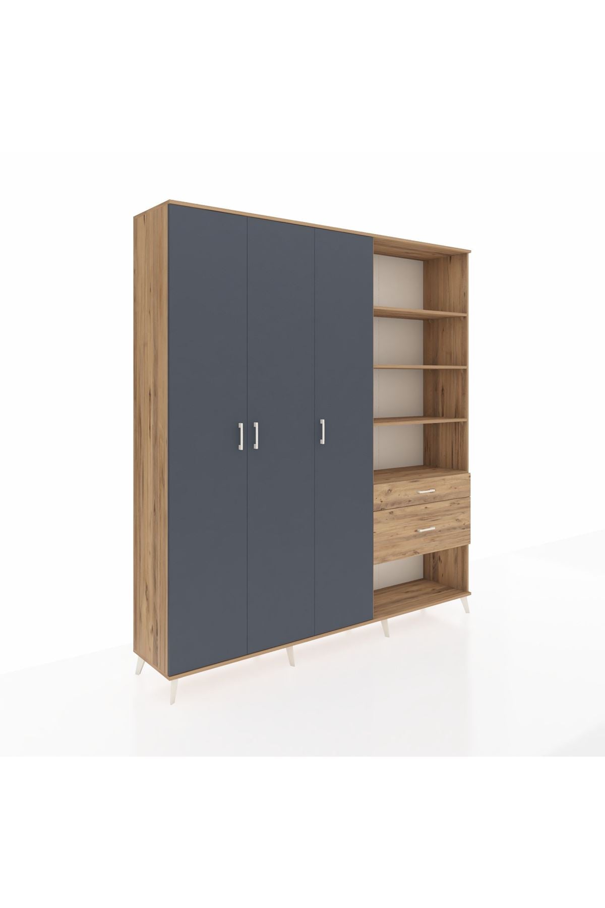 Hyperion Dolap 16 Raflı 2 Çekmeceli 3 Kapaklı 220x44x243 Çam-Antrasit/Çam