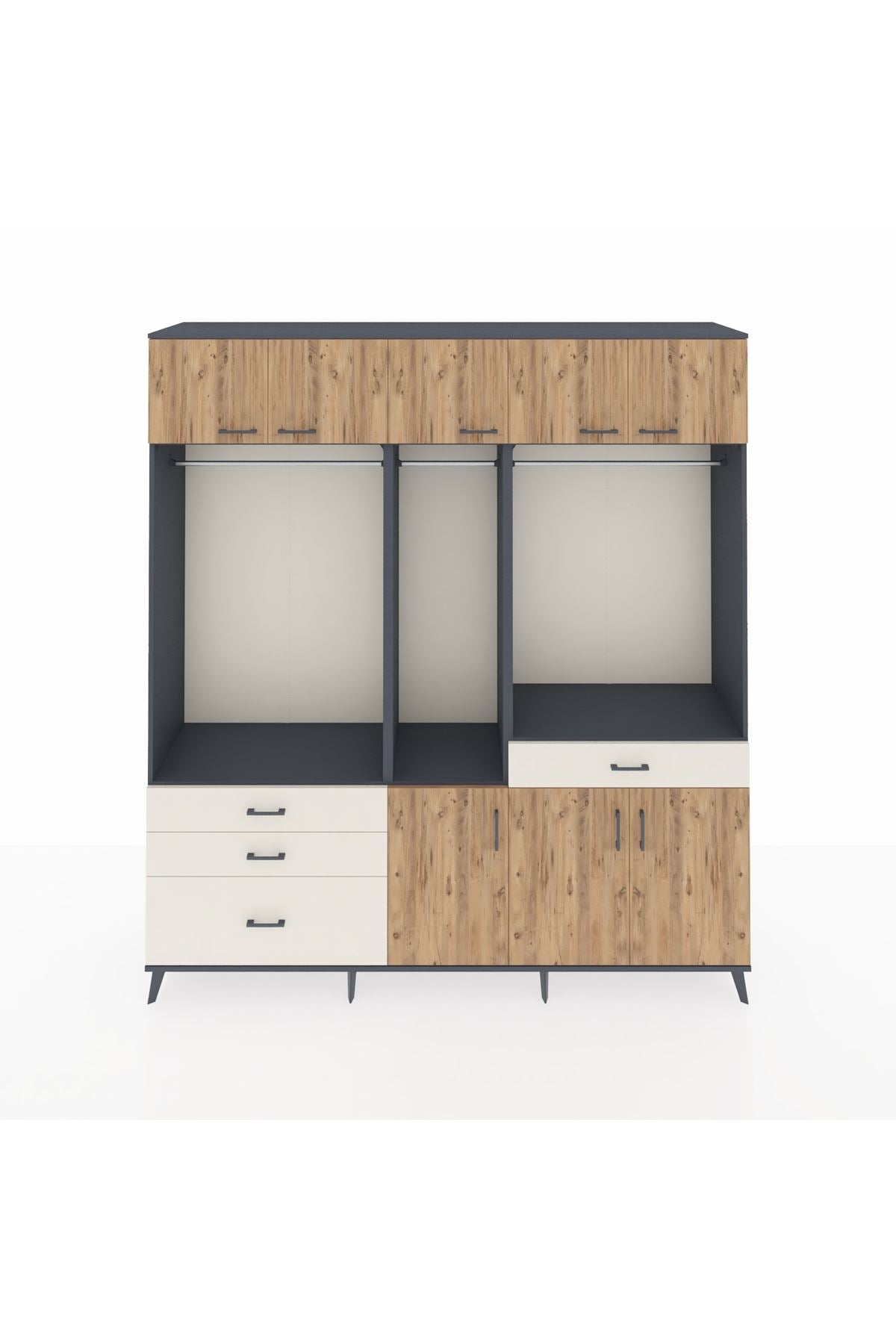 Hyperion Dolap 8 Raflı 4 Çekmeceli 3 Askılı 220x44x243 Antrasit-Çam/Aytaşı