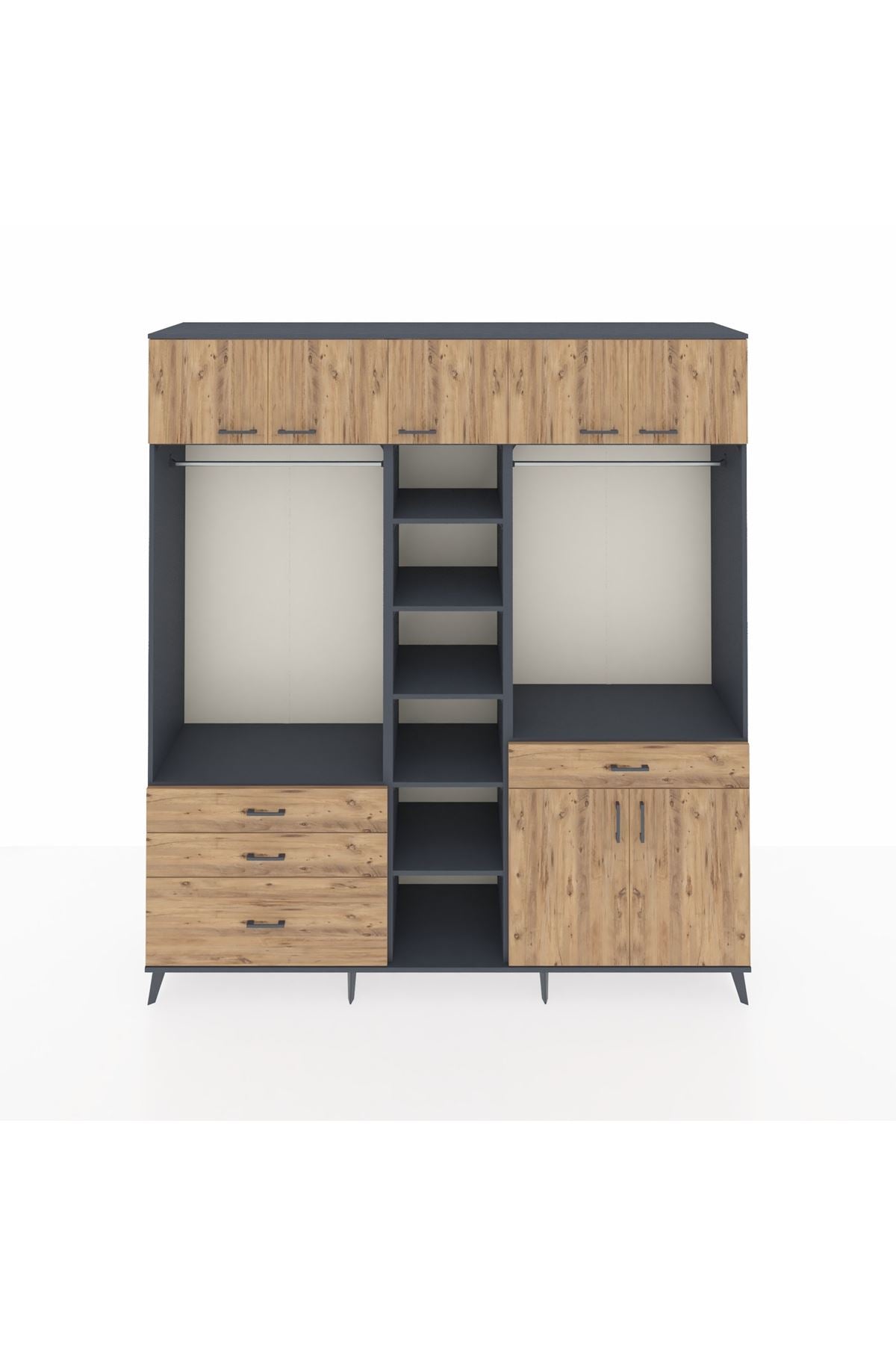 Hyperion Gardrop 11 Raflı 4 Çekmeceli 2 Askılı 220x44x243 Antrasit-Çam/Çam