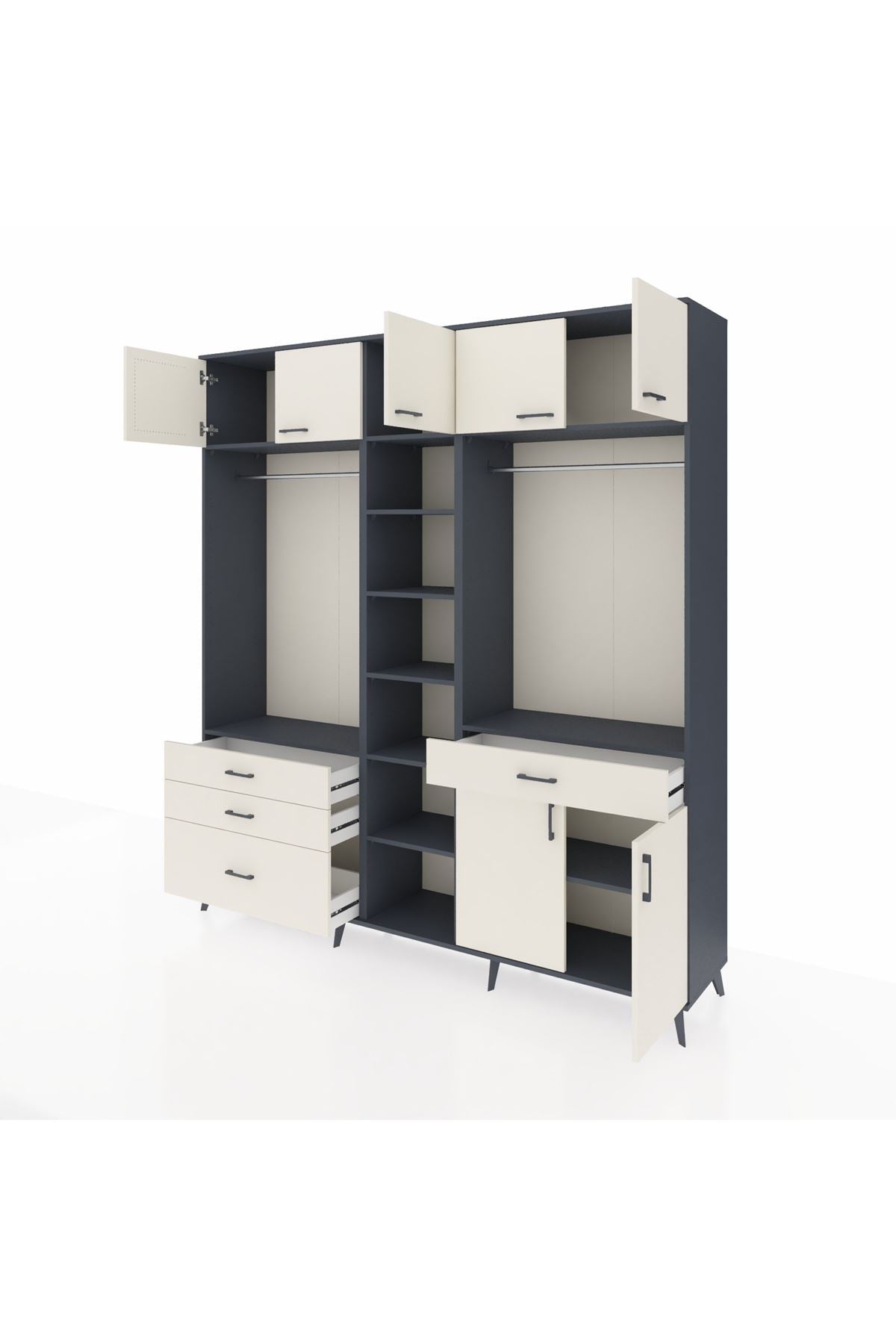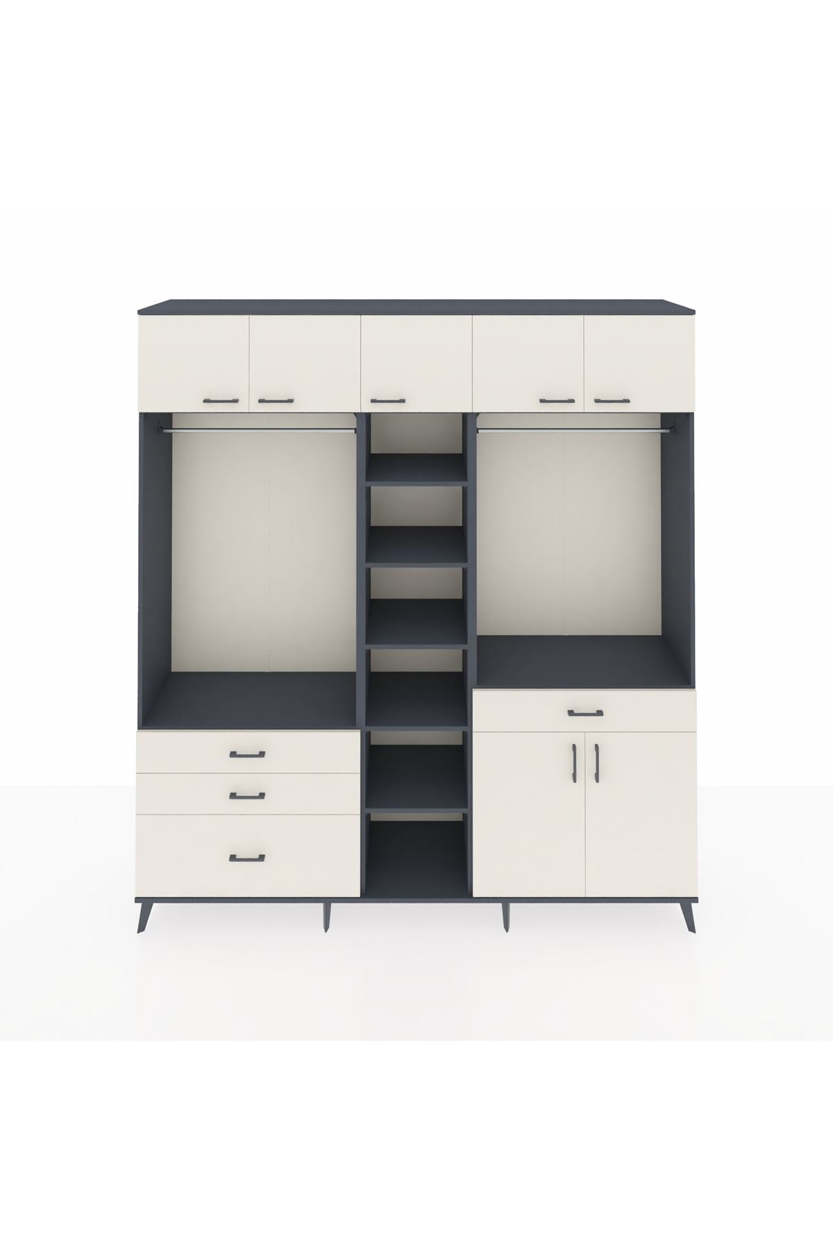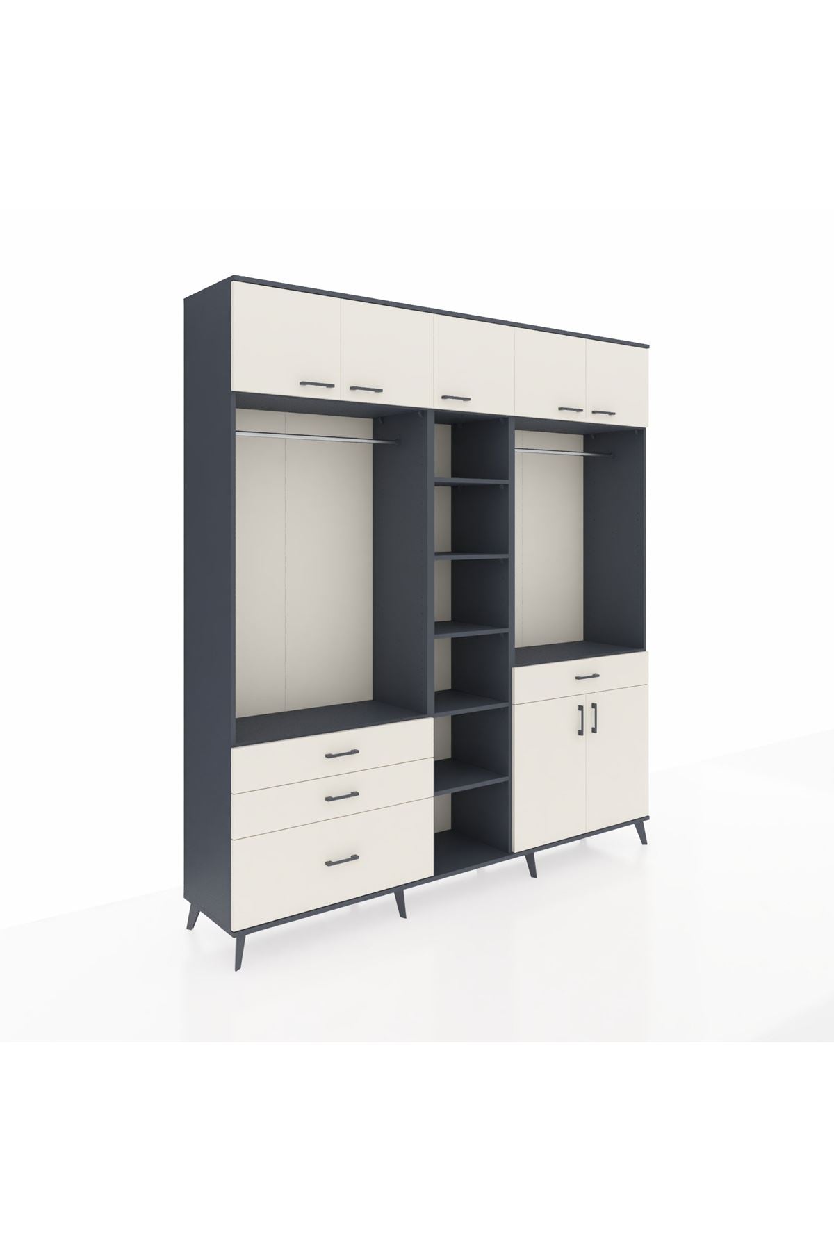Hyperion Gardrop 11 Raflı 4 Çekmeceli 2 Askılı 220x44x243 Antrasit-Aytaşı/Aytaşı