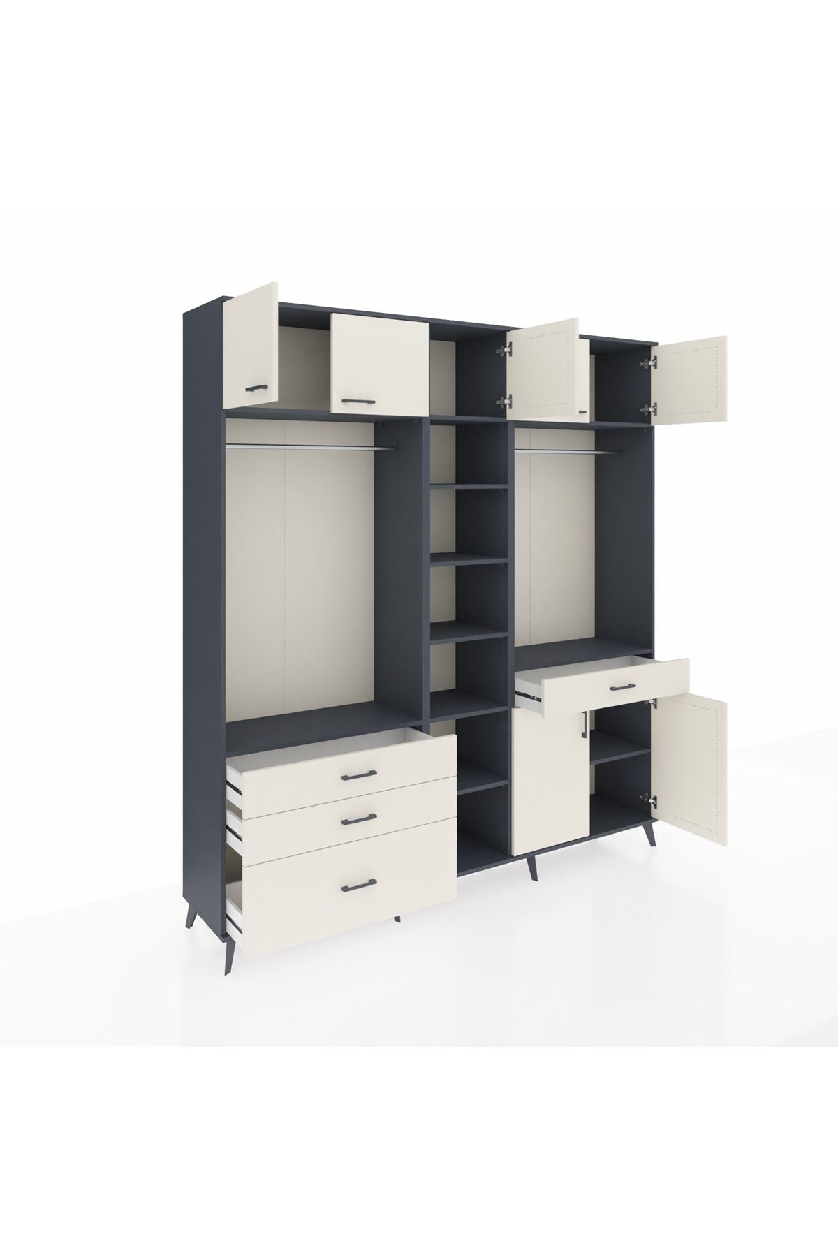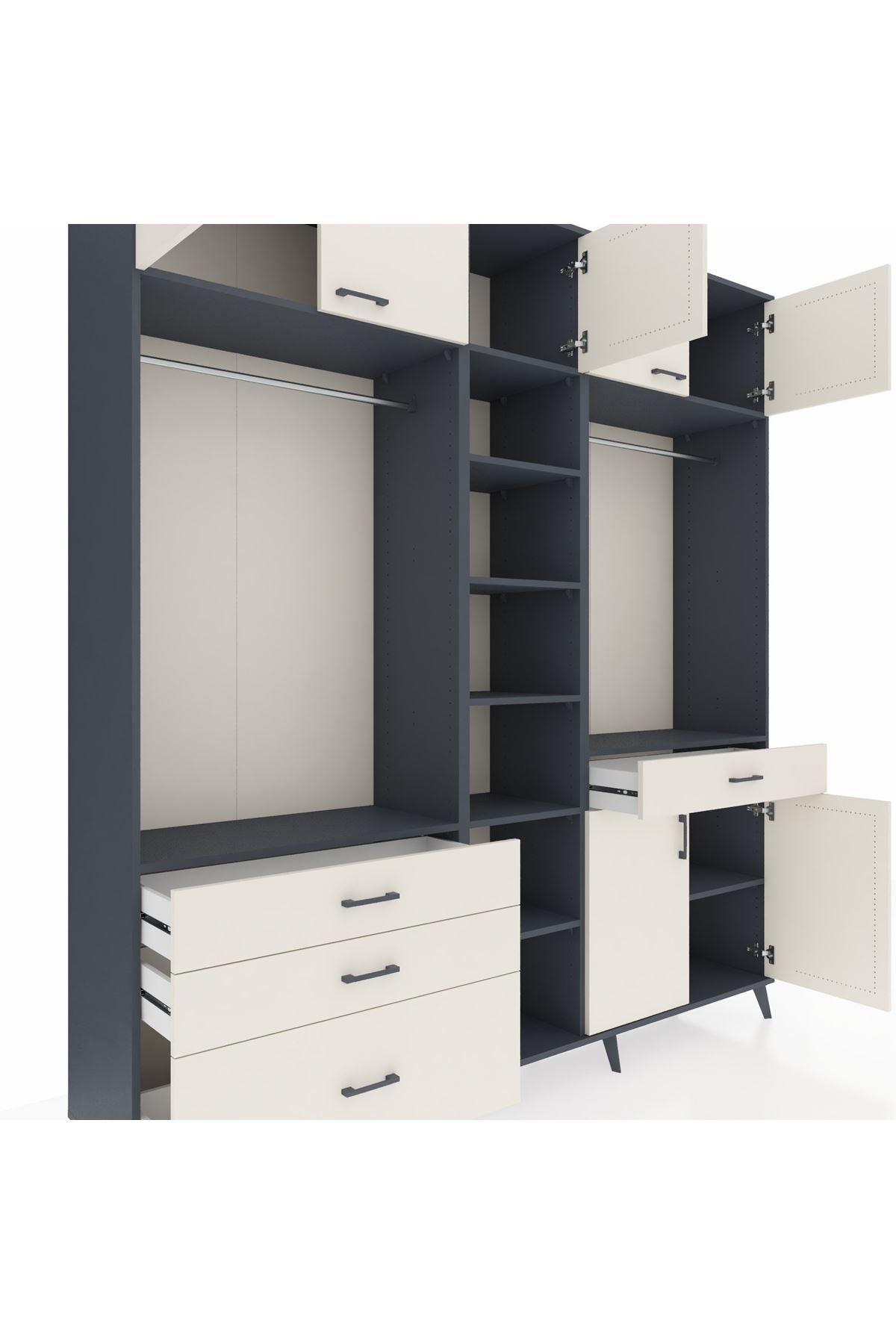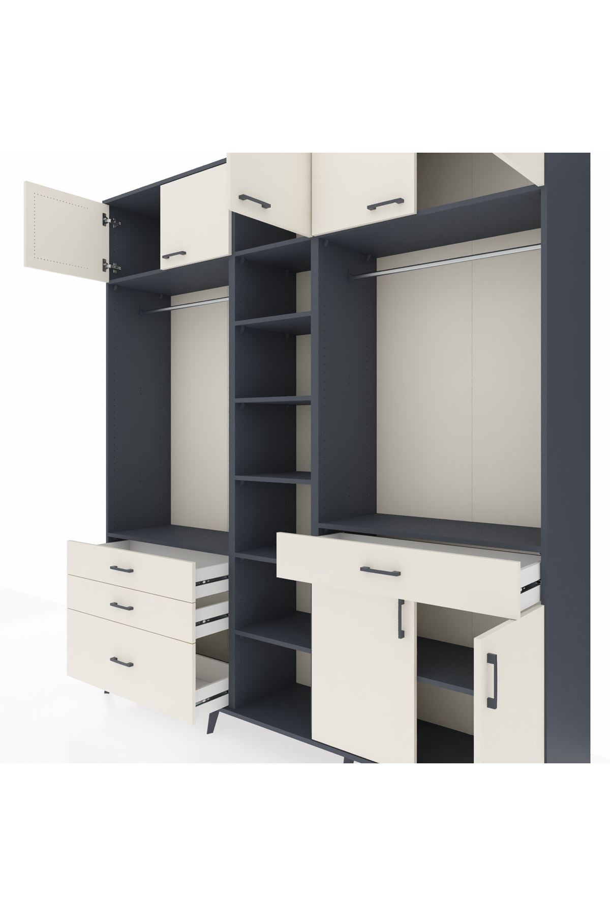 Hyperion Gardrop 11 Raflı 4 Çekmeceli 2 Askılı 220x44x243 Antrasit-Aytaşı/Aytaşı