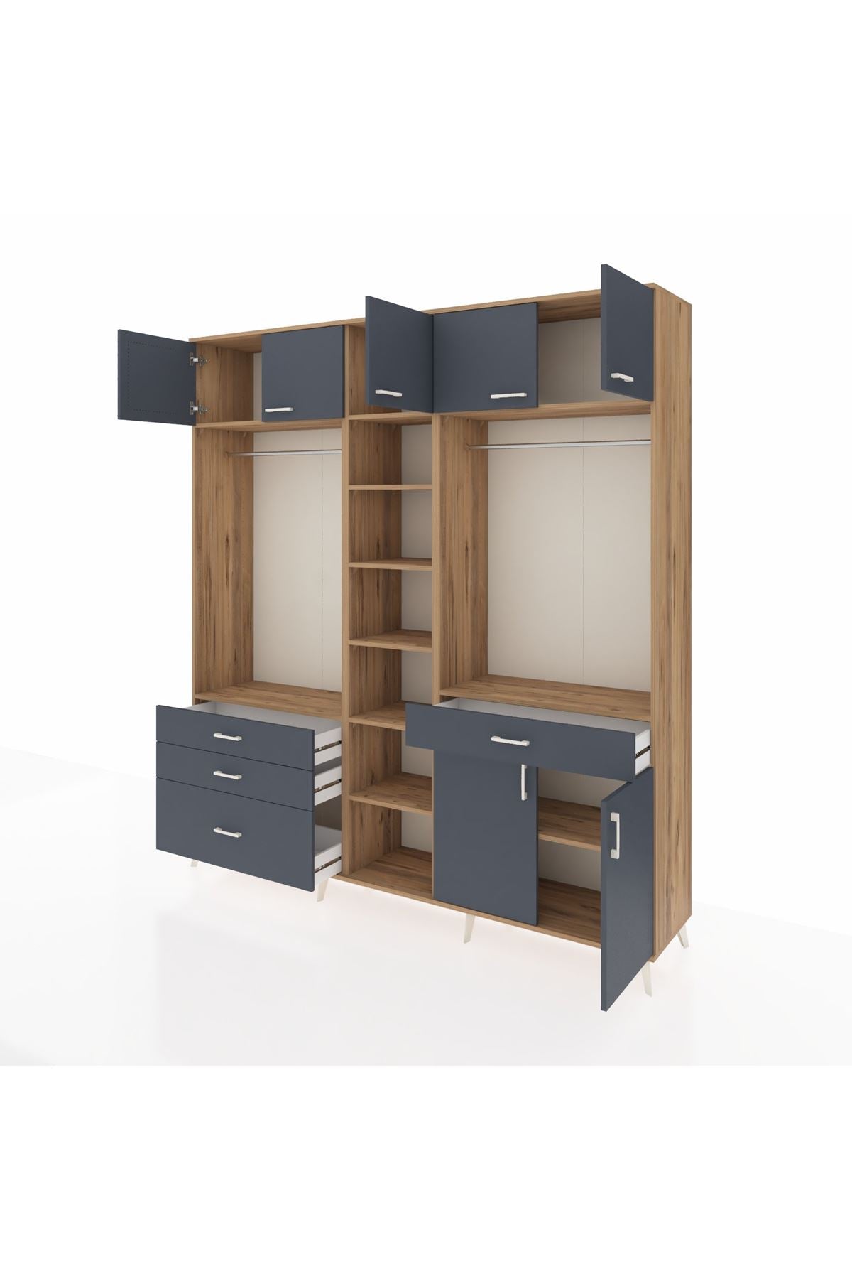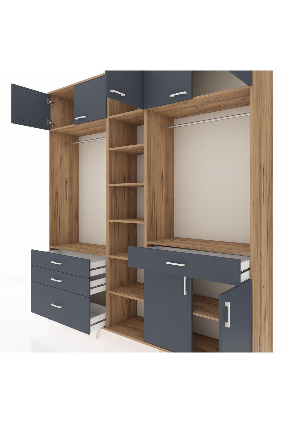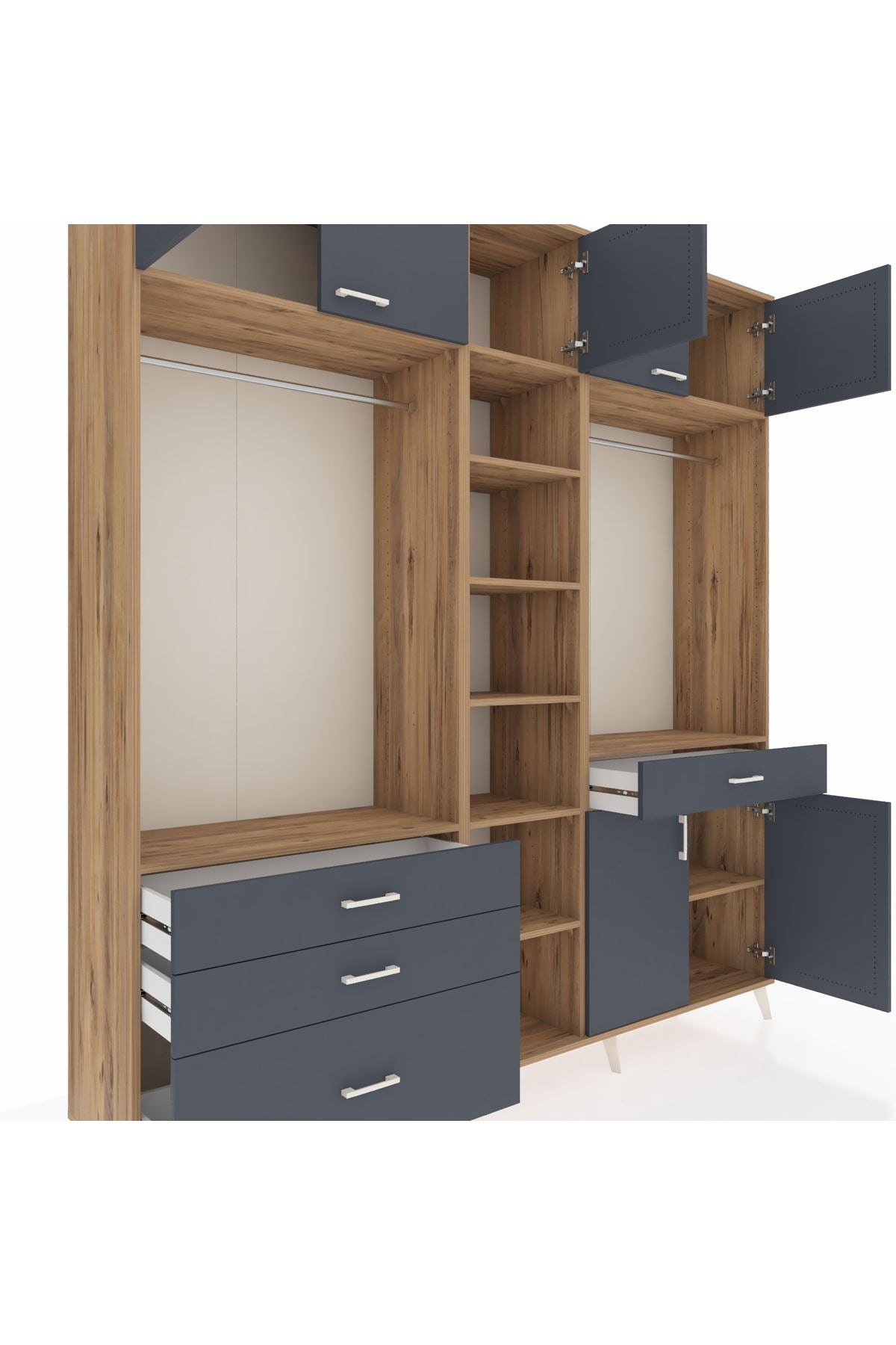 Hyperion Gardrop 11 Raflı 4 Çekmeceli 2 Askılı 220x44x243 Çam-Antrasit/Antrasit