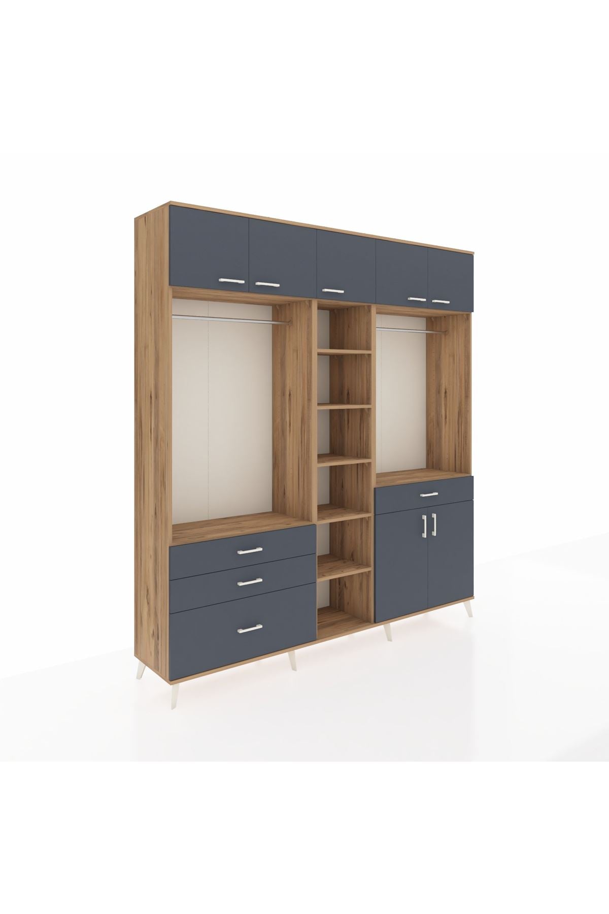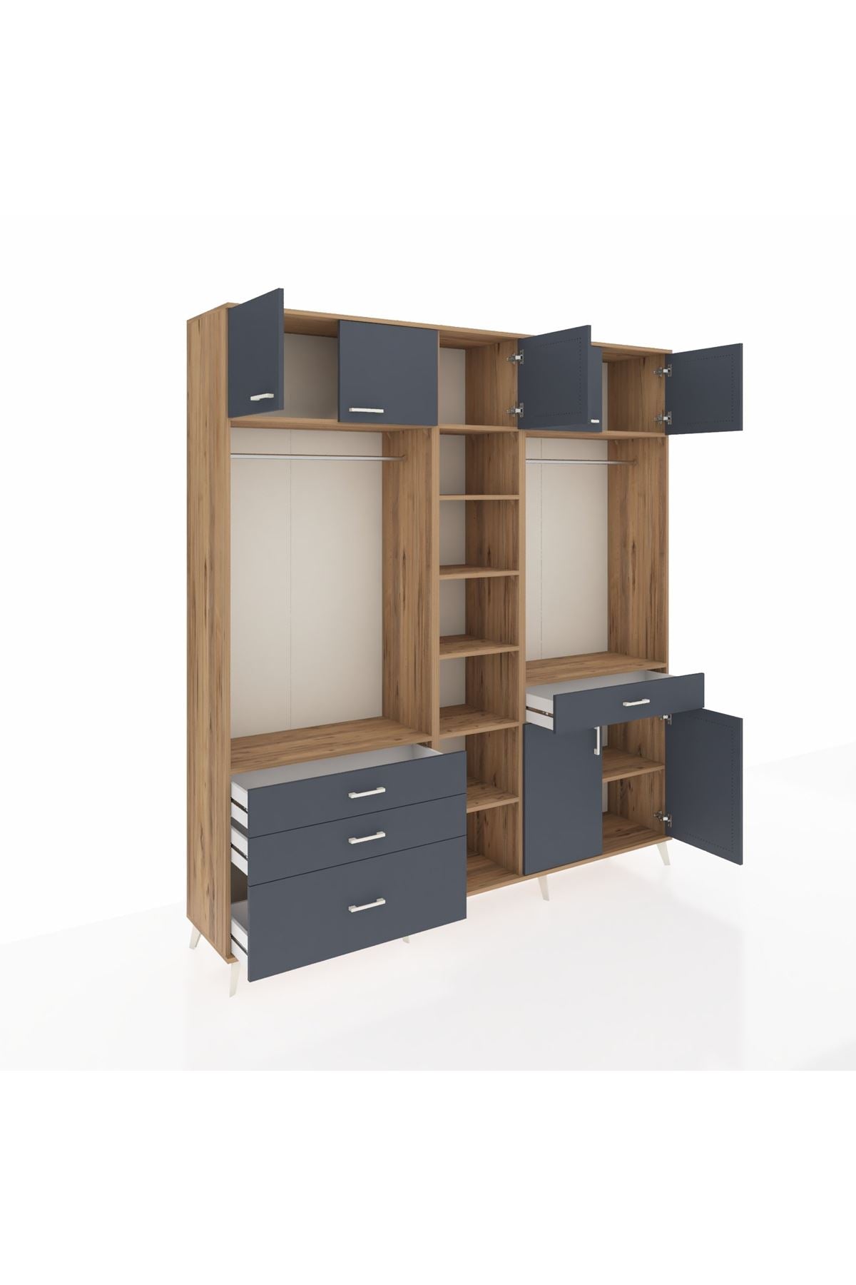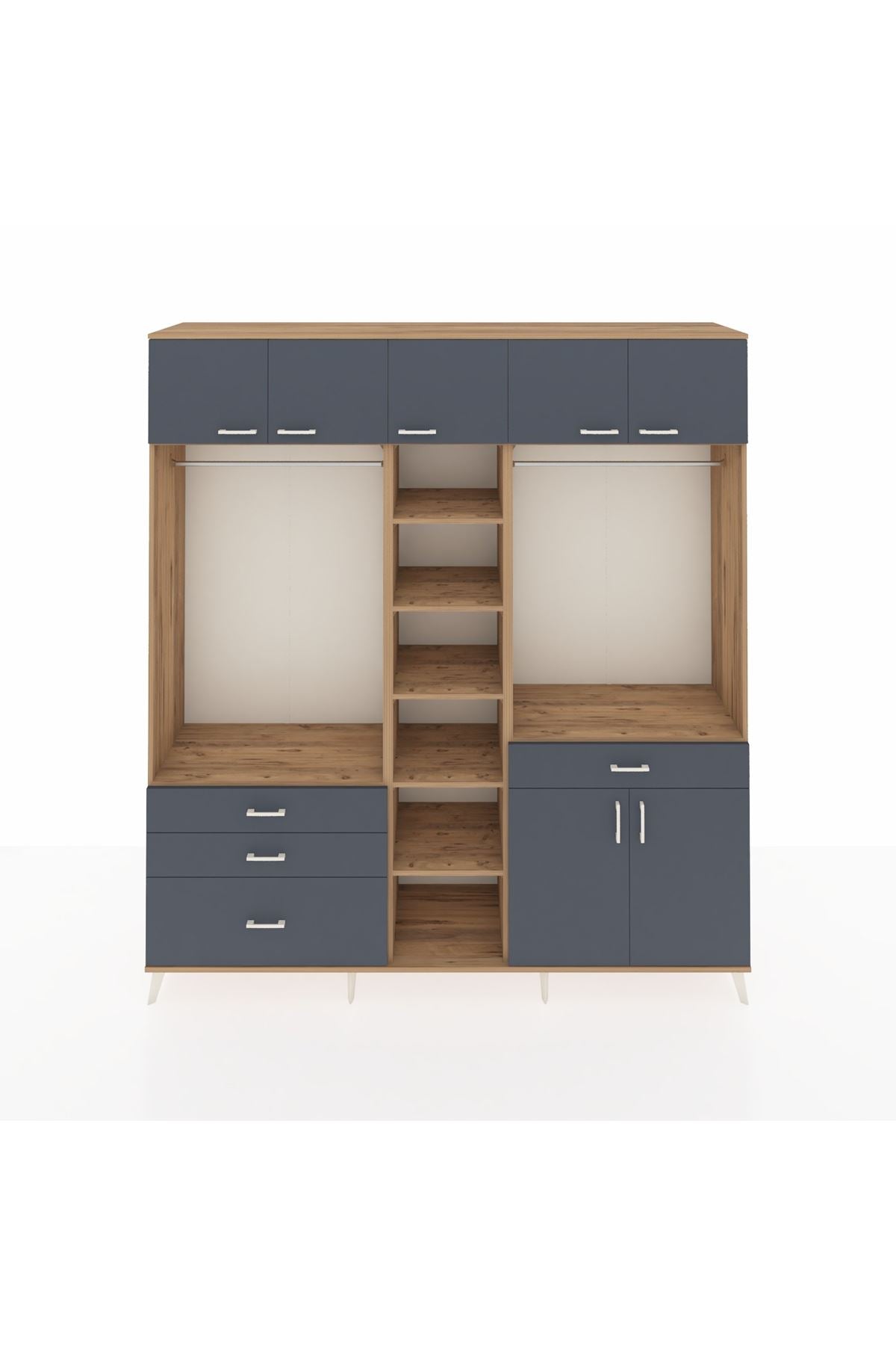 Hyperion Gardrop 11 Raflı 4 Çekmeceli 2 Askılı 220x44x243 Çam-Antrasit/Antrasit