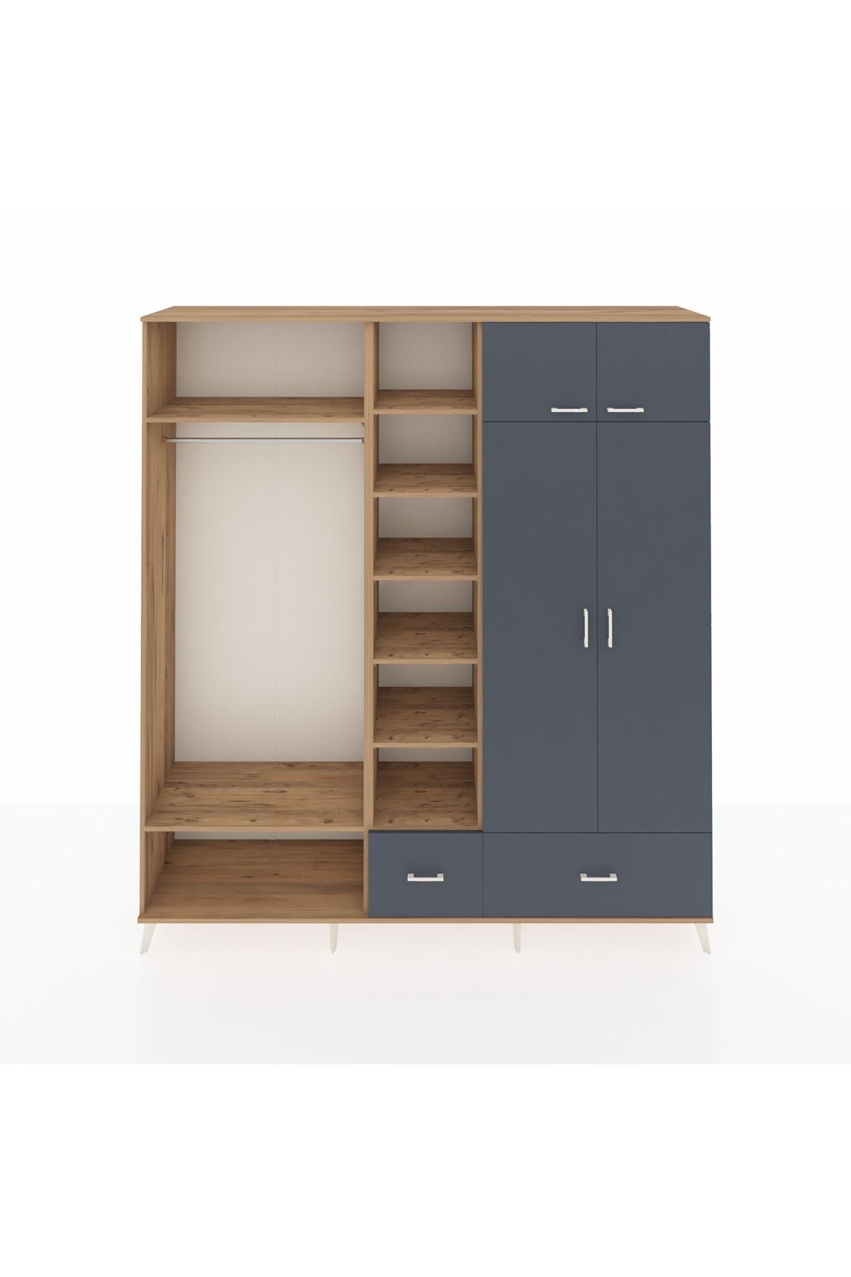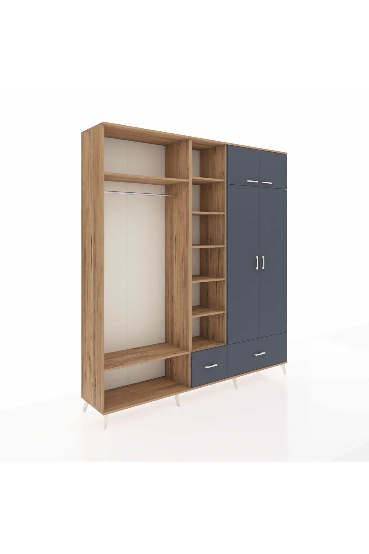 Hyperion Gardrop 12 Raflı 2 Çekmeceli 2 Askılı 220x44x243 Çam-Antrasit/Antrasit