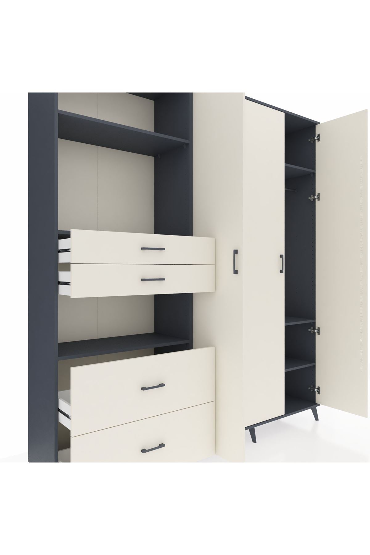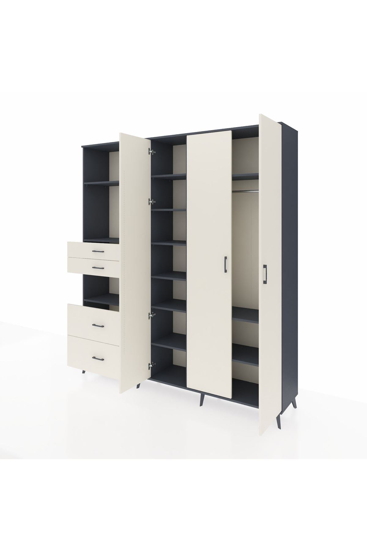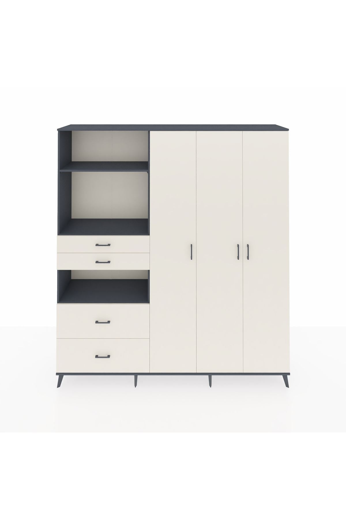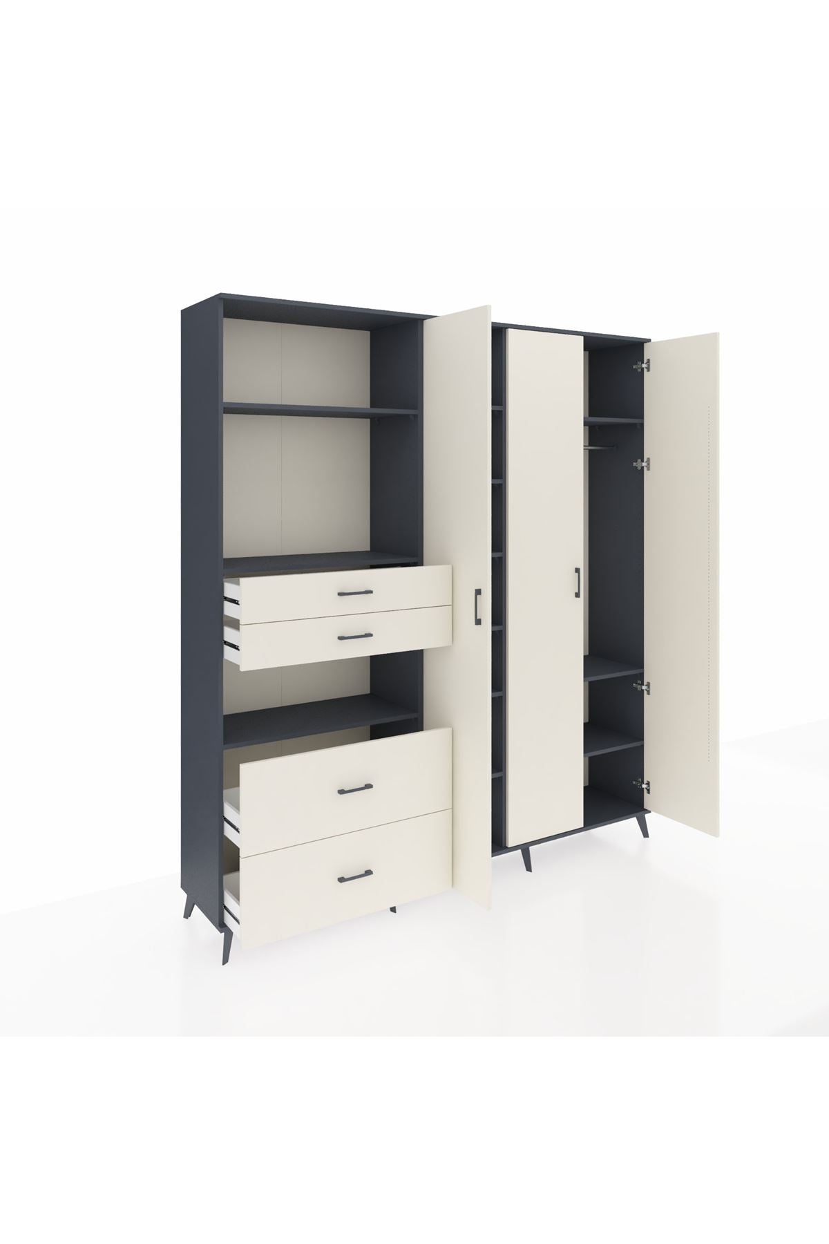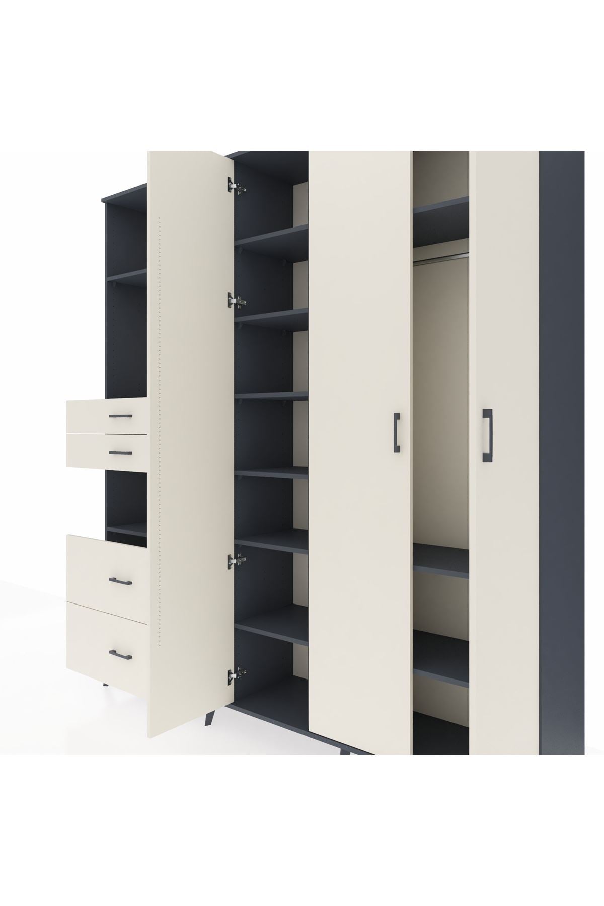 Hyperion Gardrop 12 Raflı 4 Çekmeceli Tek Askılı 220x44x243 Antrasit-Aytaşı/Aytaşı