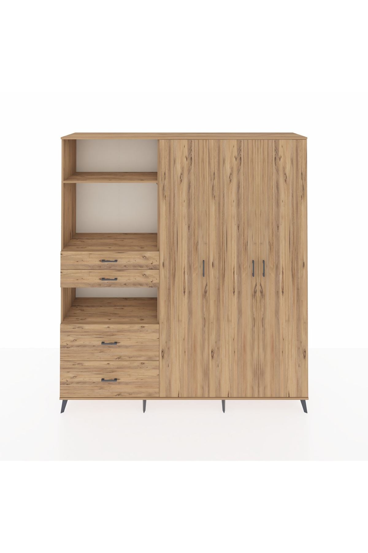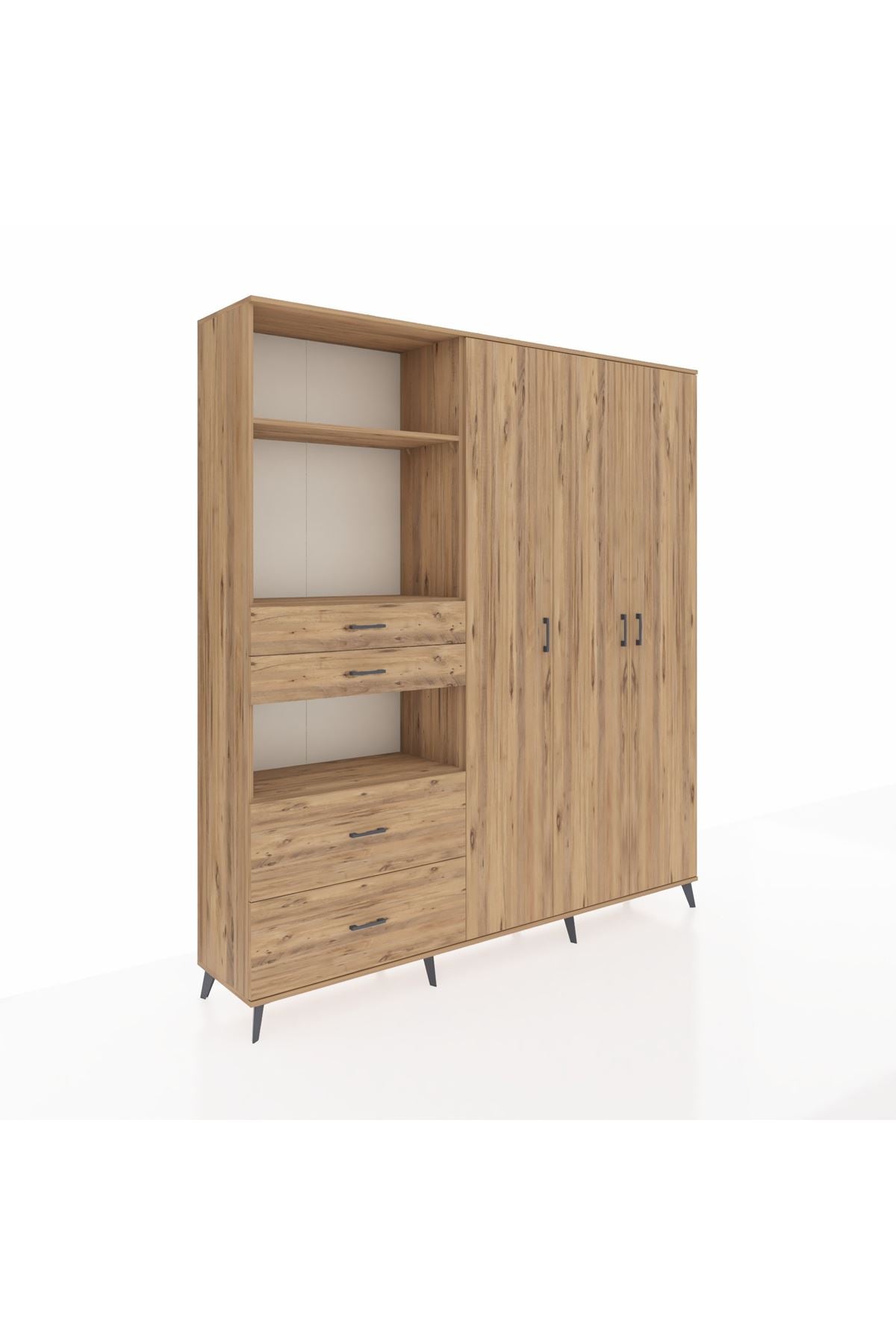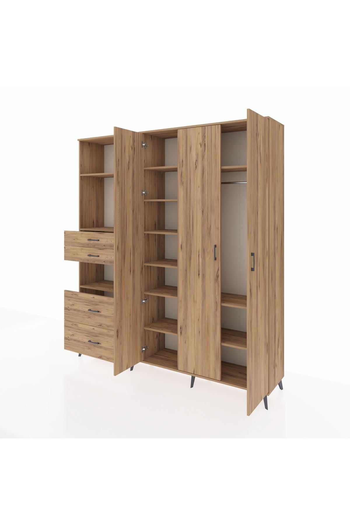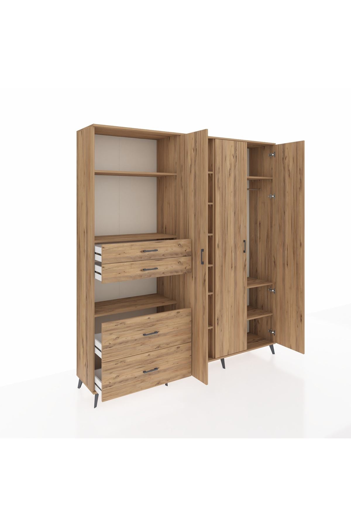 Hyperion Gardrop 12 Raflı 4 Çekmeceli Tek Askılı 220x44x243 Çam-Çam/Çam