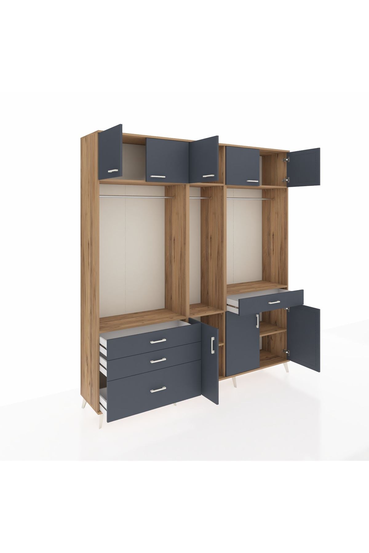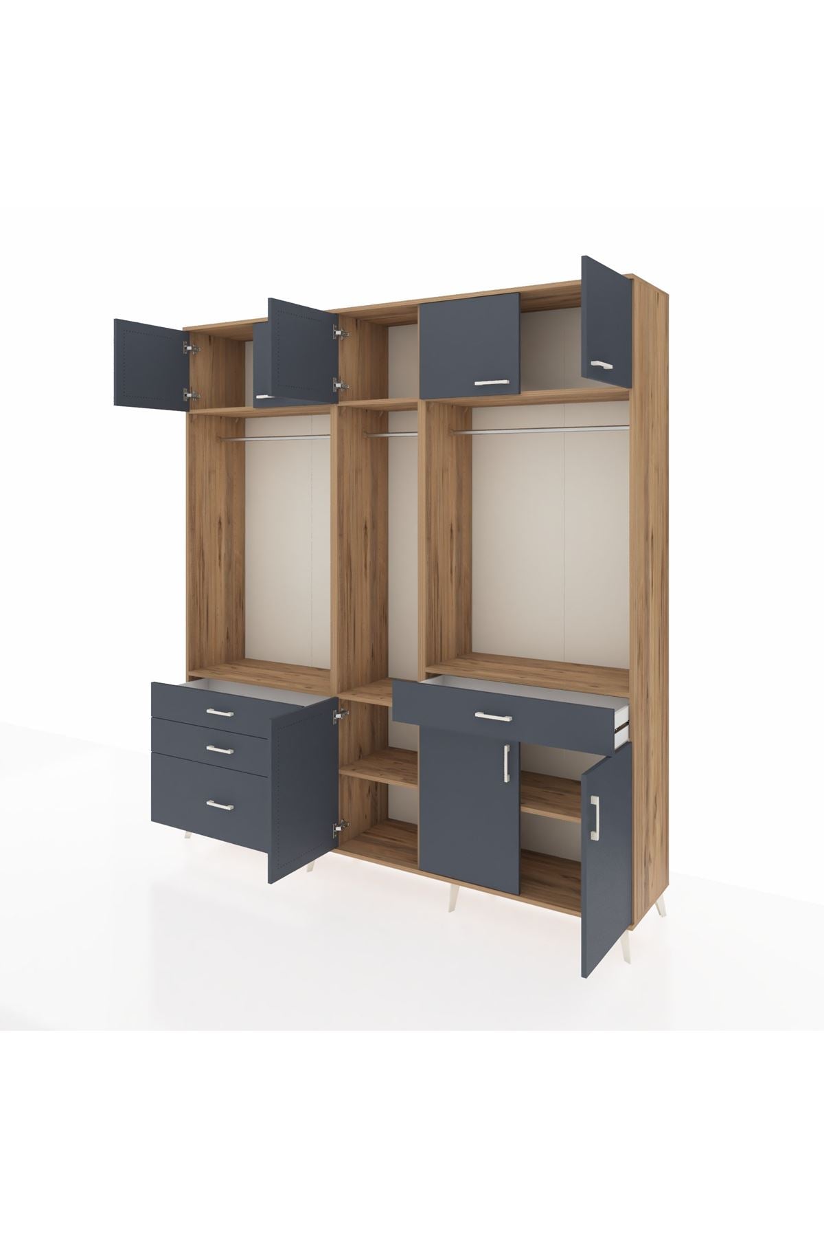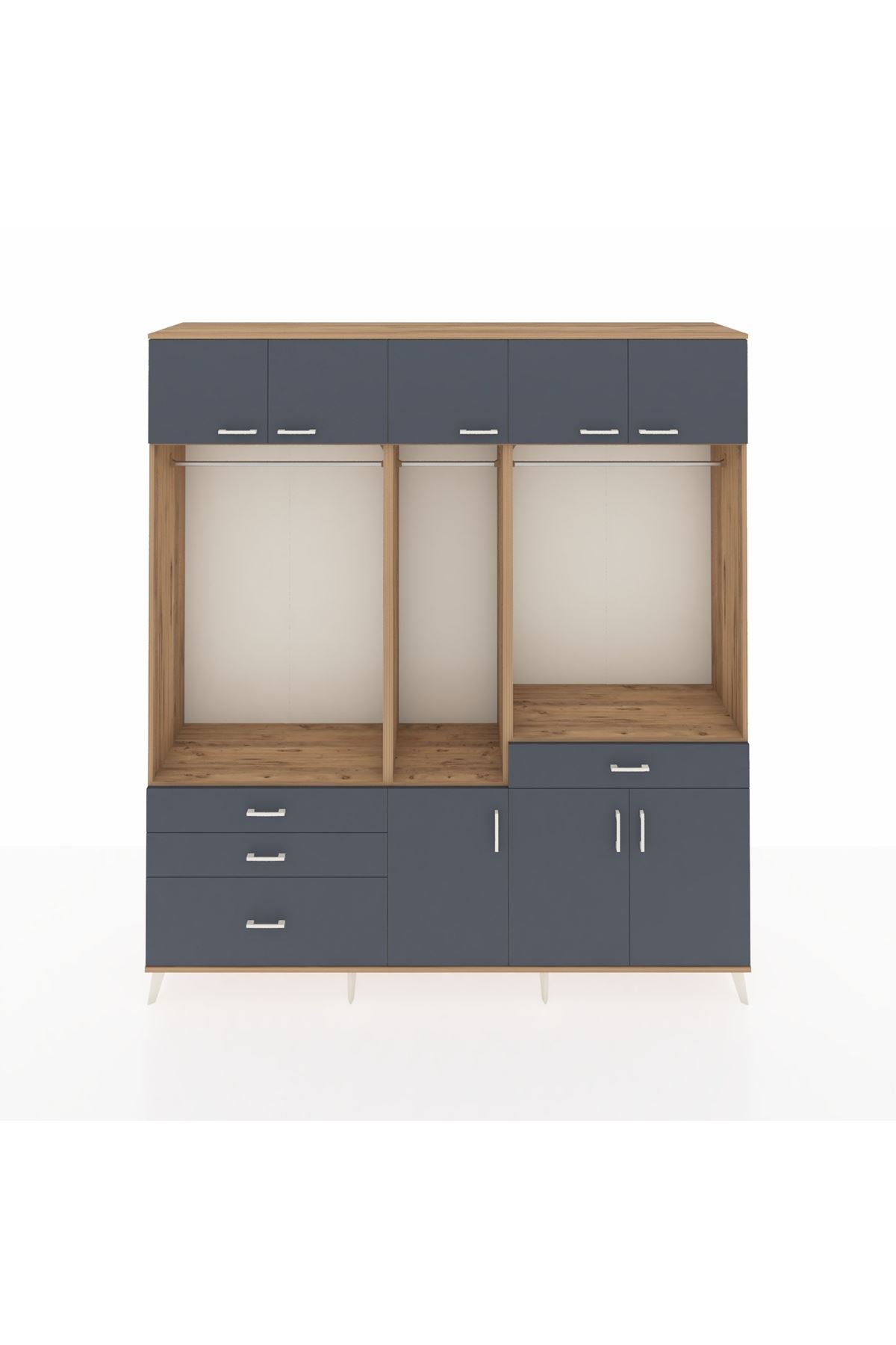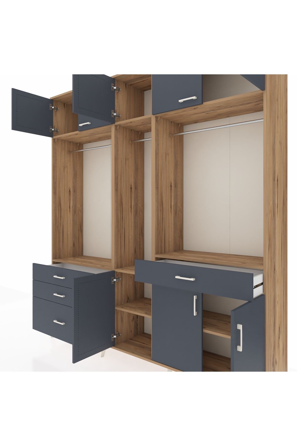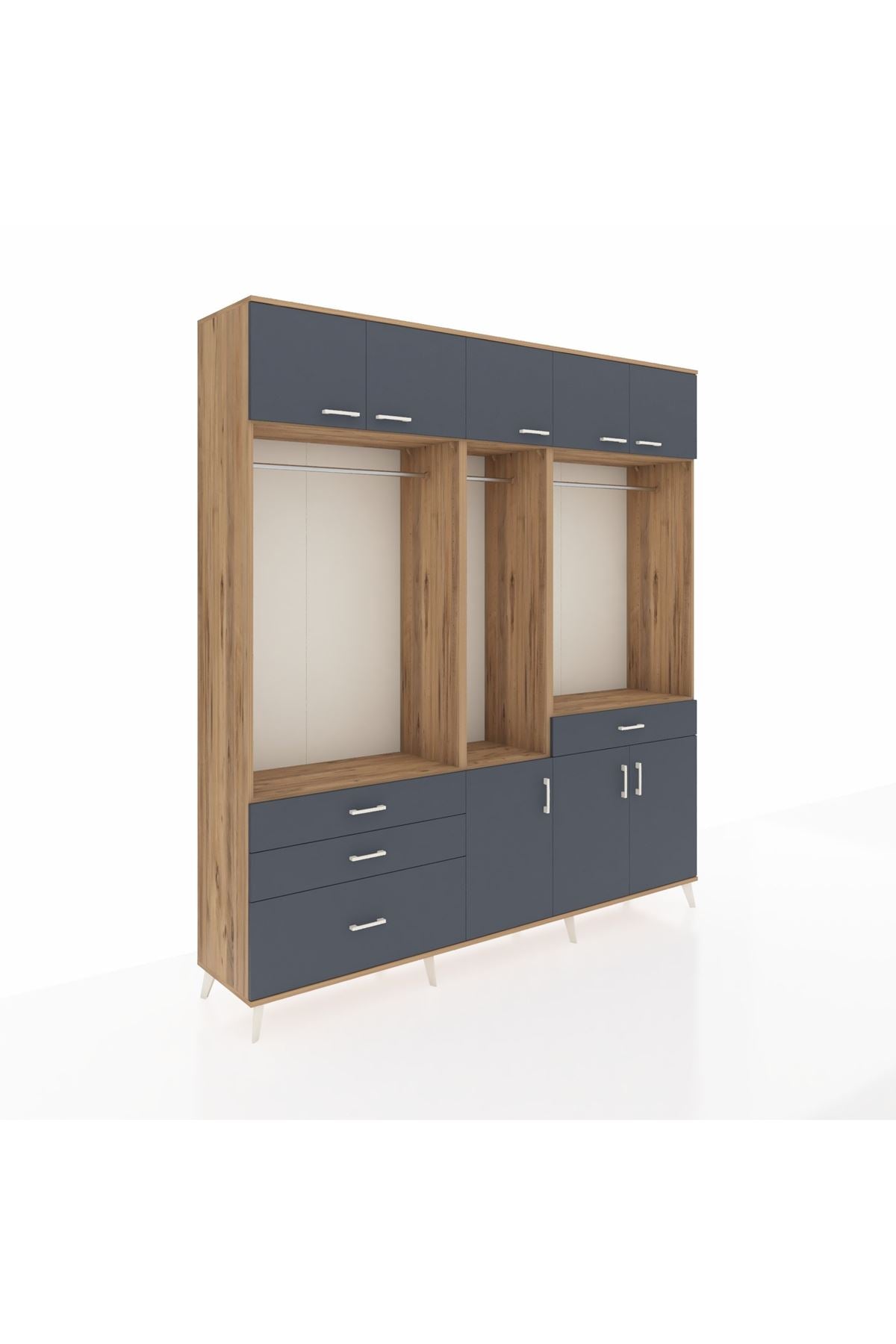 Hyperion Gardrop 8 Raflı 4 Çekmeceli 3 Askılı 220x44x243 Çam-Antrasit/Antrasit