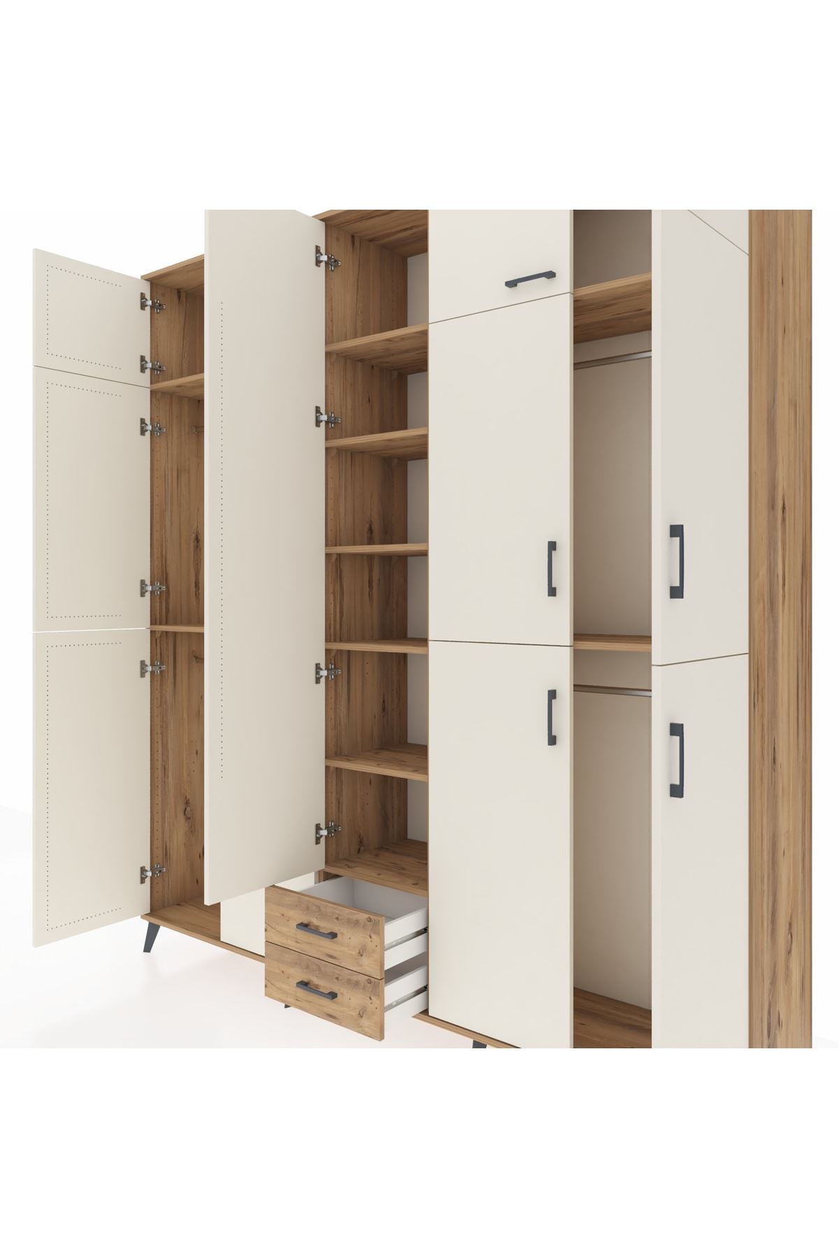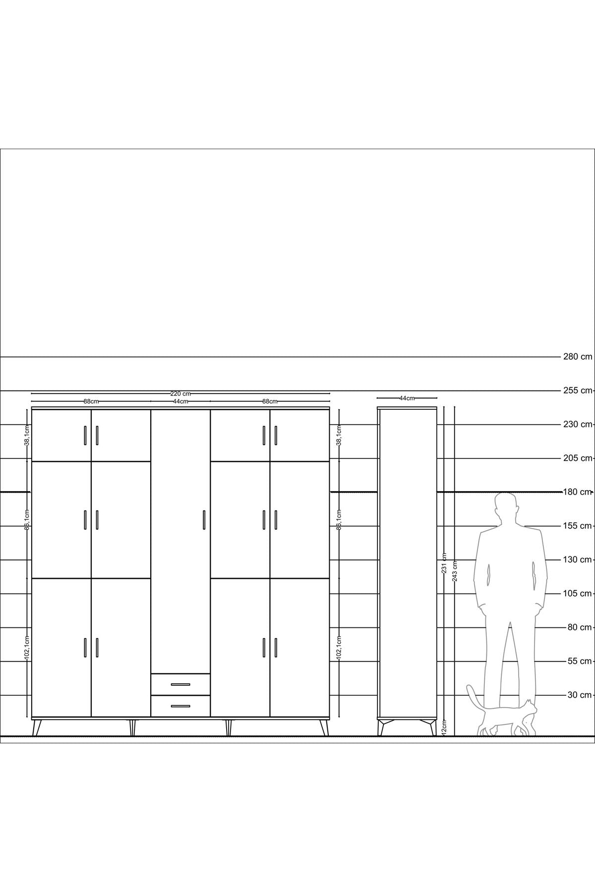 📌 Hyperion Dolap 10 Raflı 2 Çekmeceli 4 Askılı 220x44x243